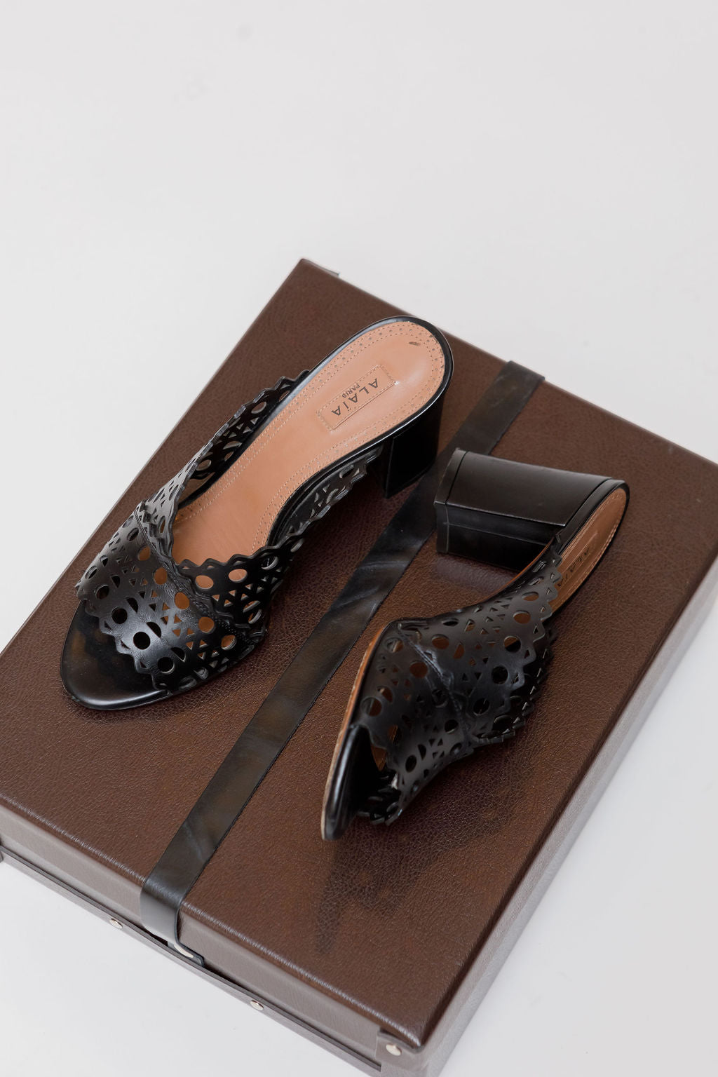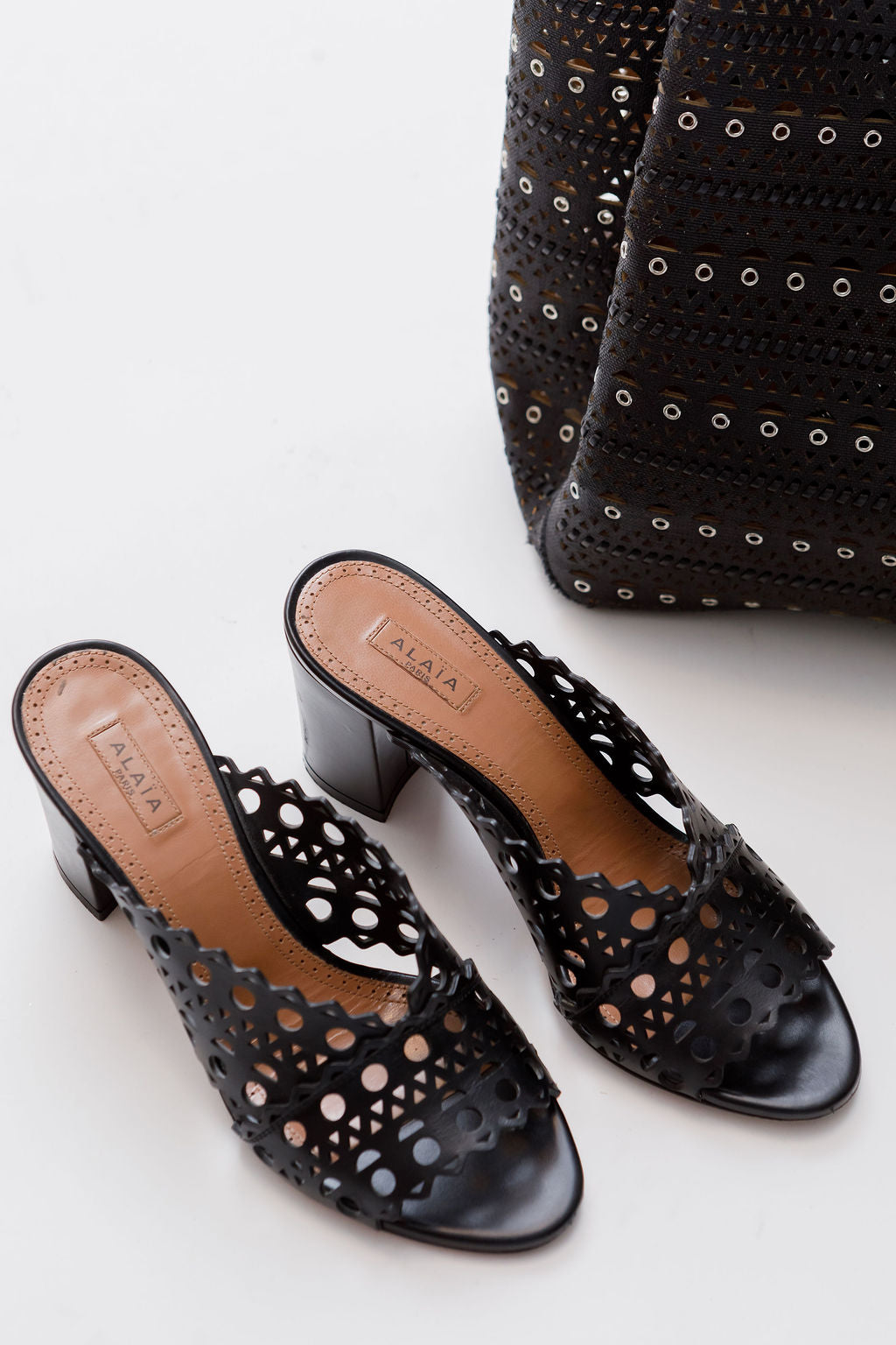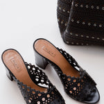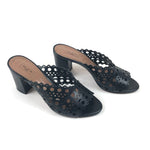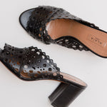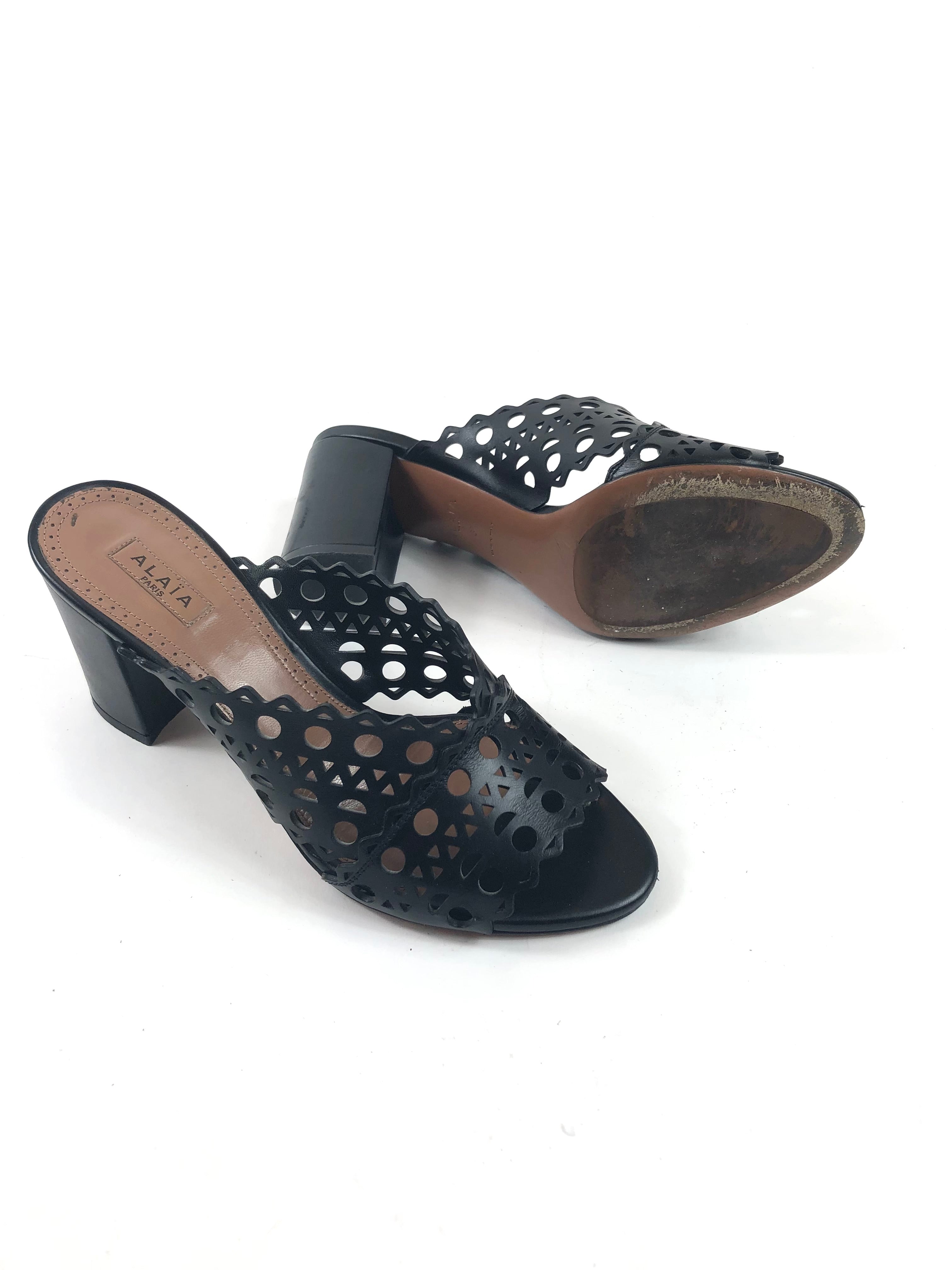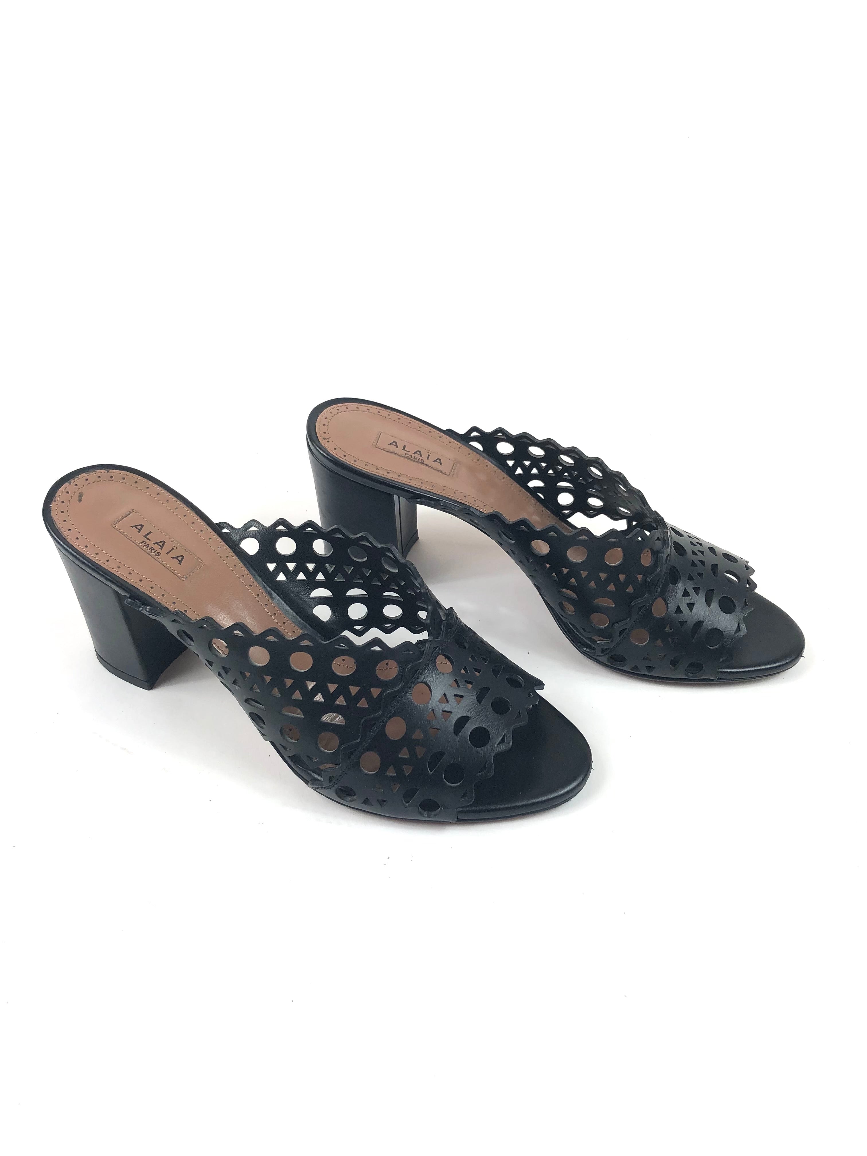 Black Laser-cut Leather Mules / ALAIA - Size 37
