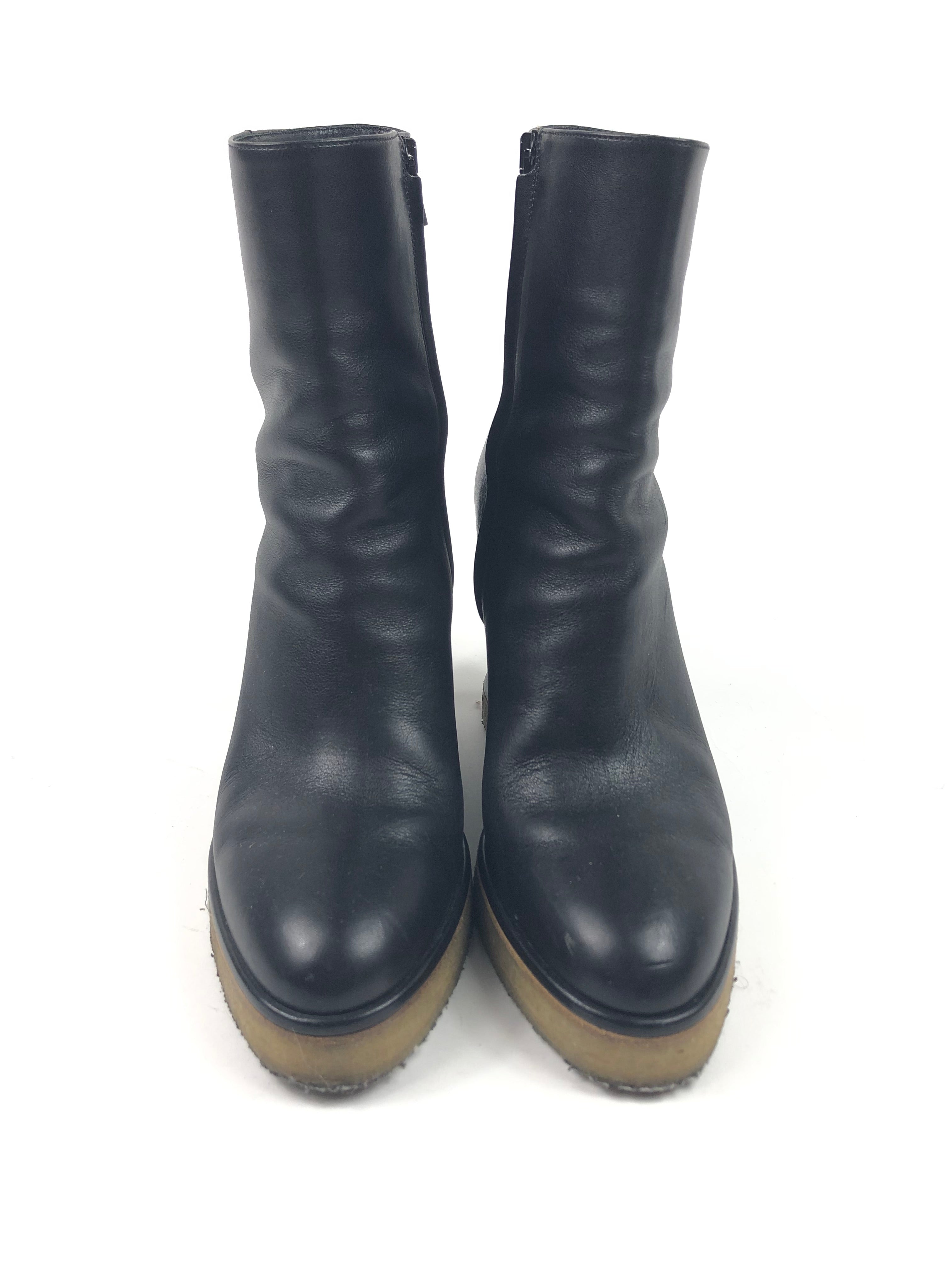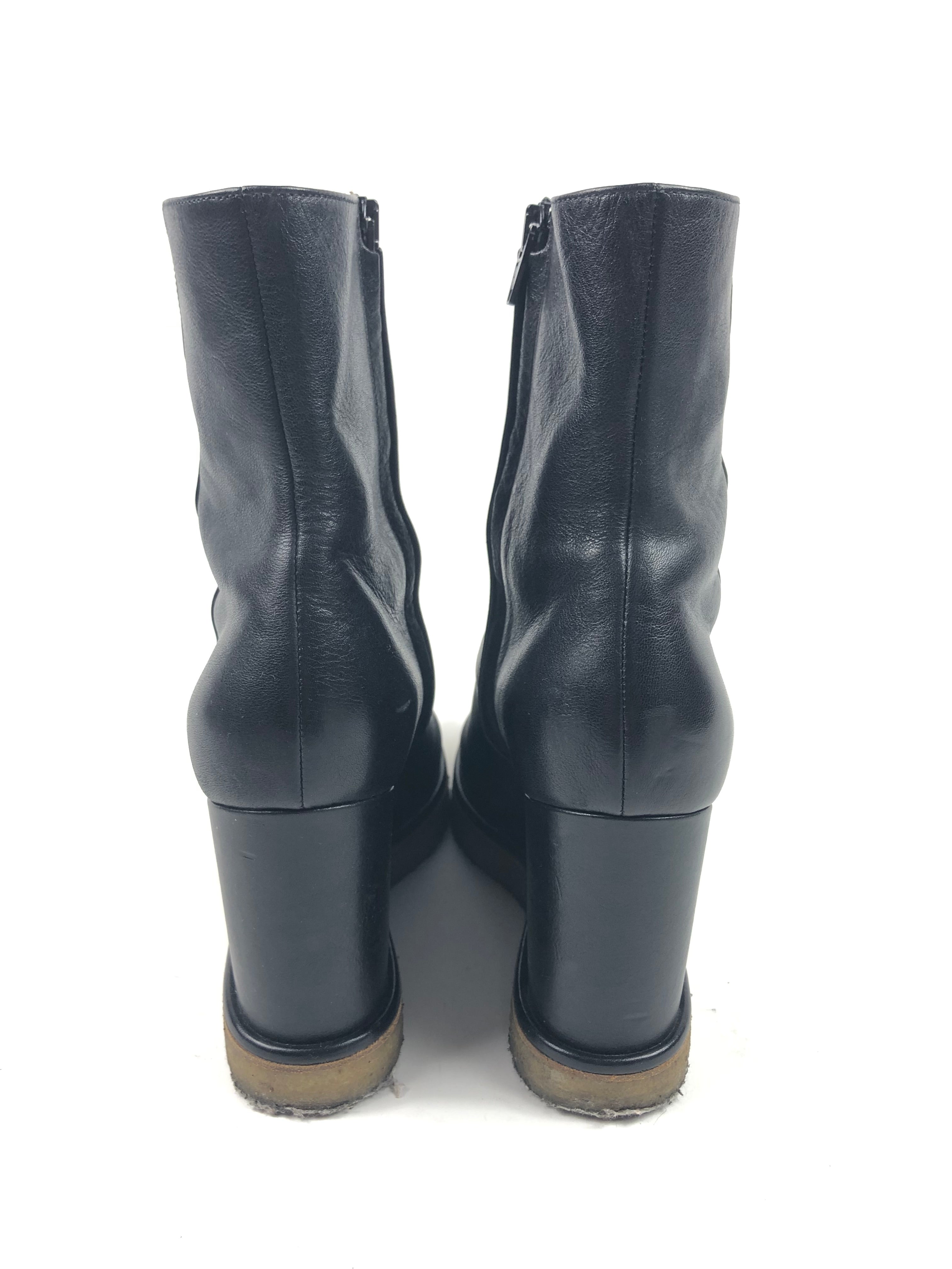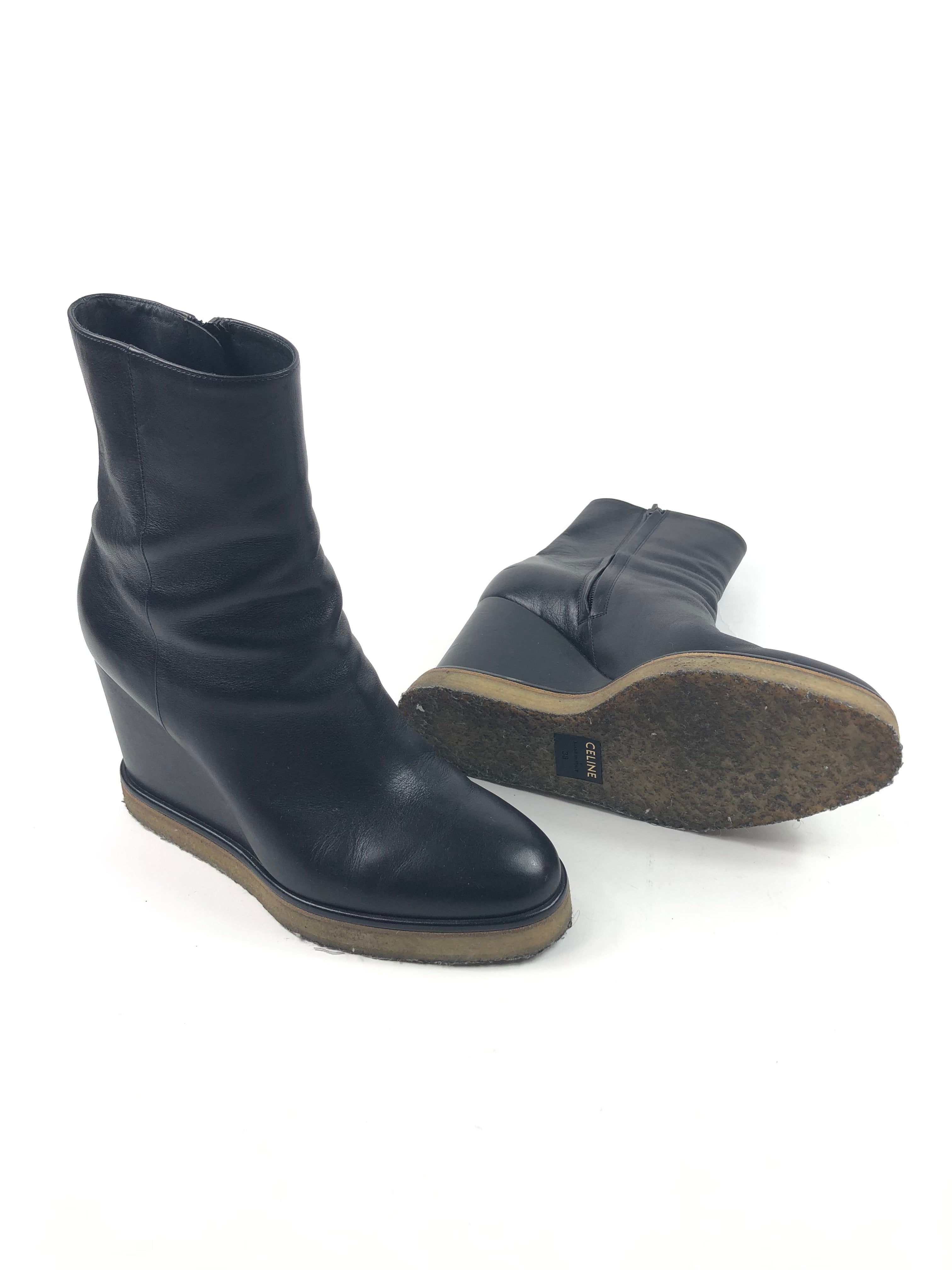 Black MANON Leather Wedges Boots / CELINE - Size 38