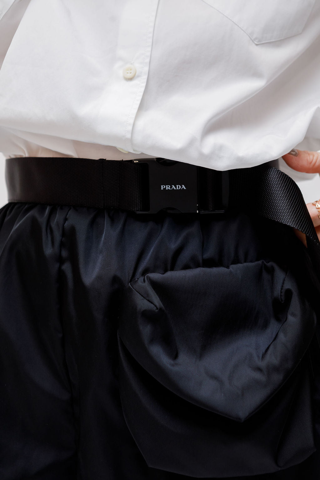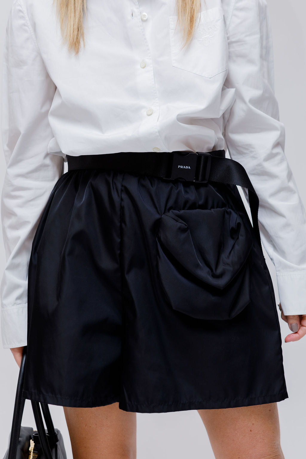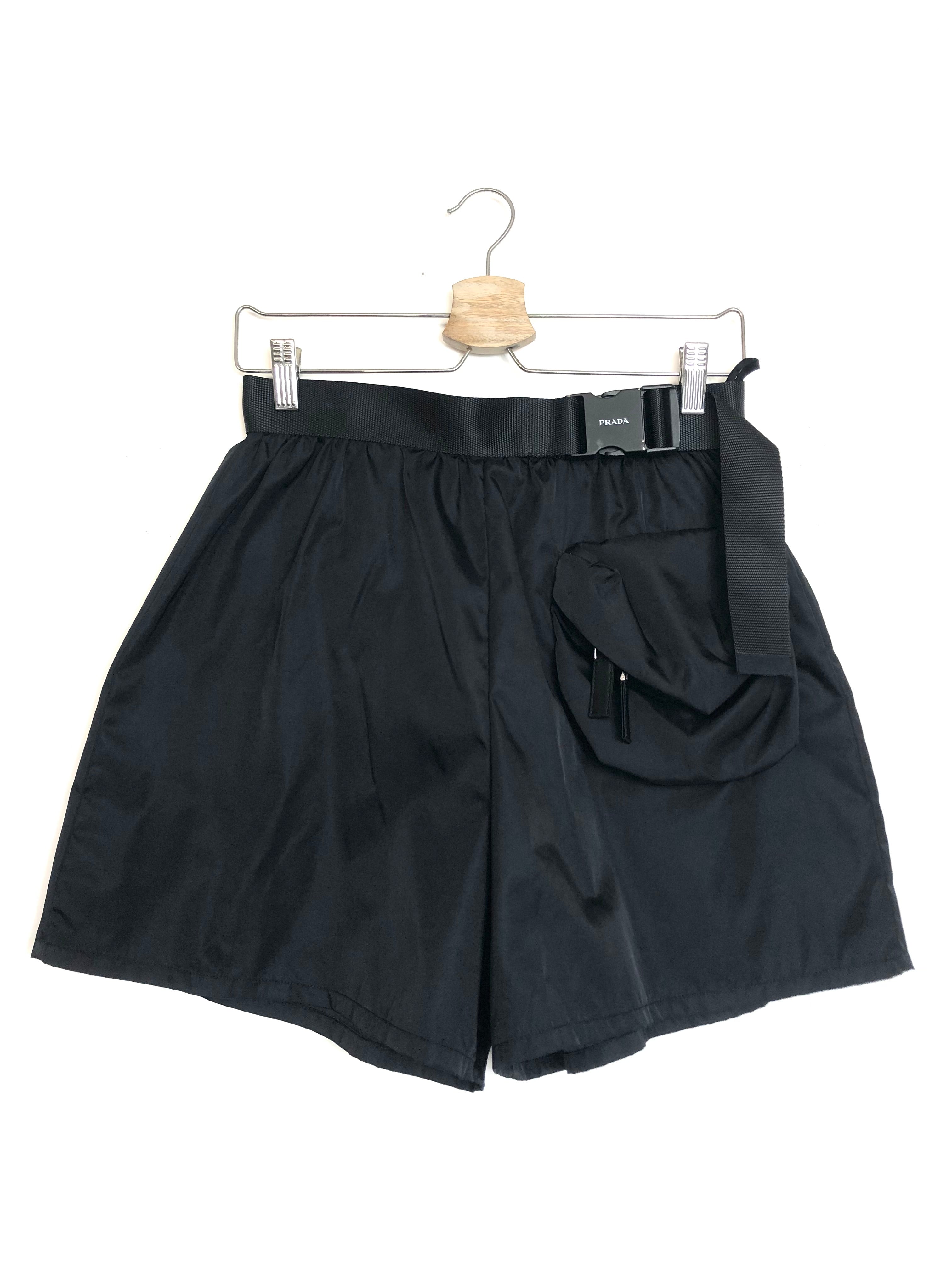 Black Re-Nylon Gabardine Shorts with Belt and Bag-like Pocket / PRADA - Size 36