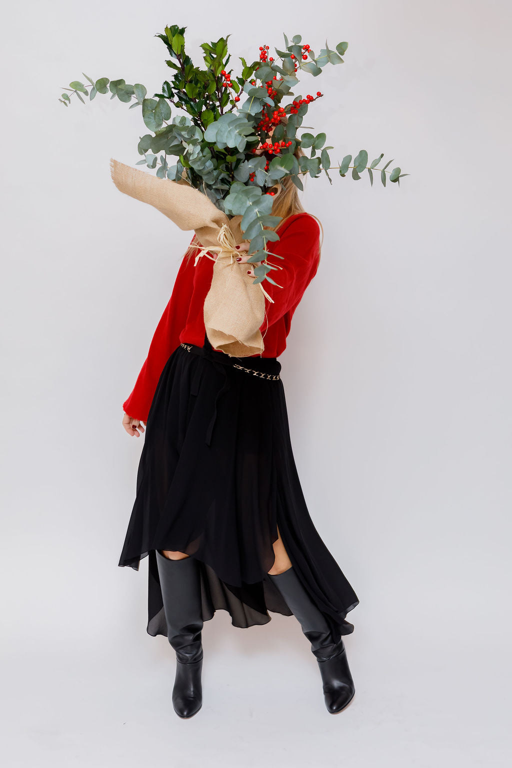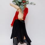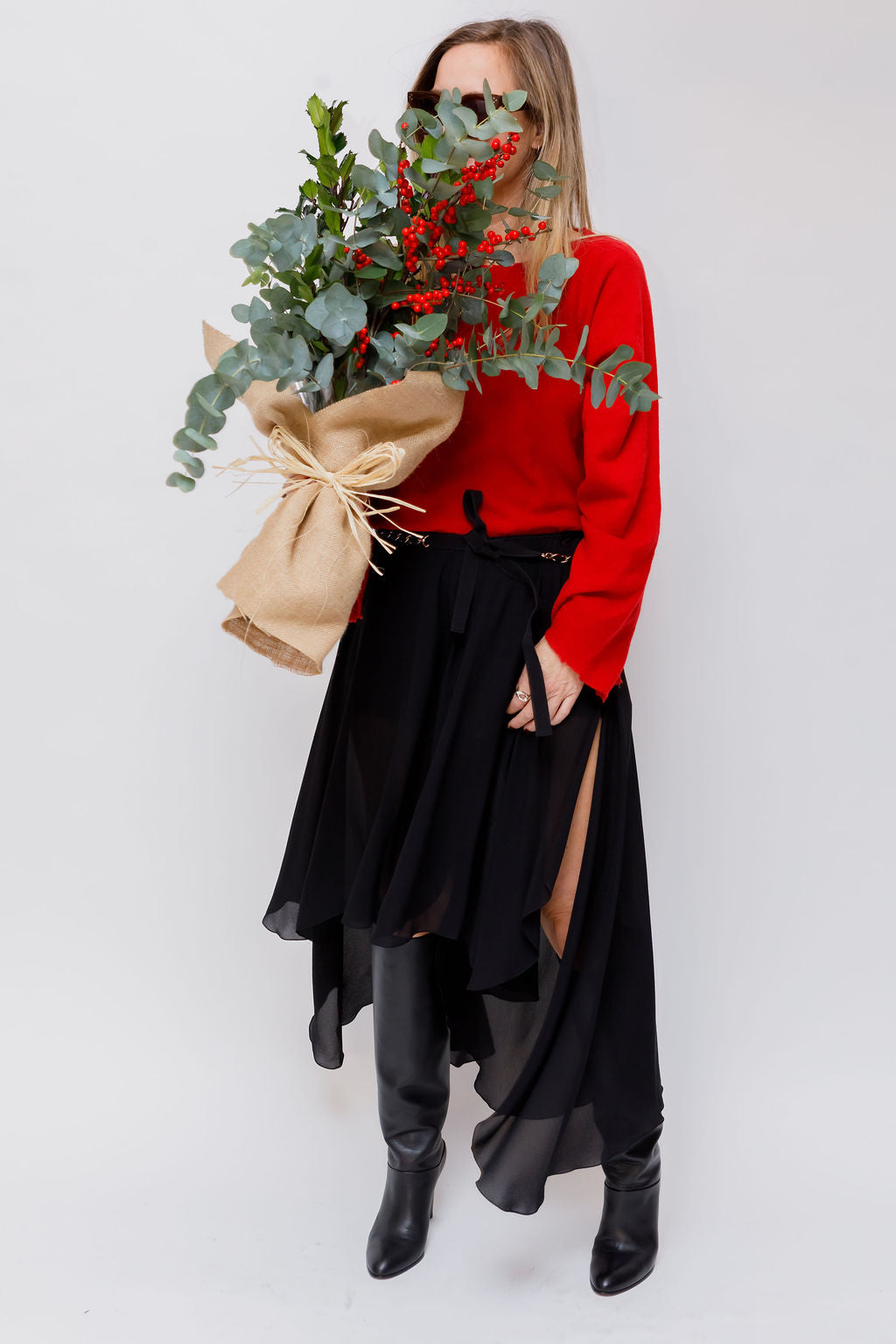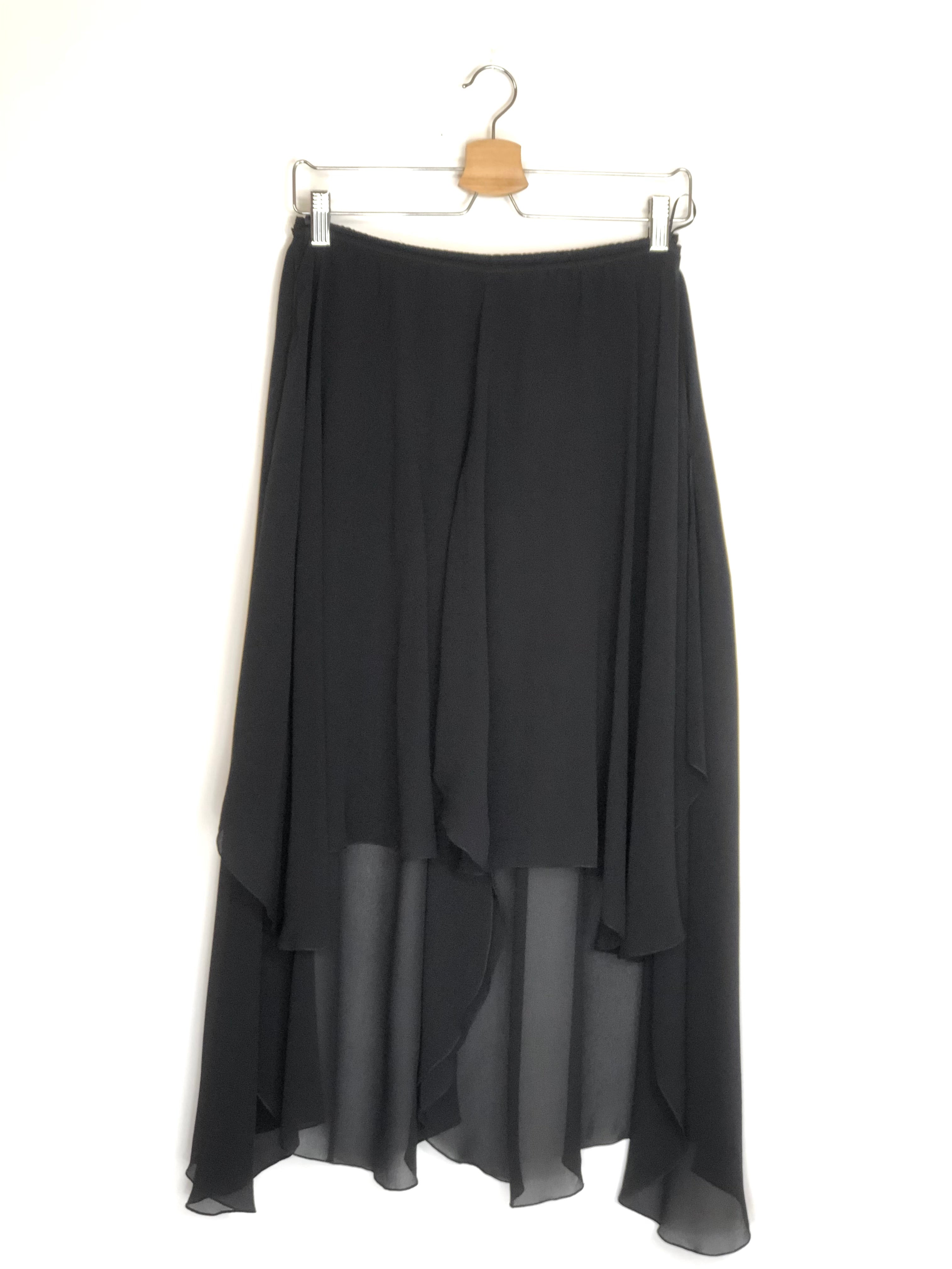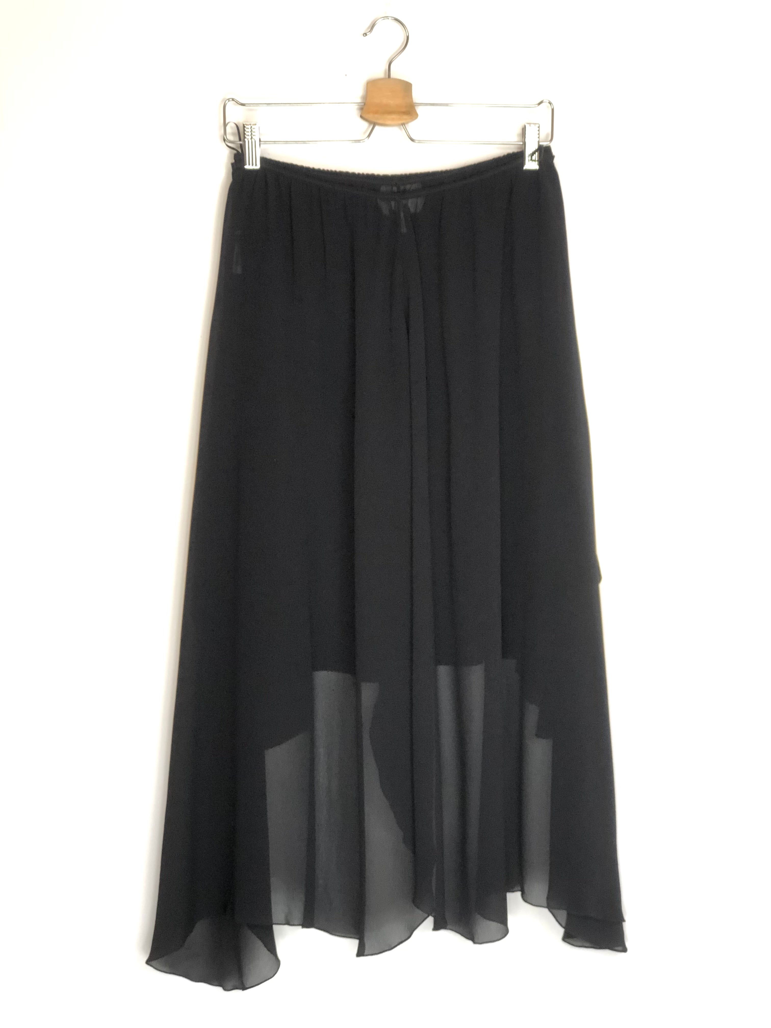 Black Silk Chiffon Asymmetric Midi Skirt / CHLOE - Size 36
