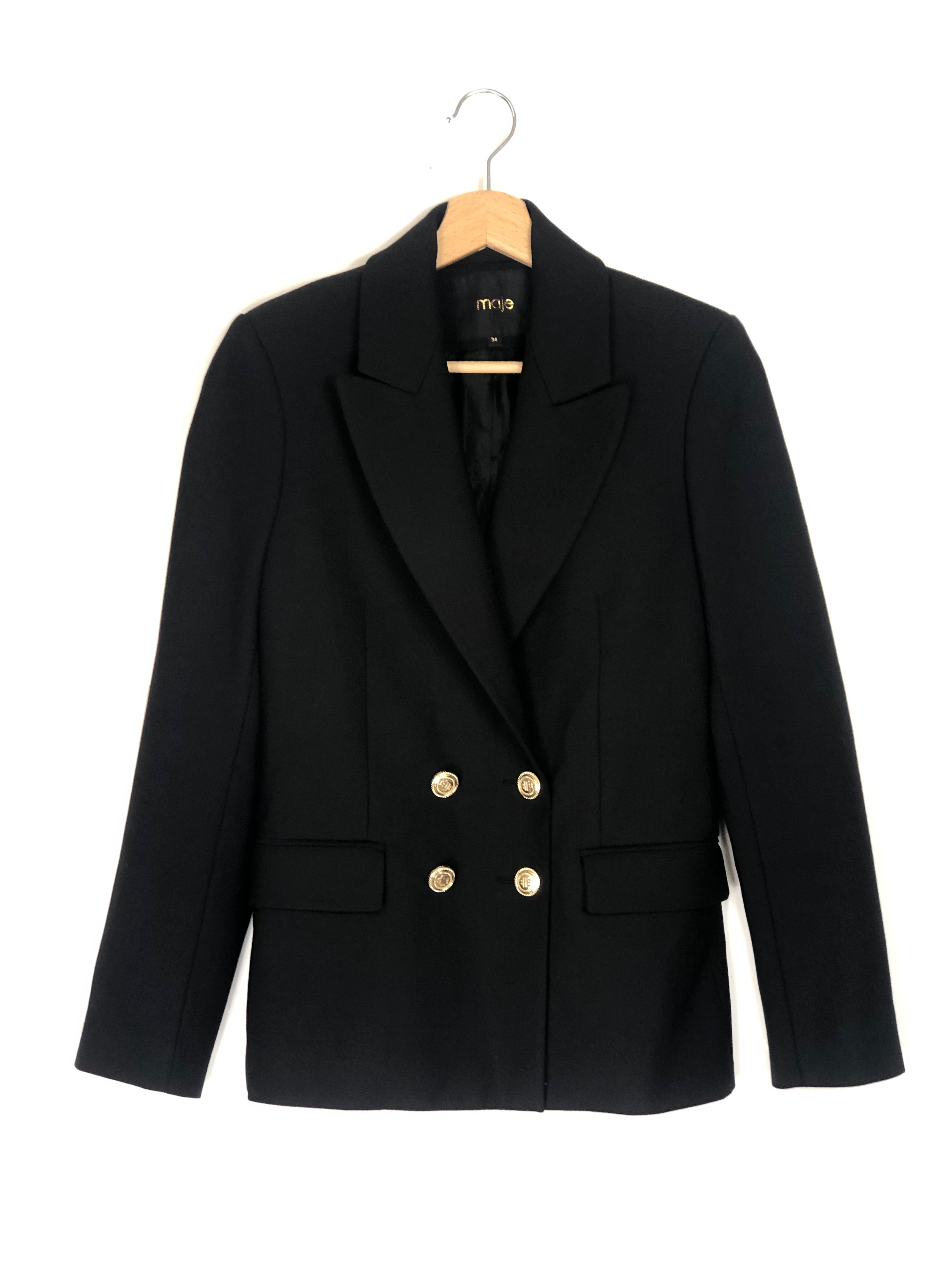 Black Slim-fit Wool blend Tailored Blazer Jacket / MAJE - Size 34