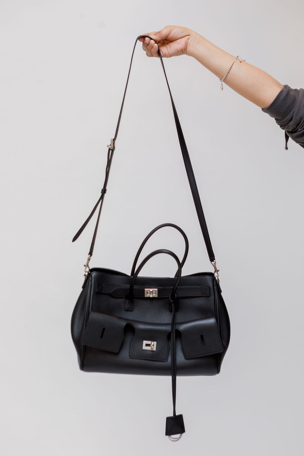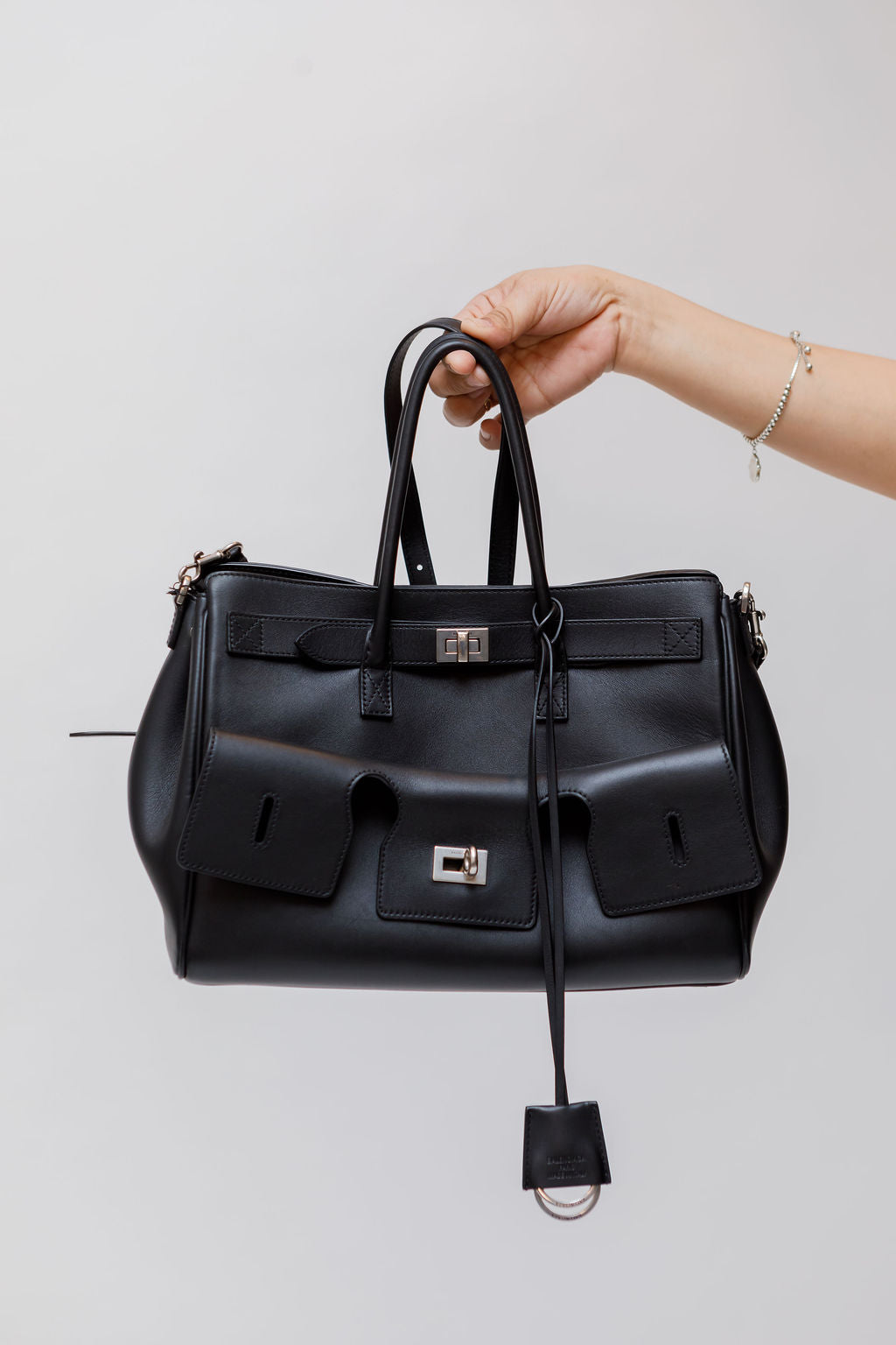 Black Smooth Calfskin Small Bel Air Carryall Bag / BALENCIAGA
