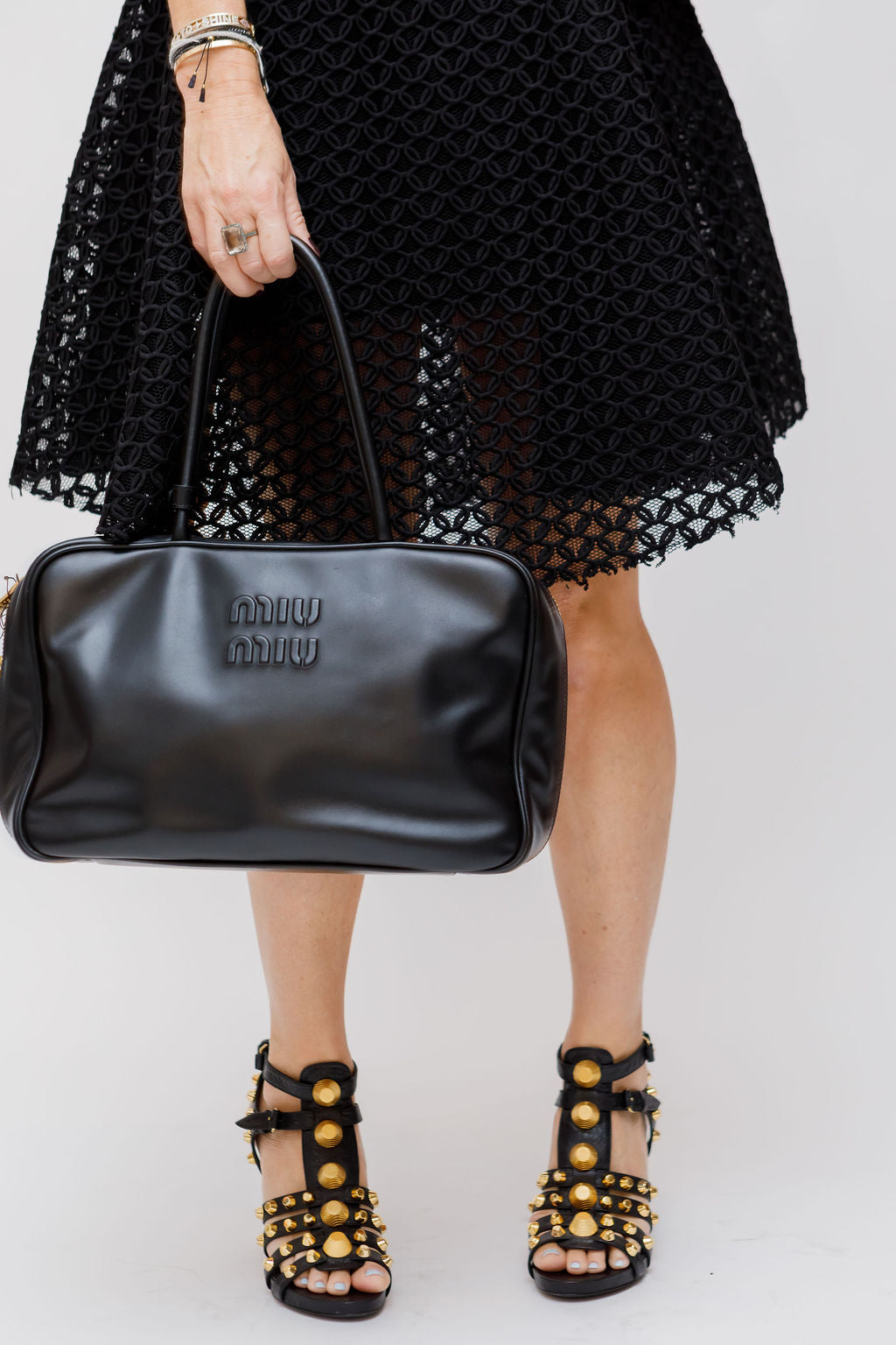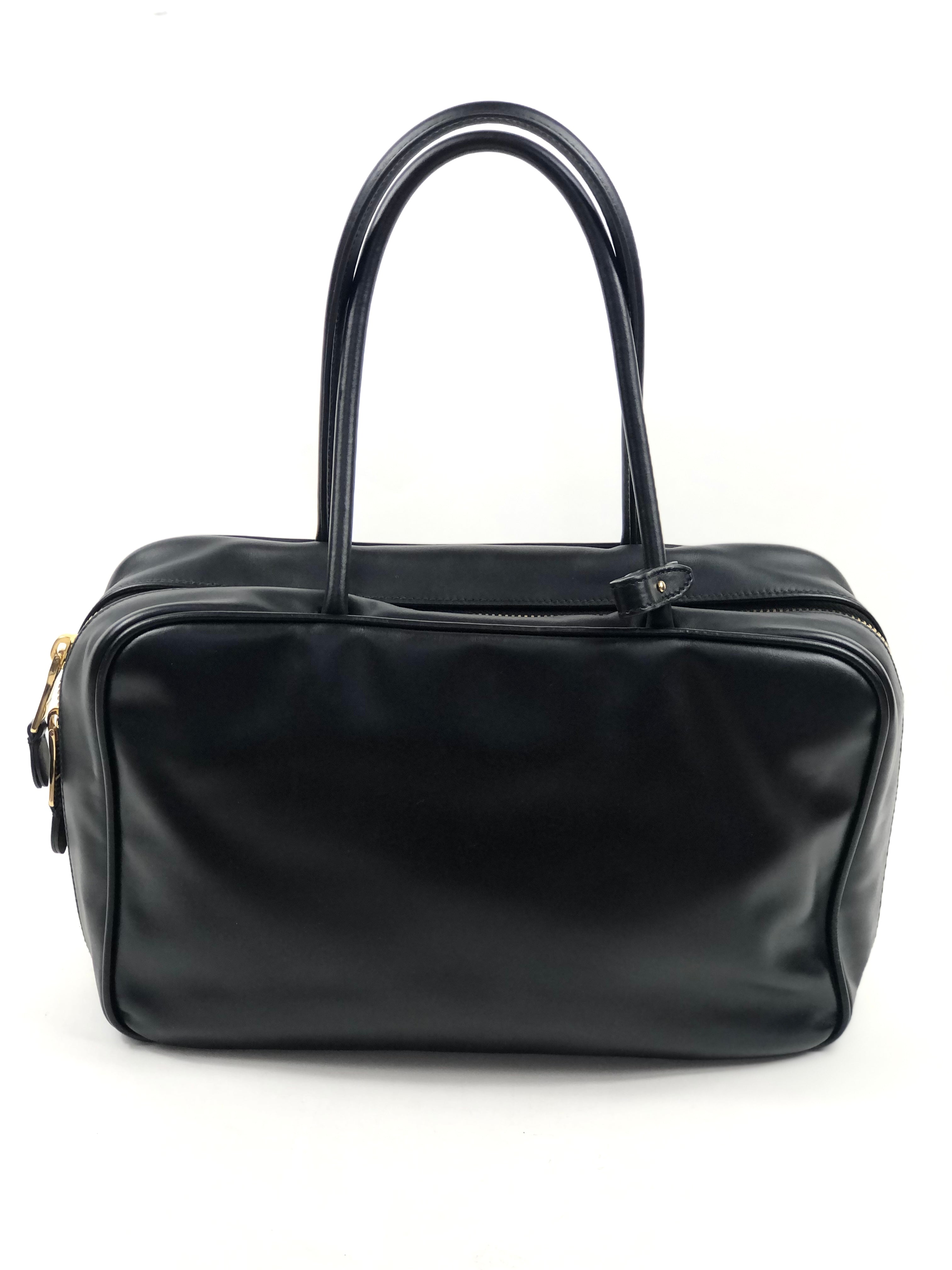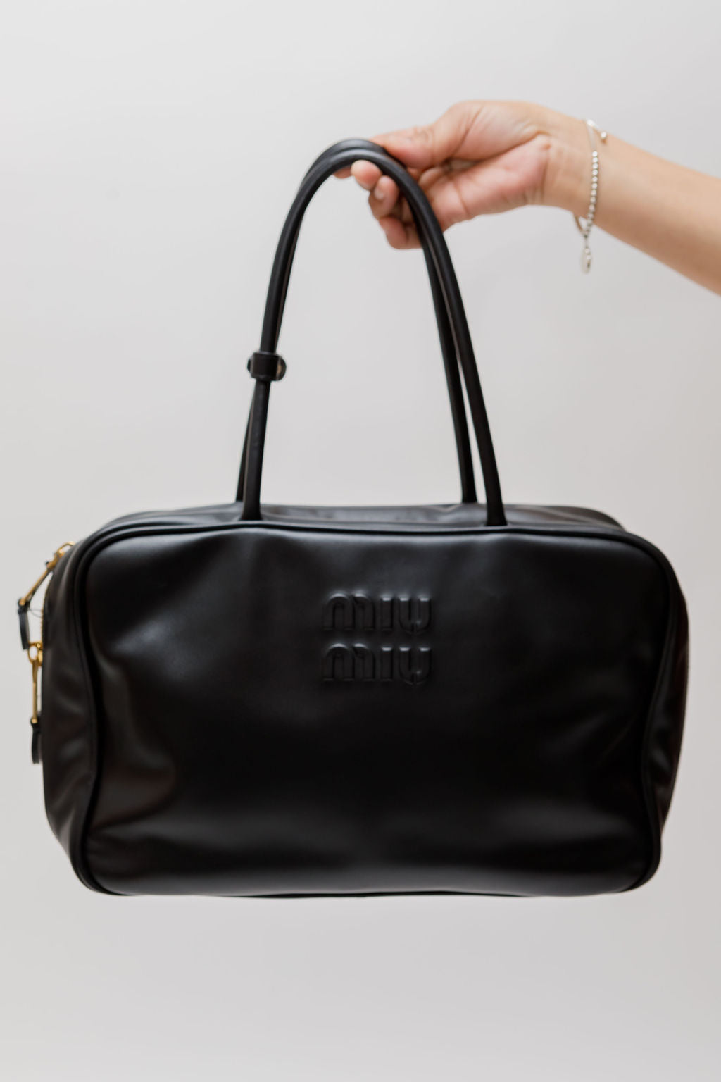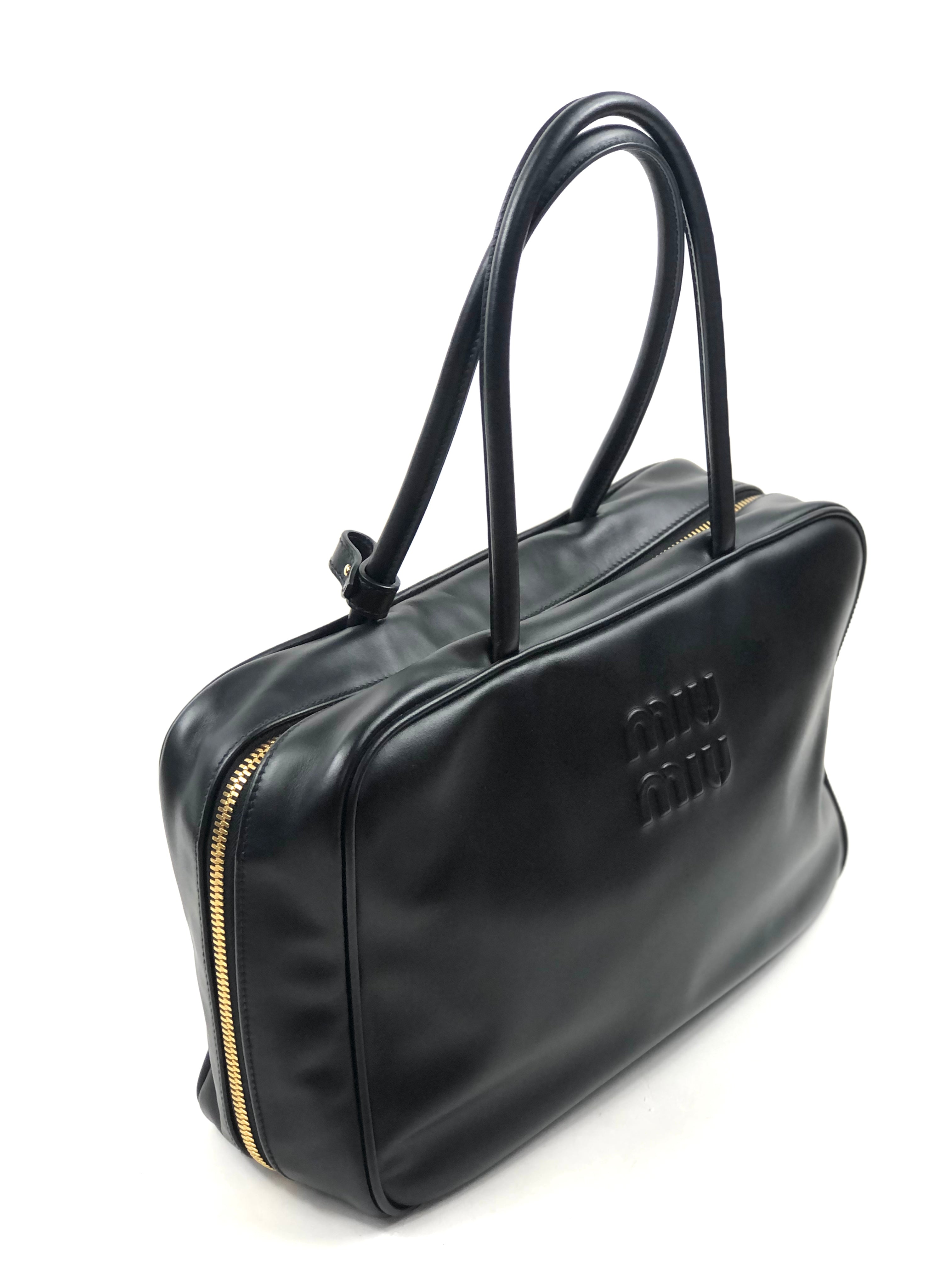 Black Smooth Leather Beau Large Top Handle Bag / MIU MIU