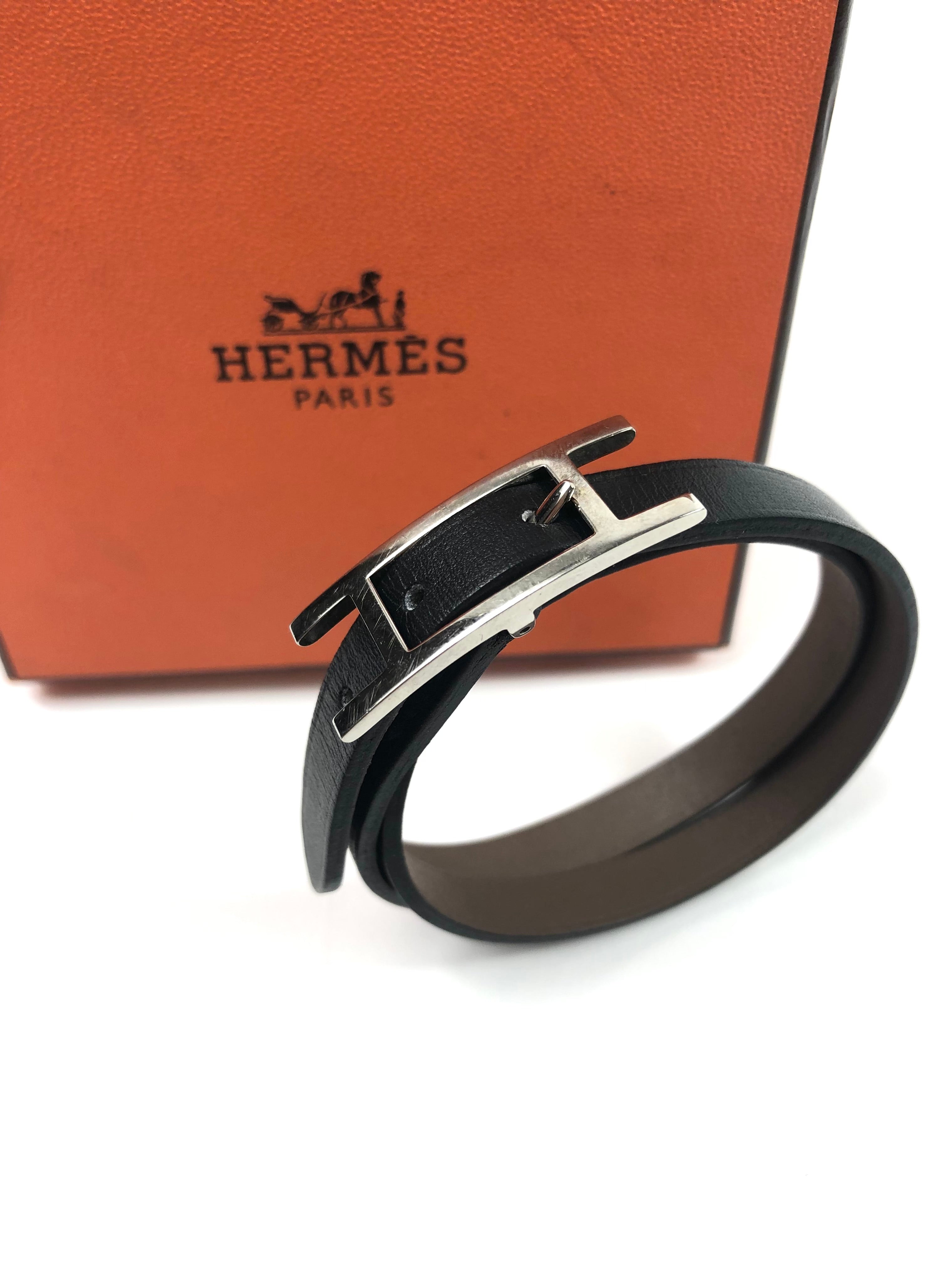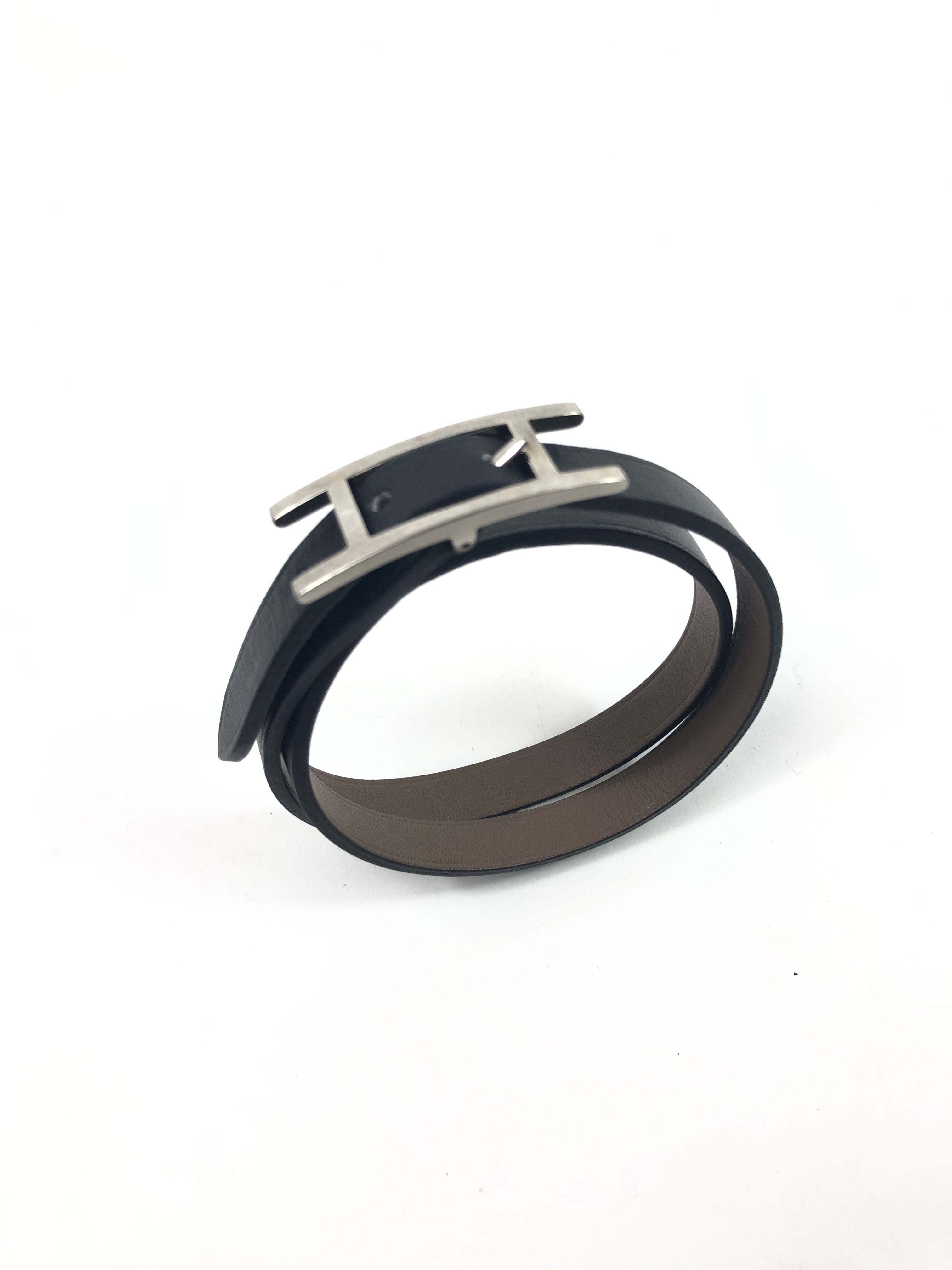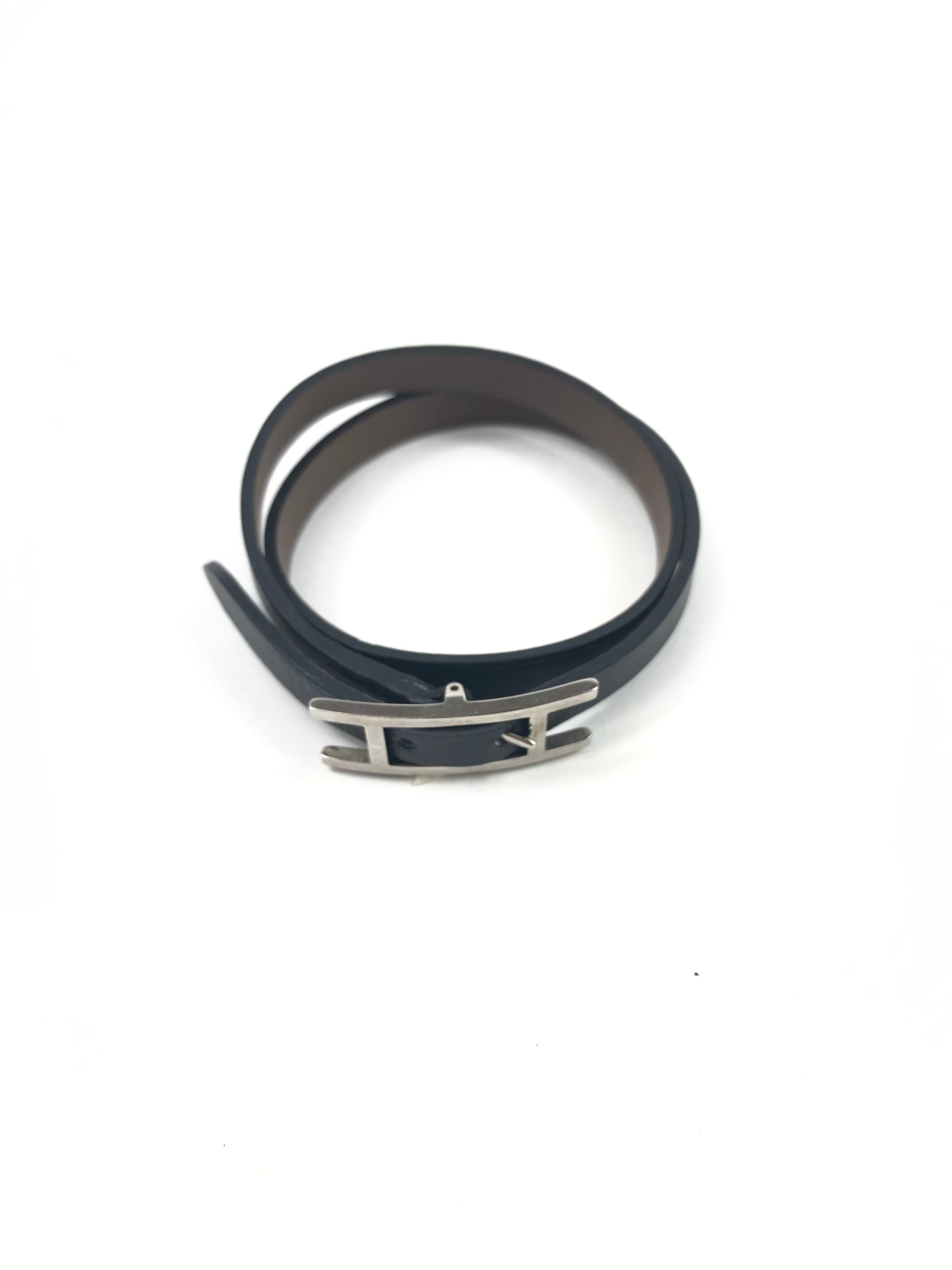Black Swift Leather Palladium Hardware Double Tour BEHAPI Bracelet / HERMES