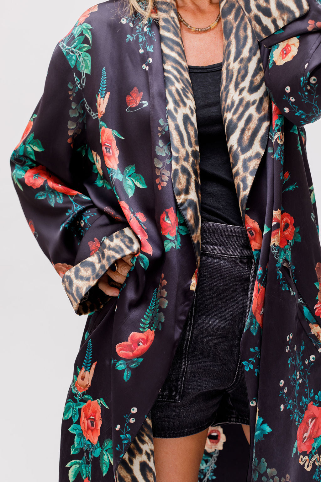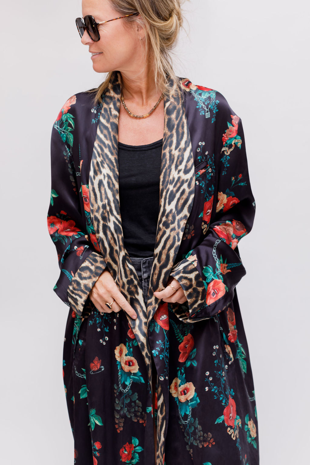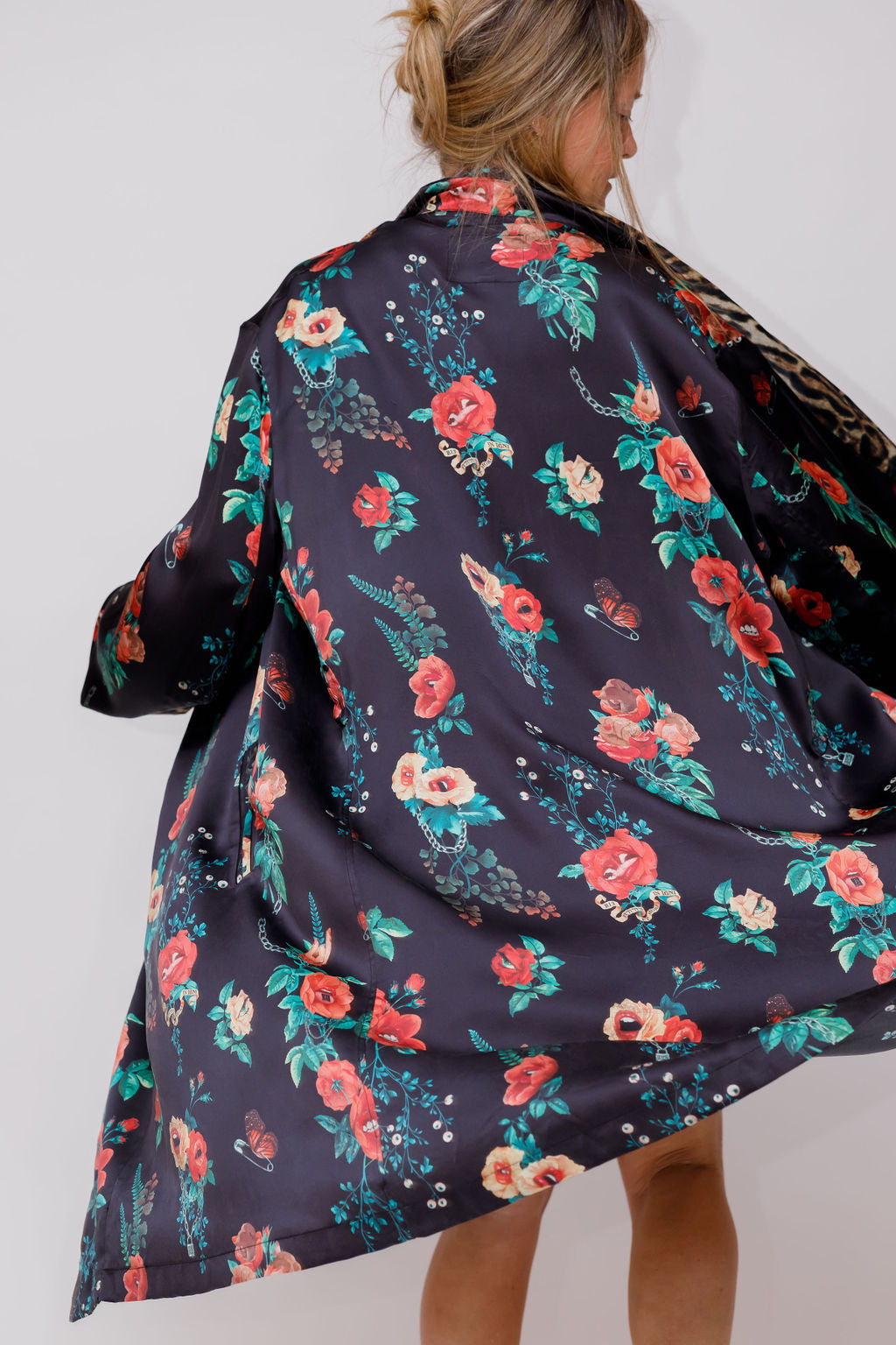 Black Useless Treasures Floral Print Silk Kimono Dress / R13 - Size M