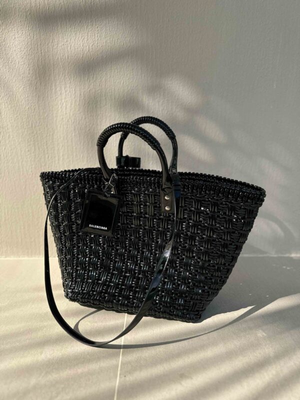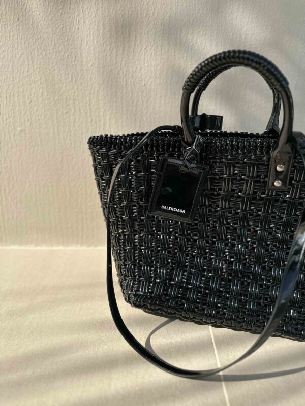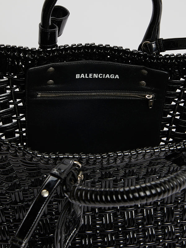 Black Varnished Faux Calfskin Basket Tote Bag - model BISTRO XL / BALENCIAGA