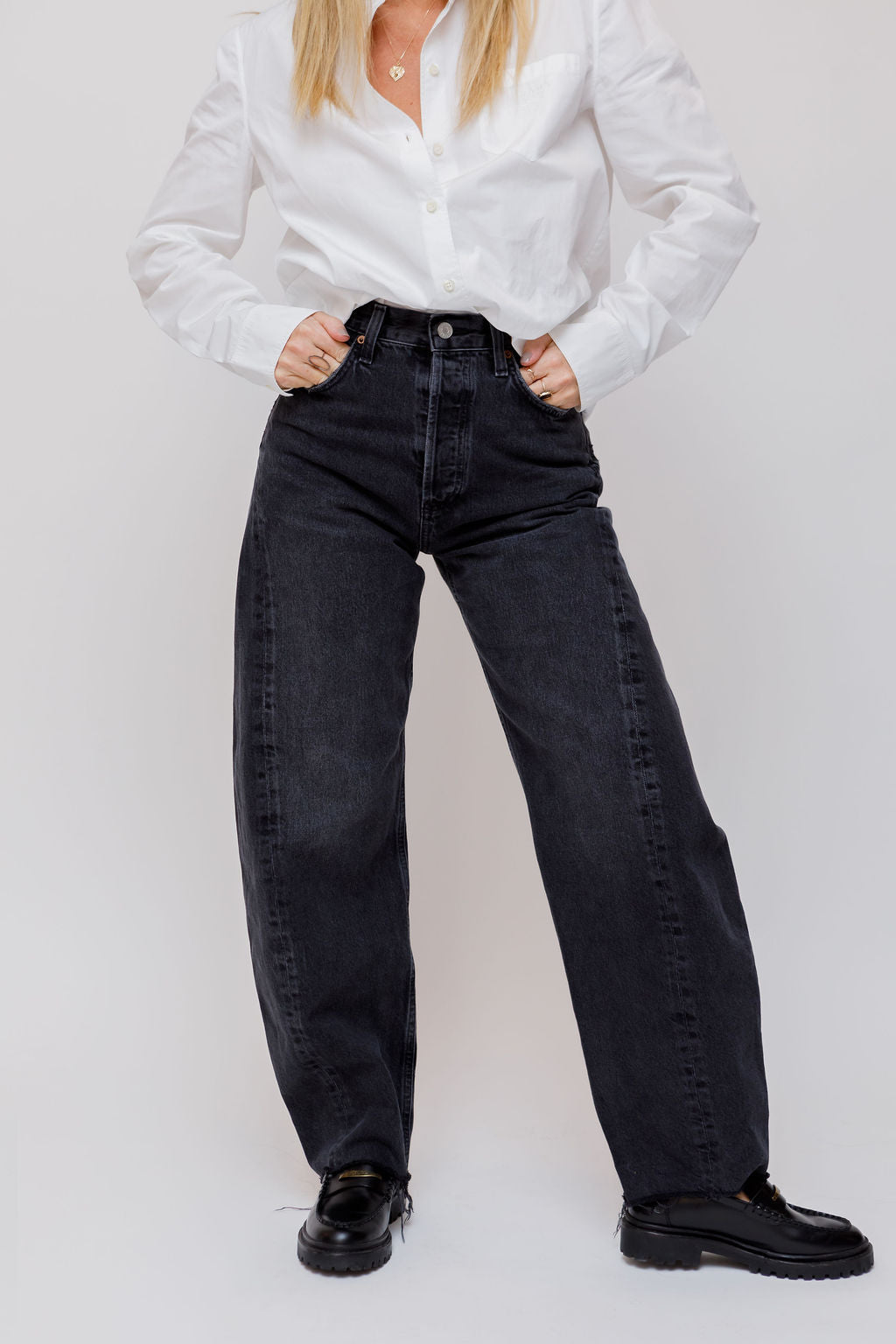 Black Washed LUNA High-rise Tapered Denim Jeans / AGOLDE - Size 24