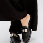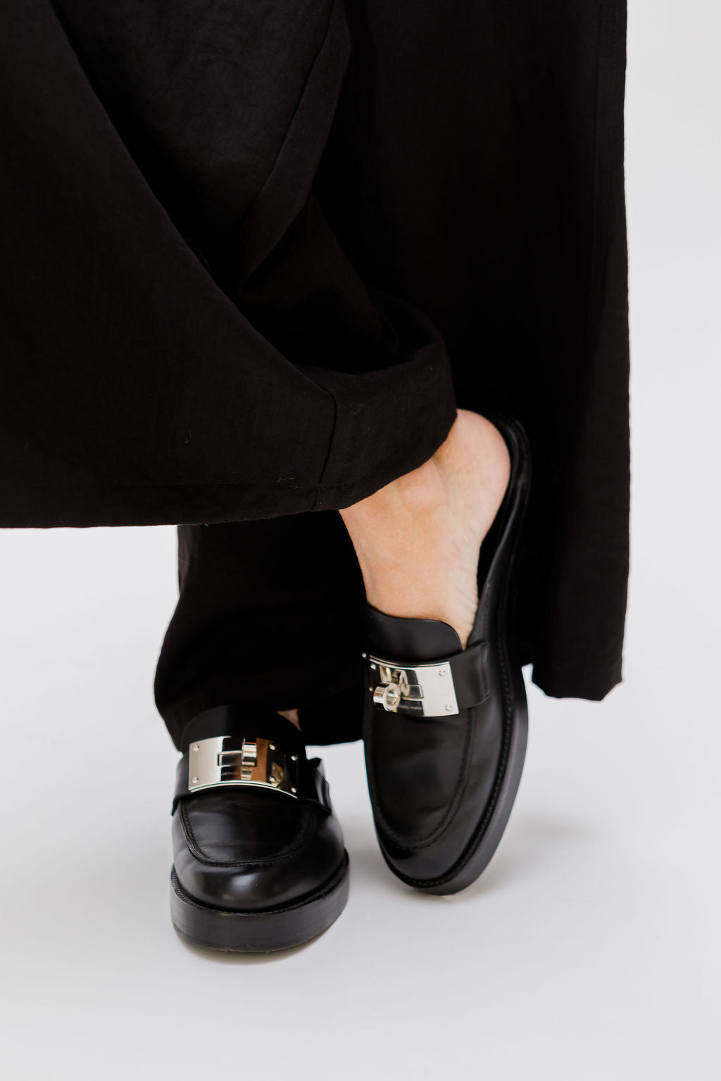 Black with Iconic Oversized Kelly Buckle Leather Mules / HERMES - Size 38