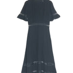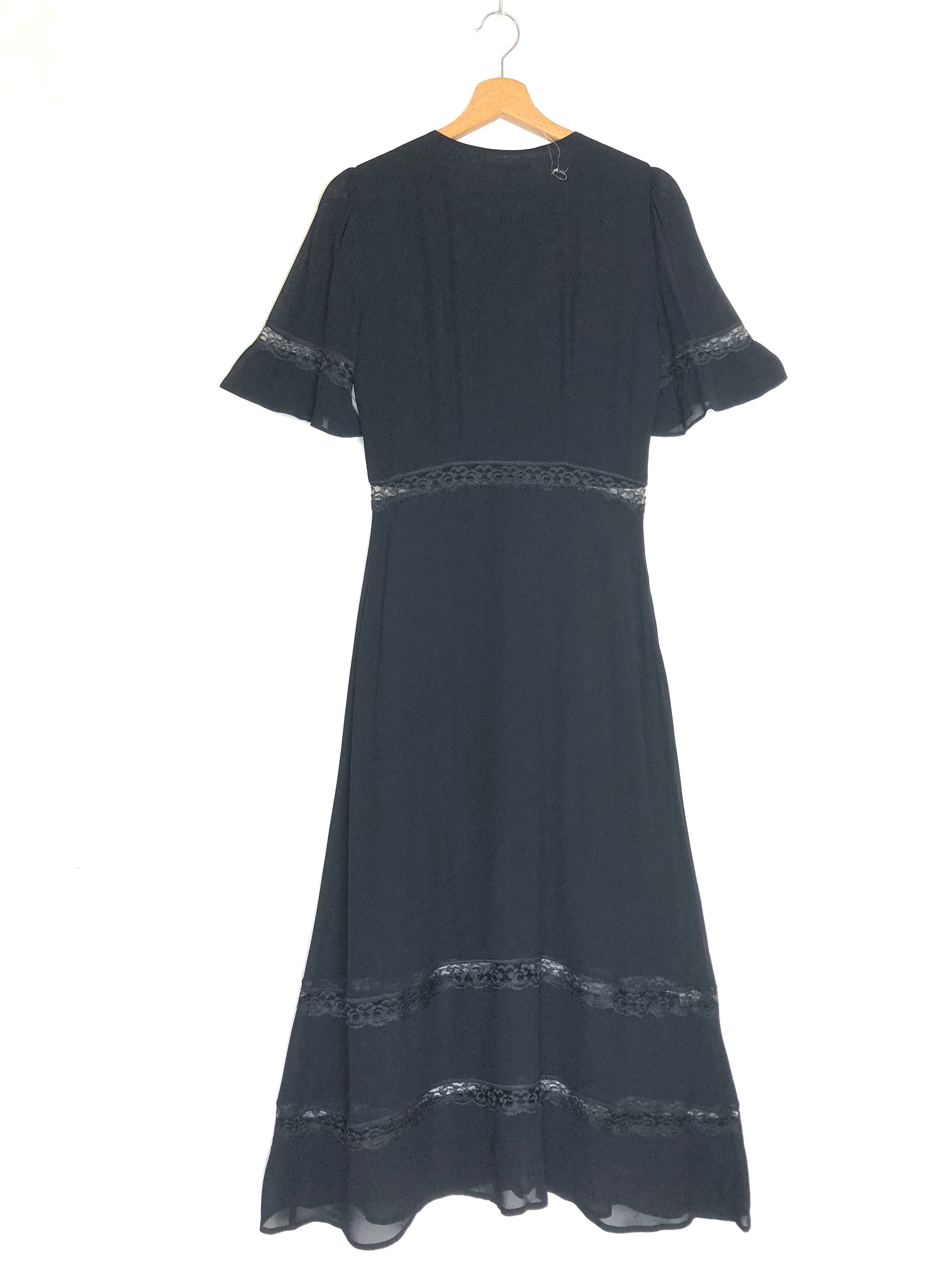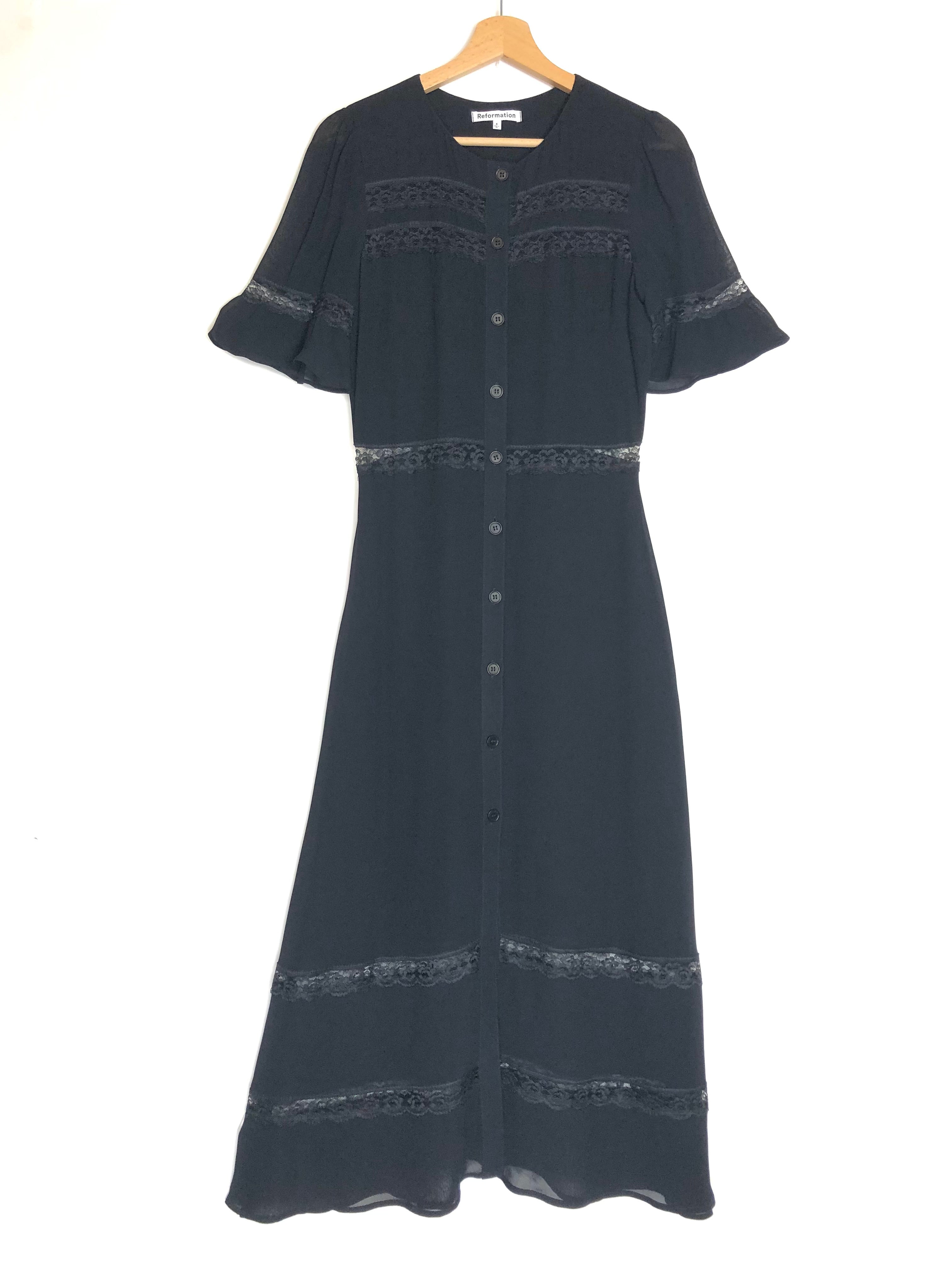 Black WOODSON Smooth Georgette Lace-trim Short Sleeves Buttoned Midi Dress / REFORMATION - Size US 4