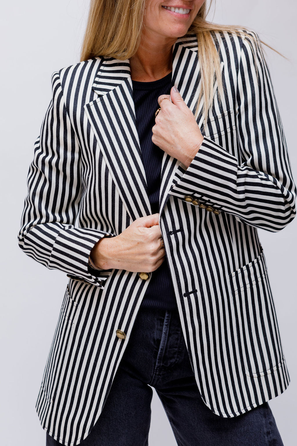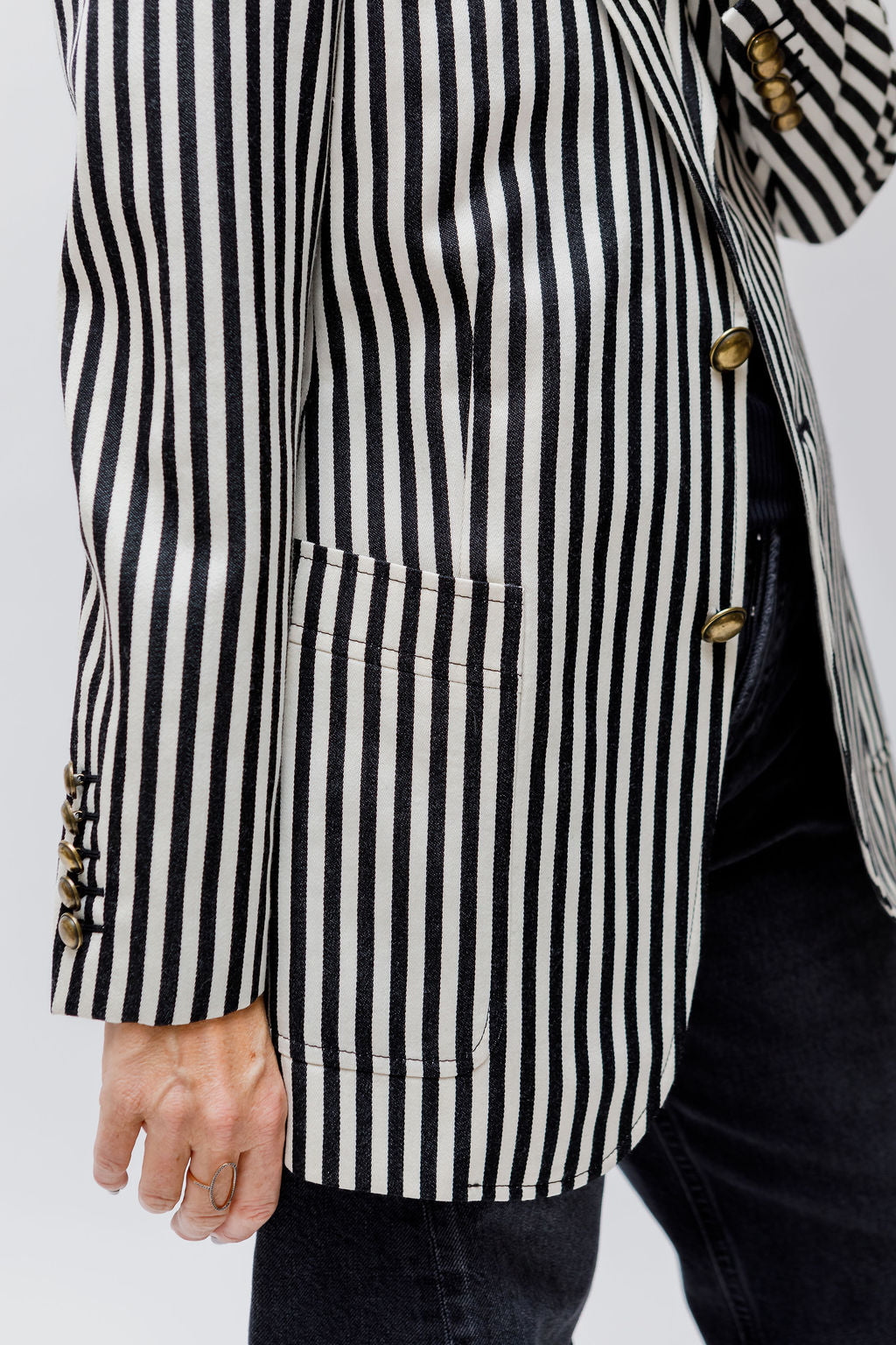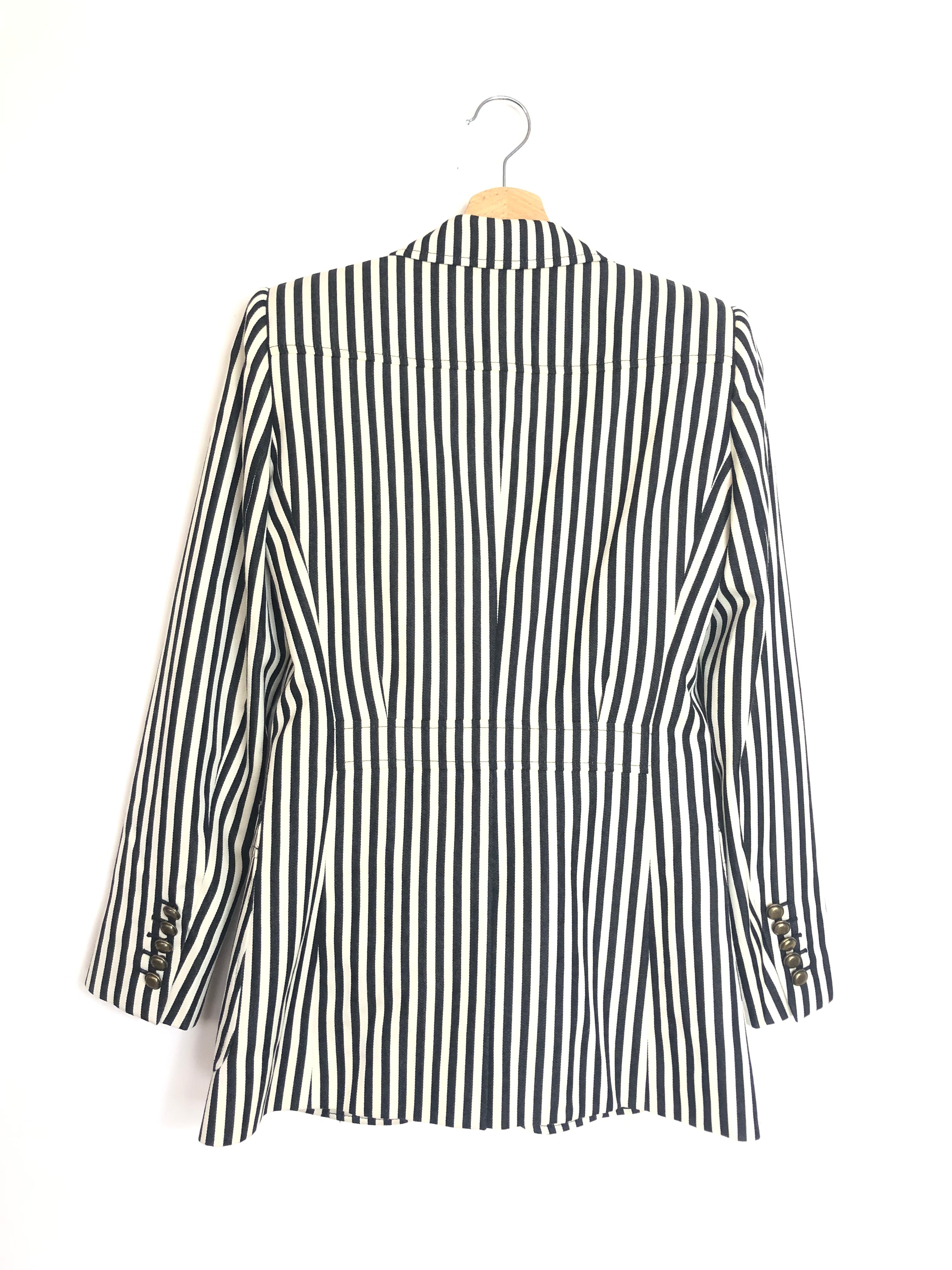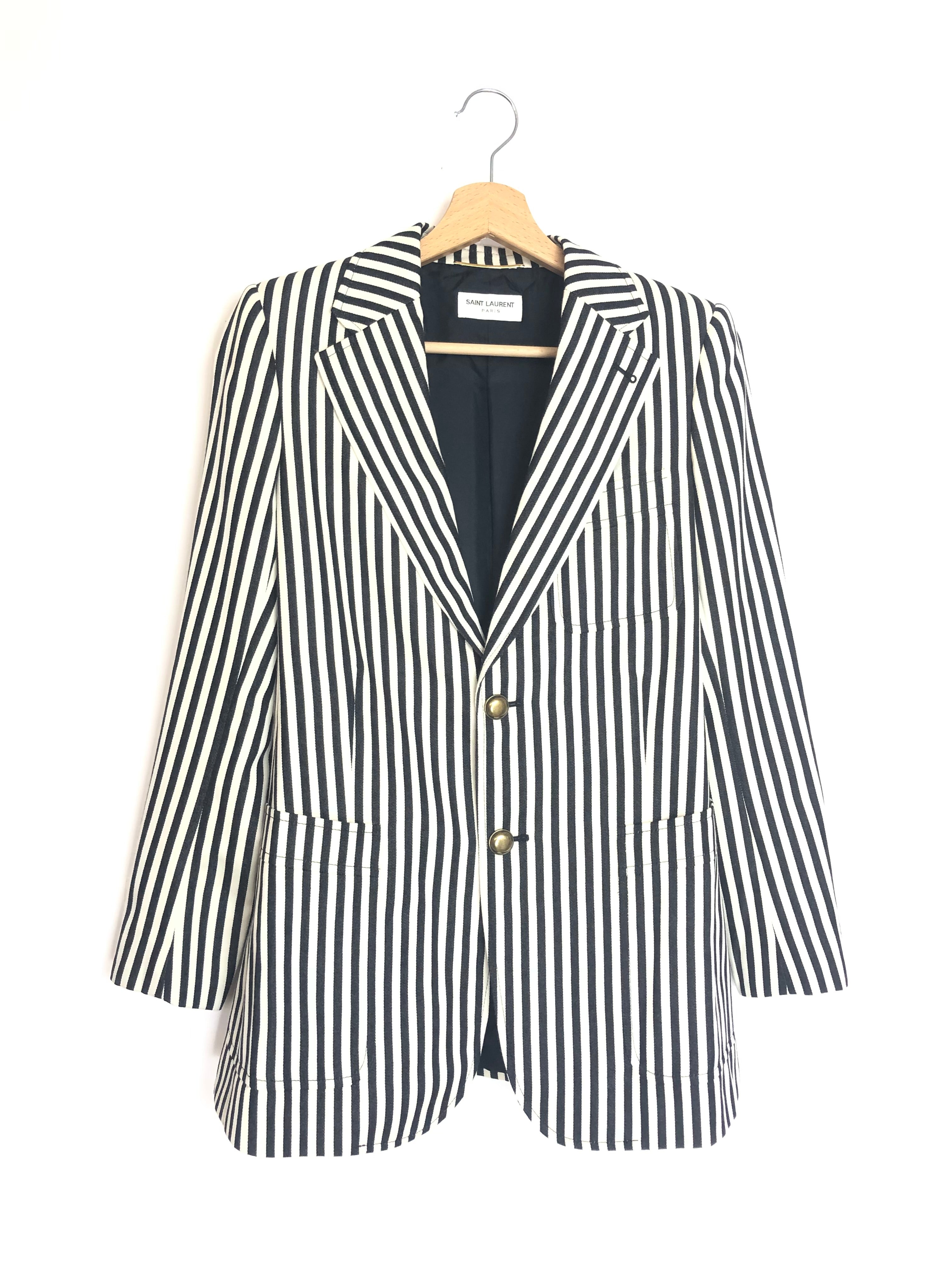 Black/White Striped Double Breasted Wool Blazer Jacket / SAINT LAURENT - Size 38