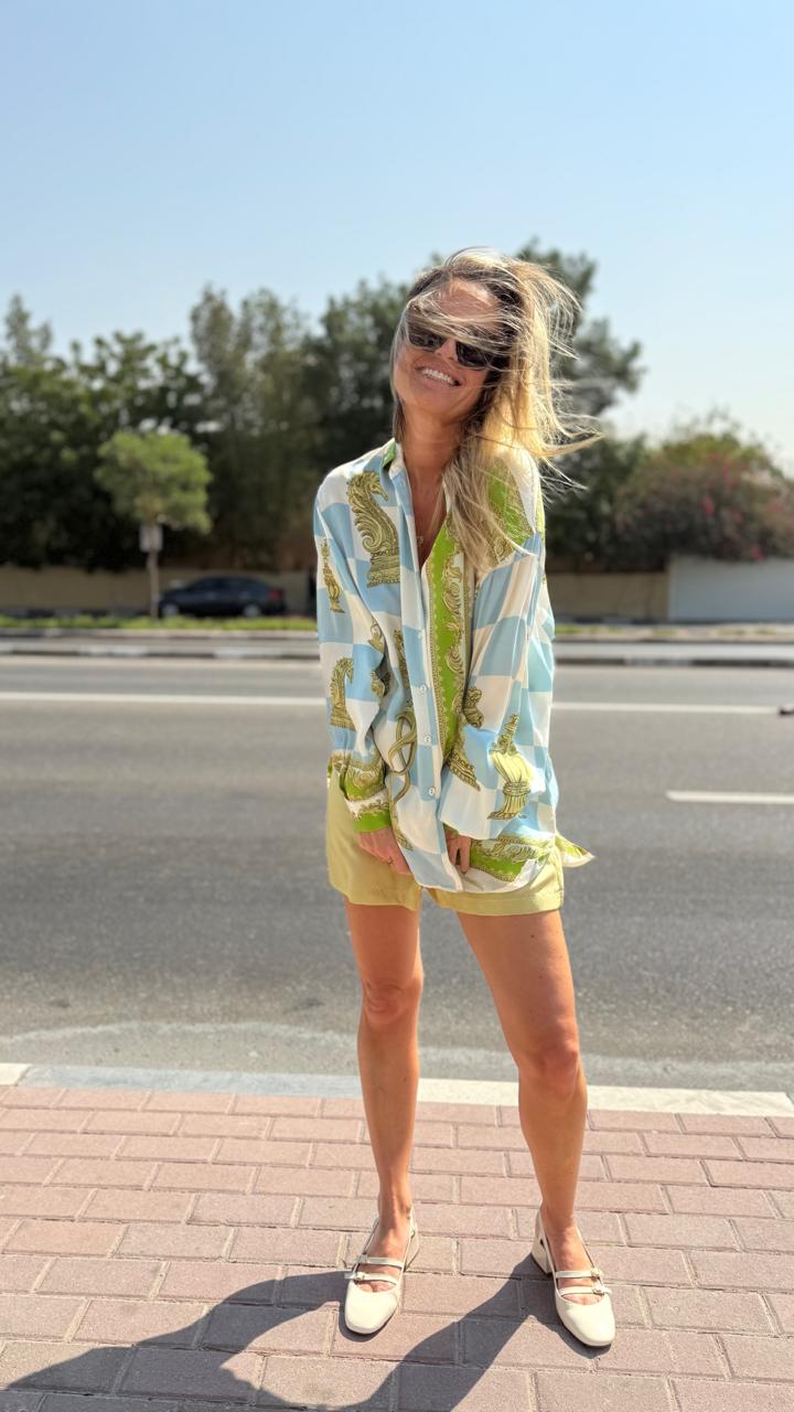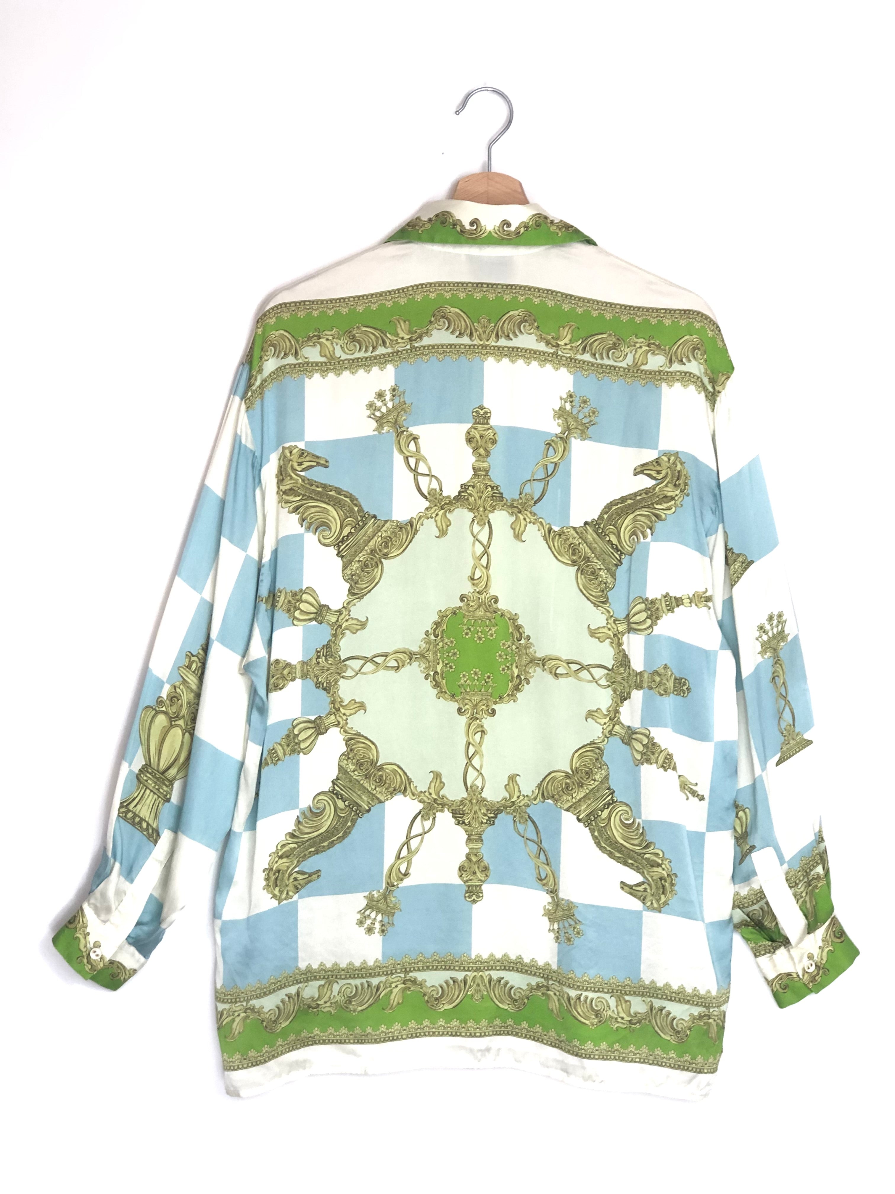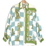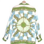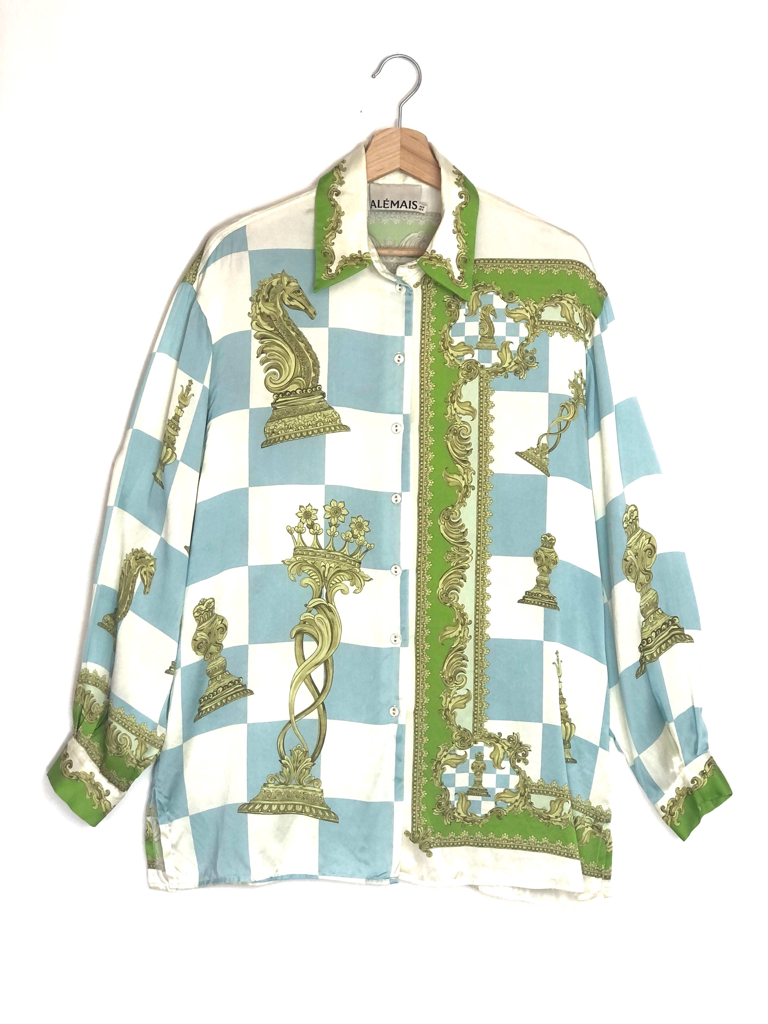 Blue and Green Checkmate Silk Long Sleeves Shirt / ALEMAIS - Size US 4