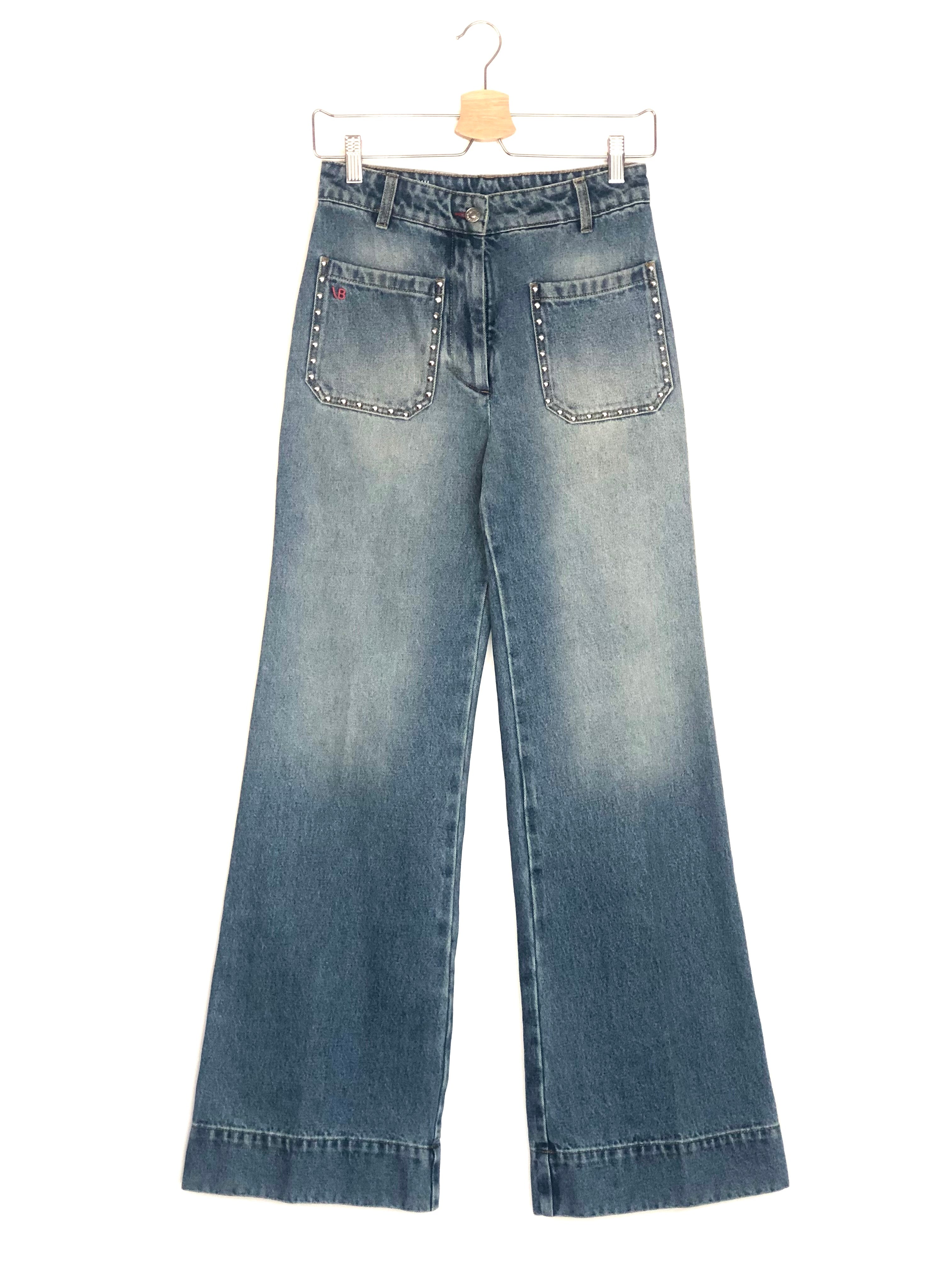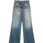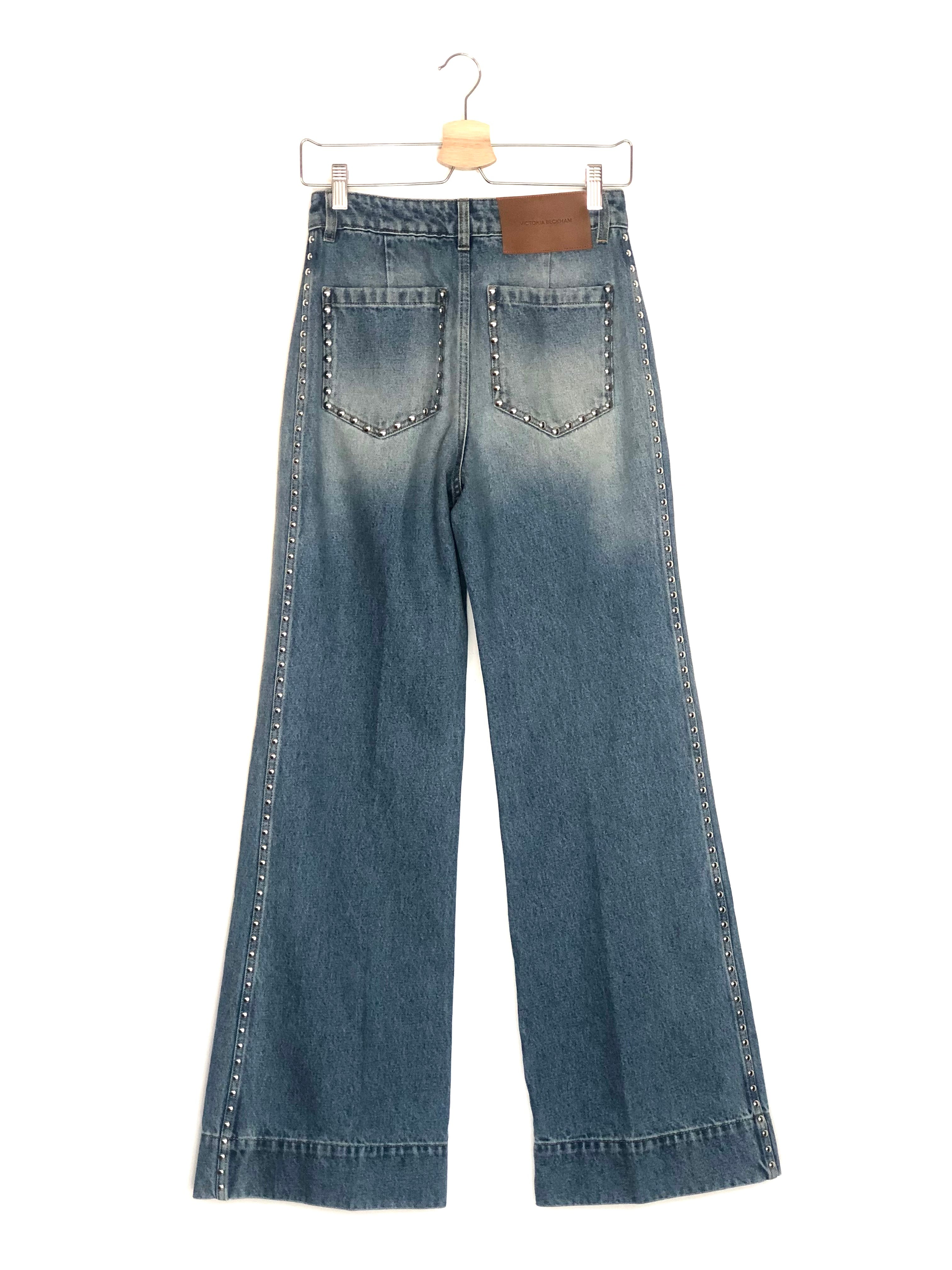 Blue Denim ALINA Studs Embellished High-rise Wide-leg Jeans / VICTORIA BECKHAM - Size 26