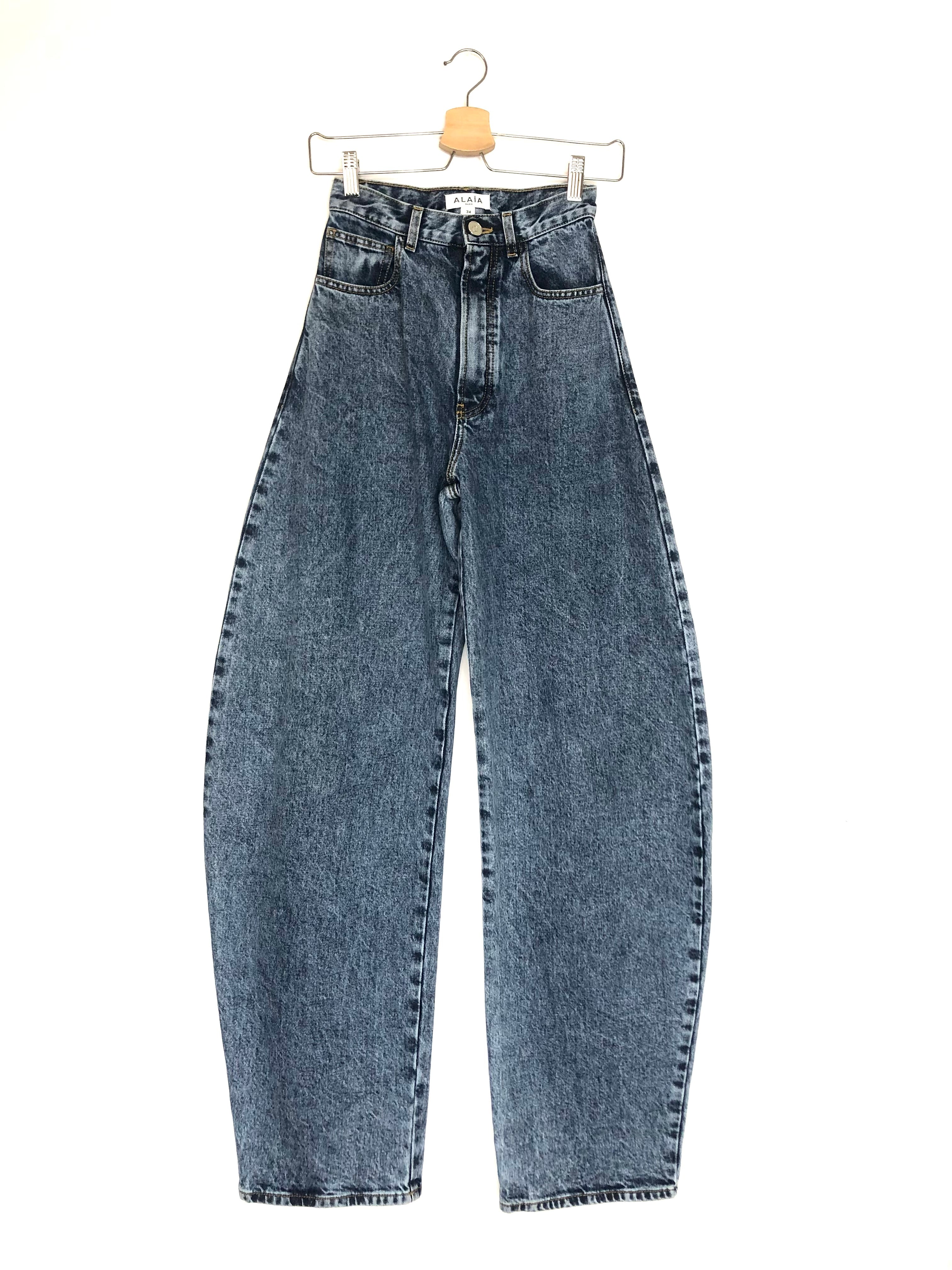 Blue Denim High Waist Round Barrel Jeans / ALAIA - Size 34