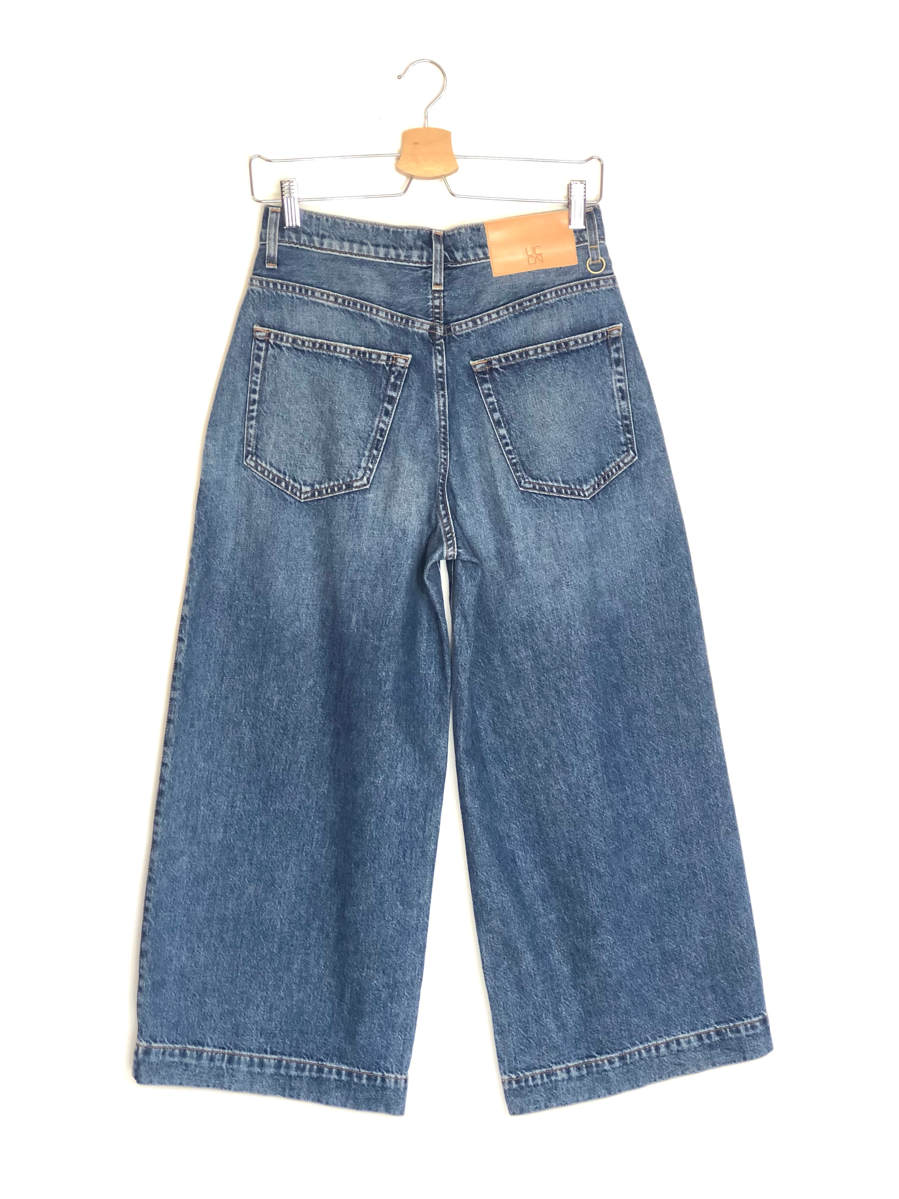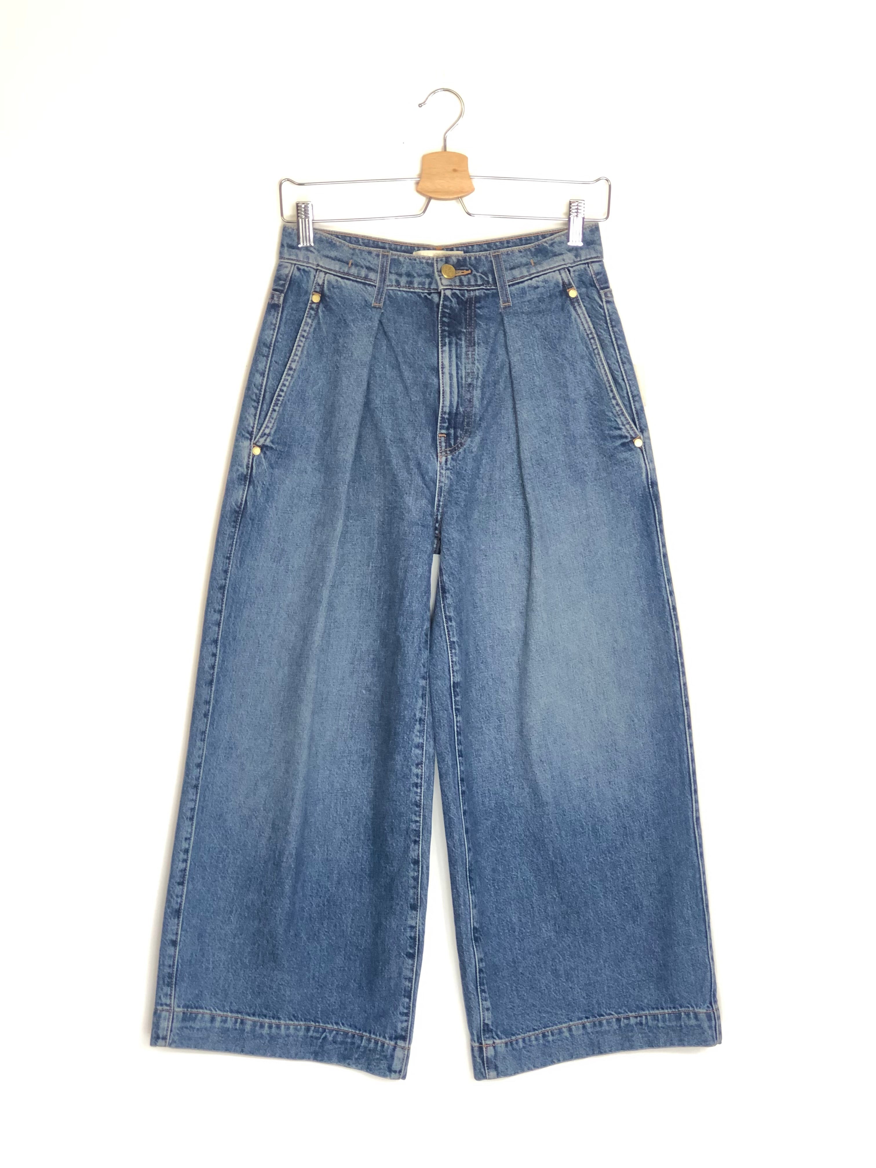 Blue Denim The APRIL Cropped Pleated High-rise Wide-leg Jeans / ULLA JOHNSON - Size 24