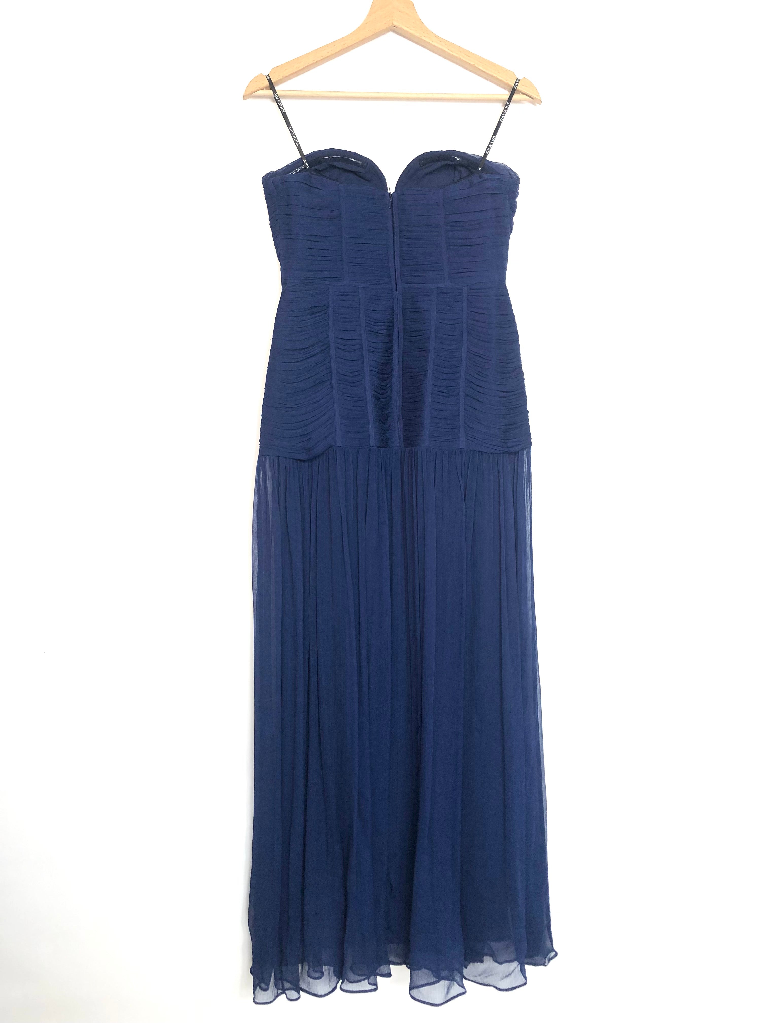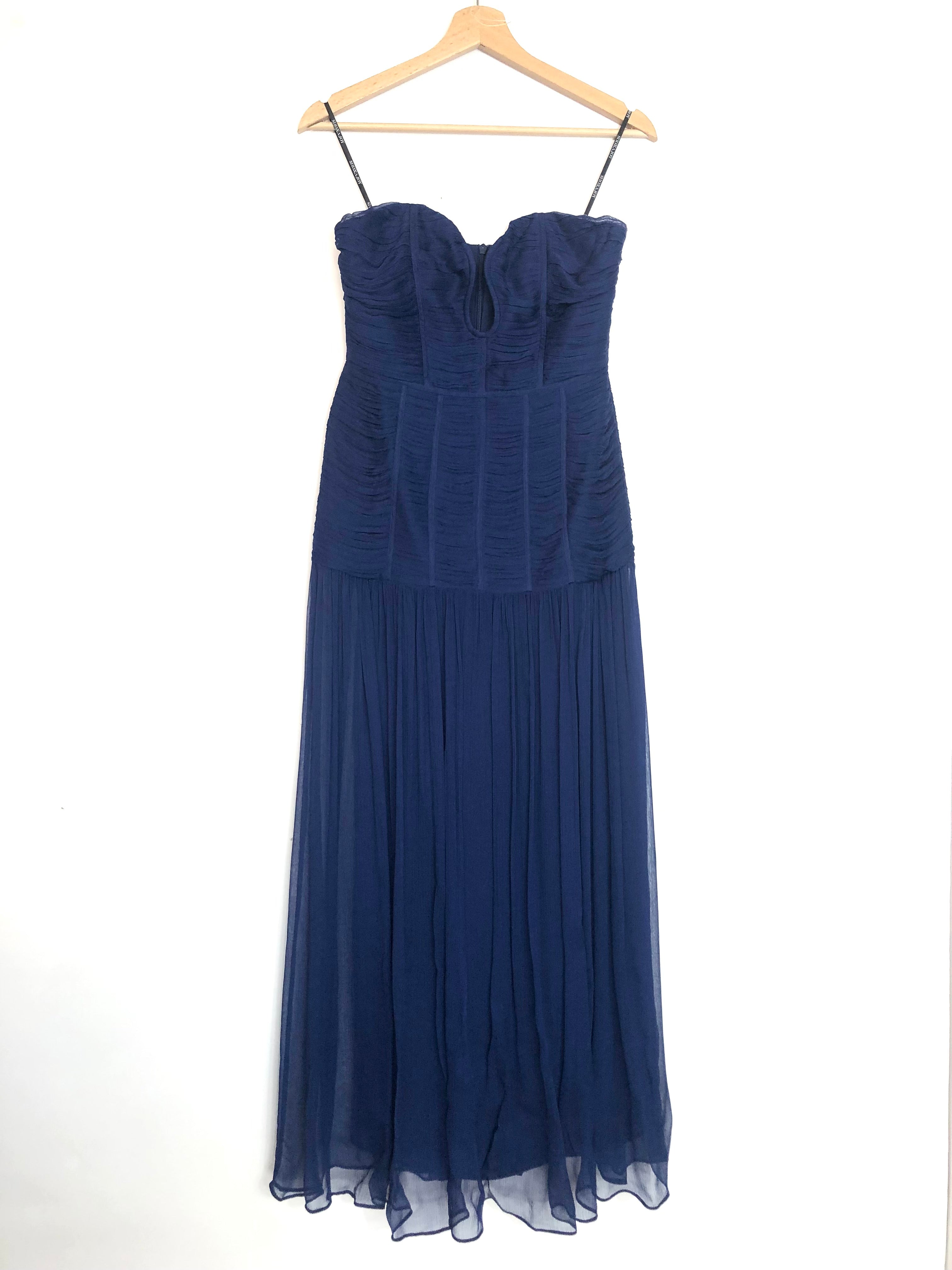 Blue ISOLA Strapless Chiffon Ruched Midi Dress / SHONA JOY - Size 36