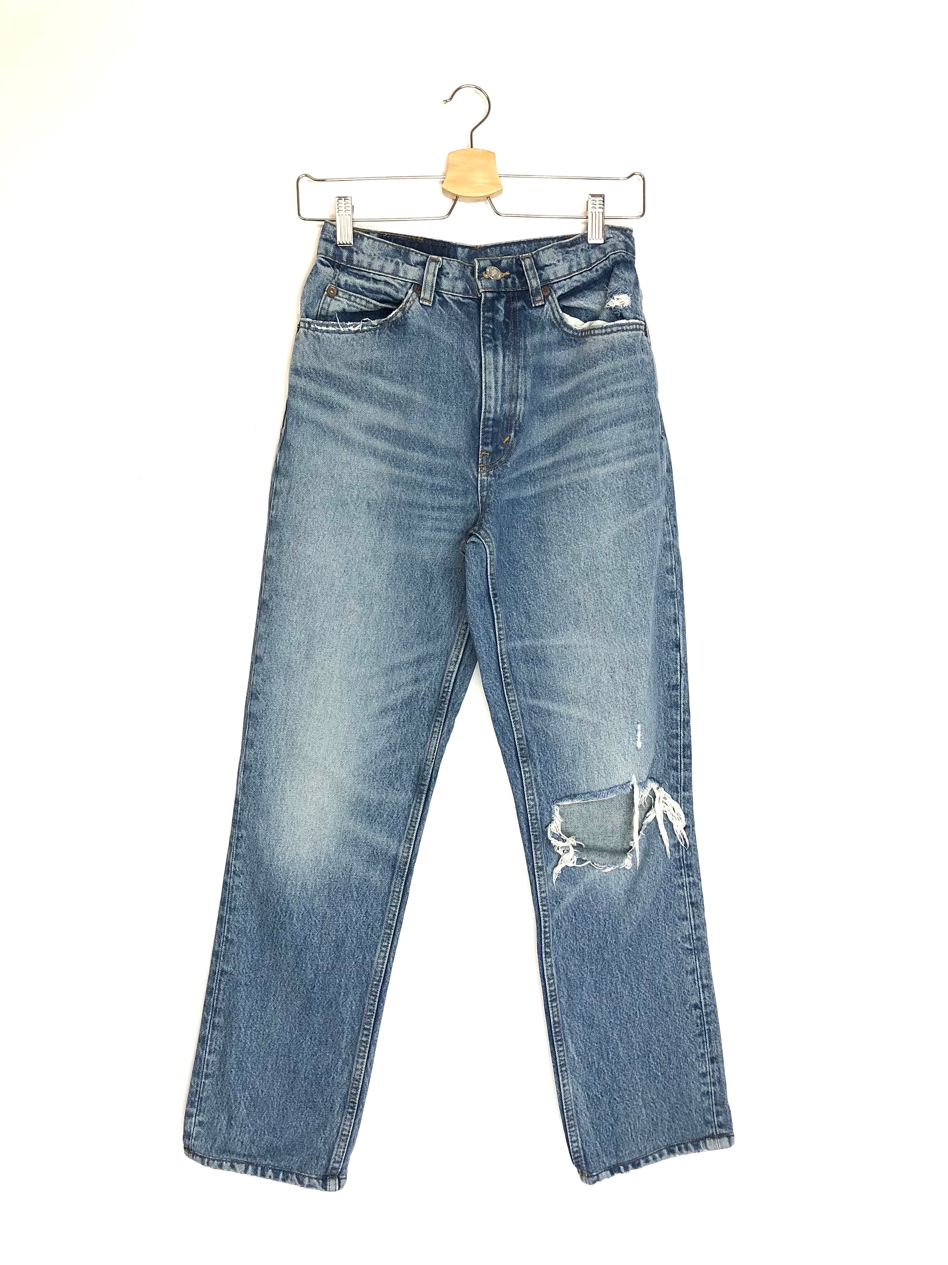 Blue Medium Wash 70's Distressed Straight Denim Jeans / RE/DONE - Size 34