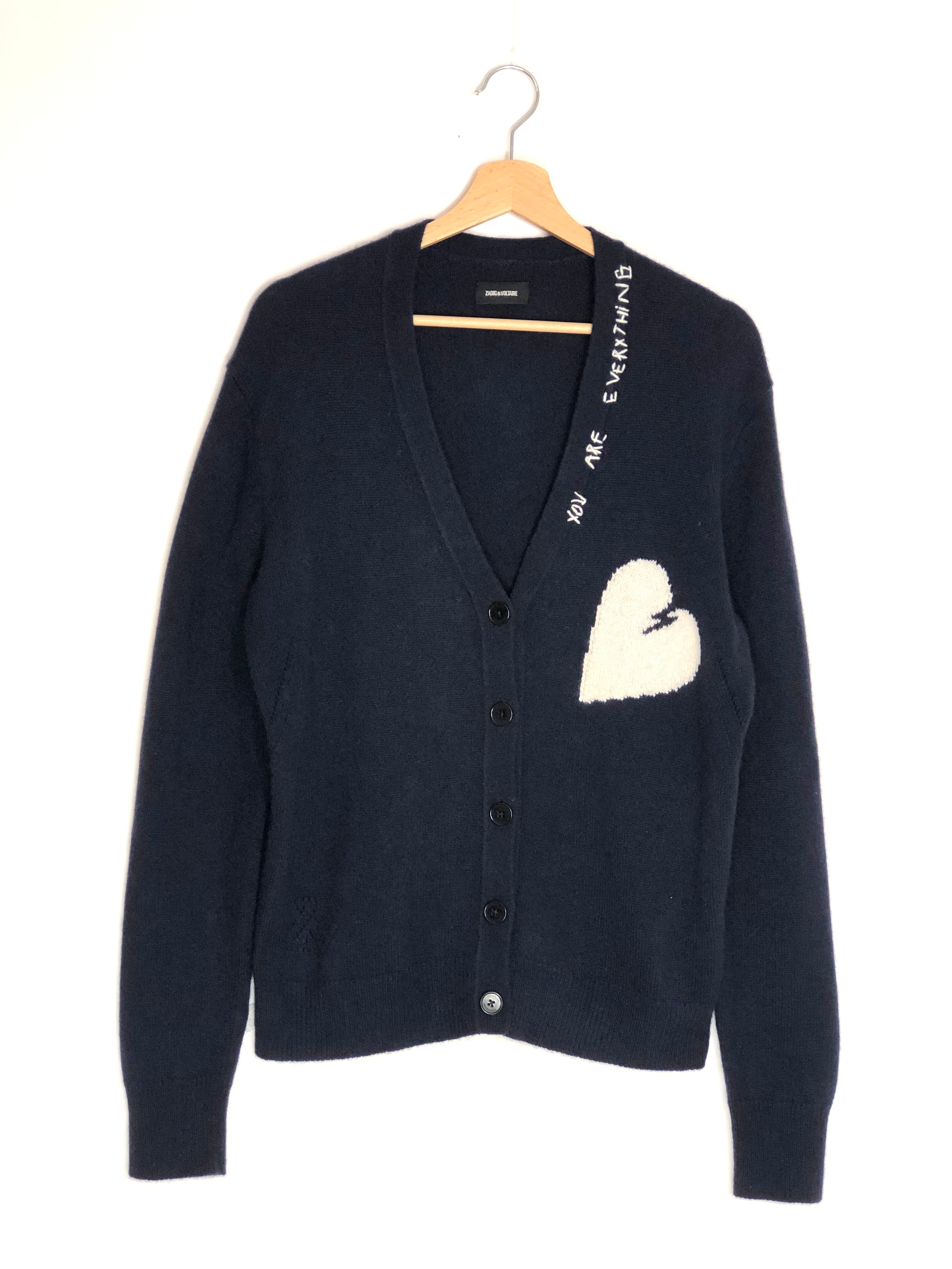 Blue TRAVIA White Heart Cashmere Cardigan / ZADIG & VOLTAIRE - Size M