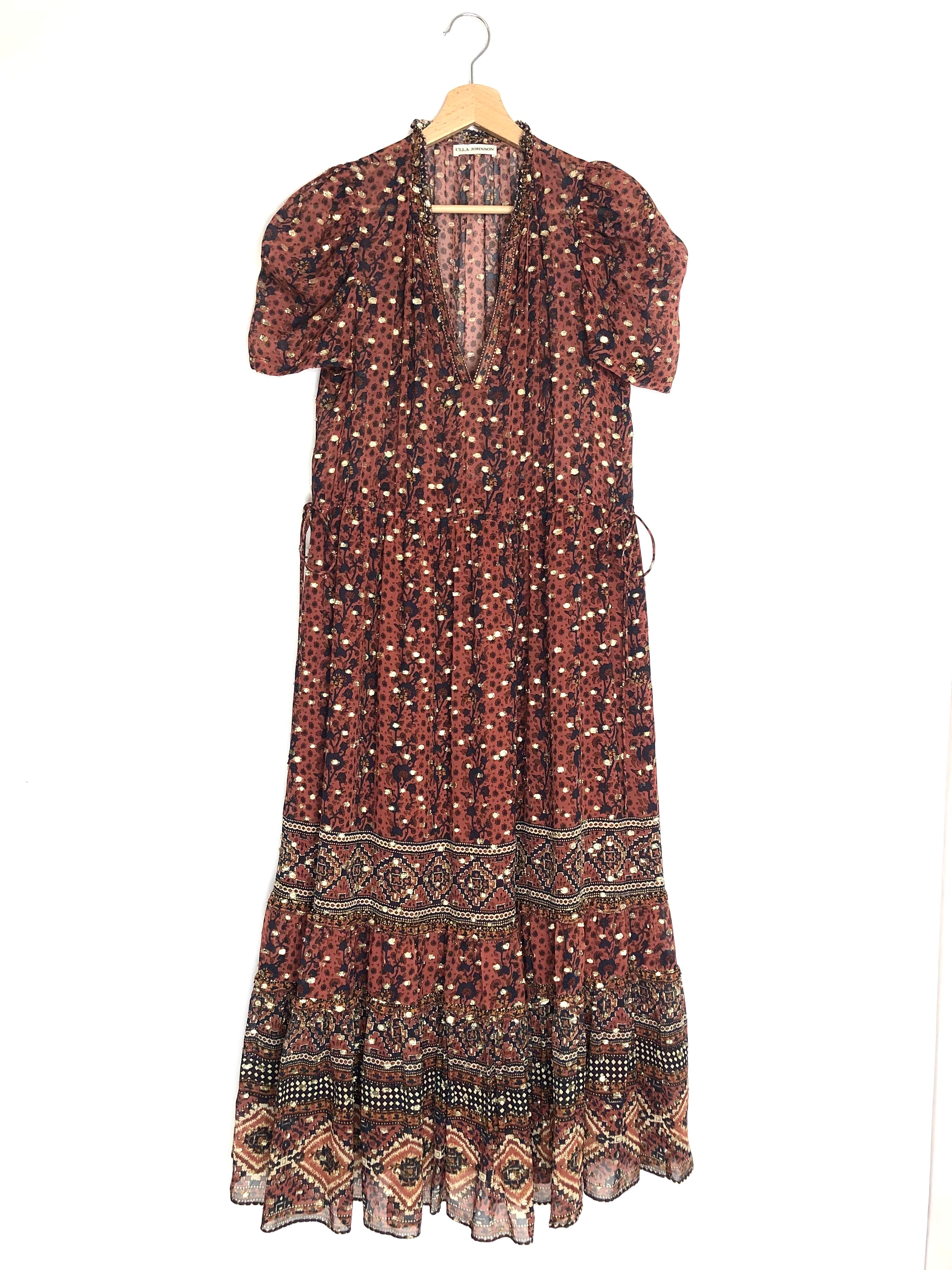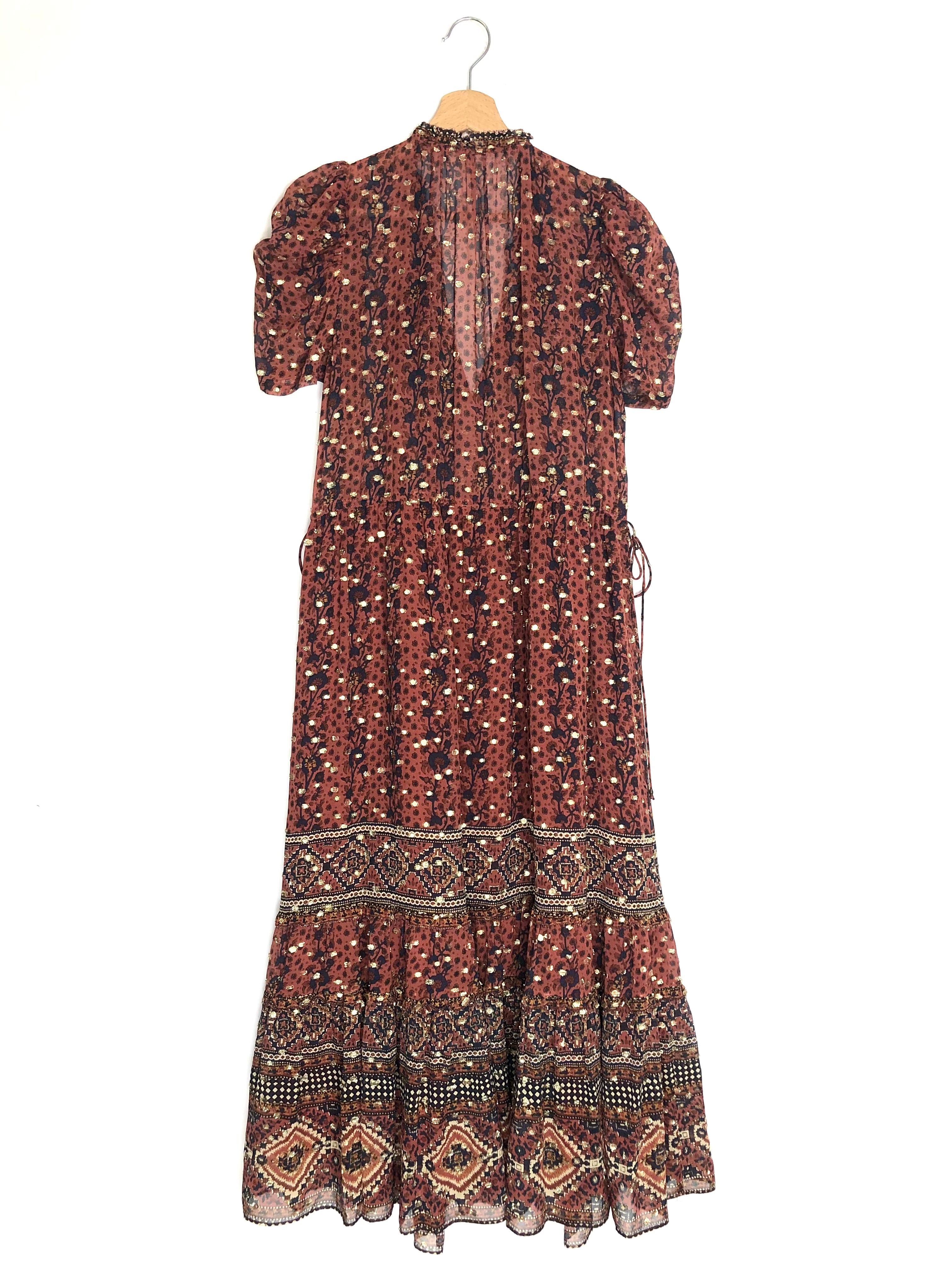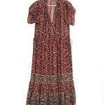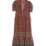Brick ALASTAIR Floral Printed Georgette Midi Dress / ULLA JOHNSON - Size US 6