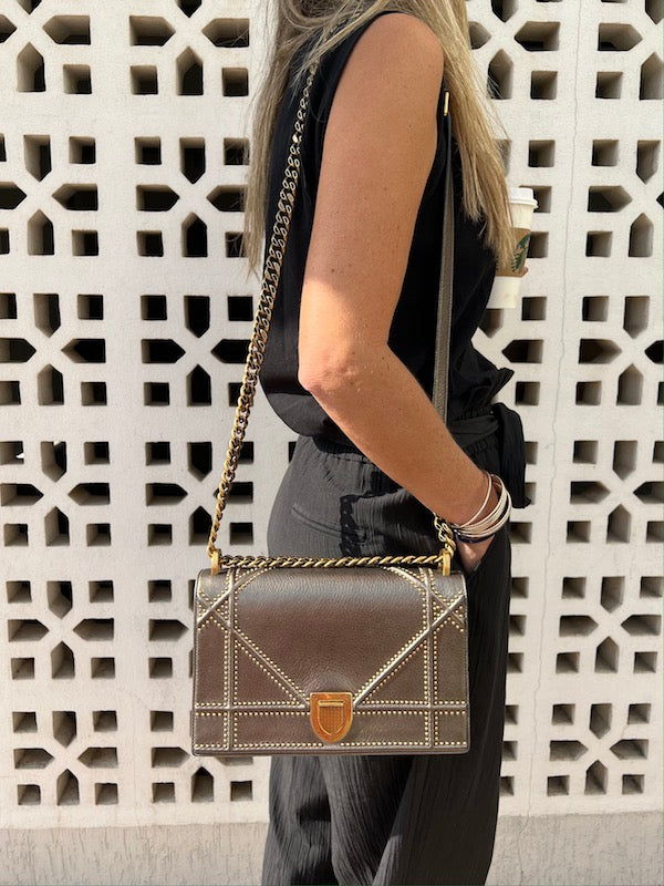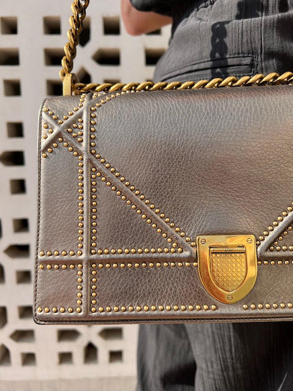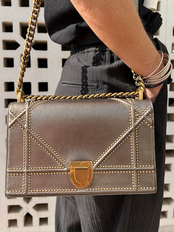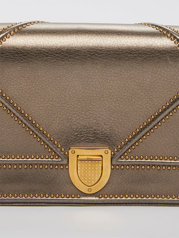 Bronze Metallic Studded Flap Shoulder Bag - model DIORAMA / CHRISTIAN DIOR