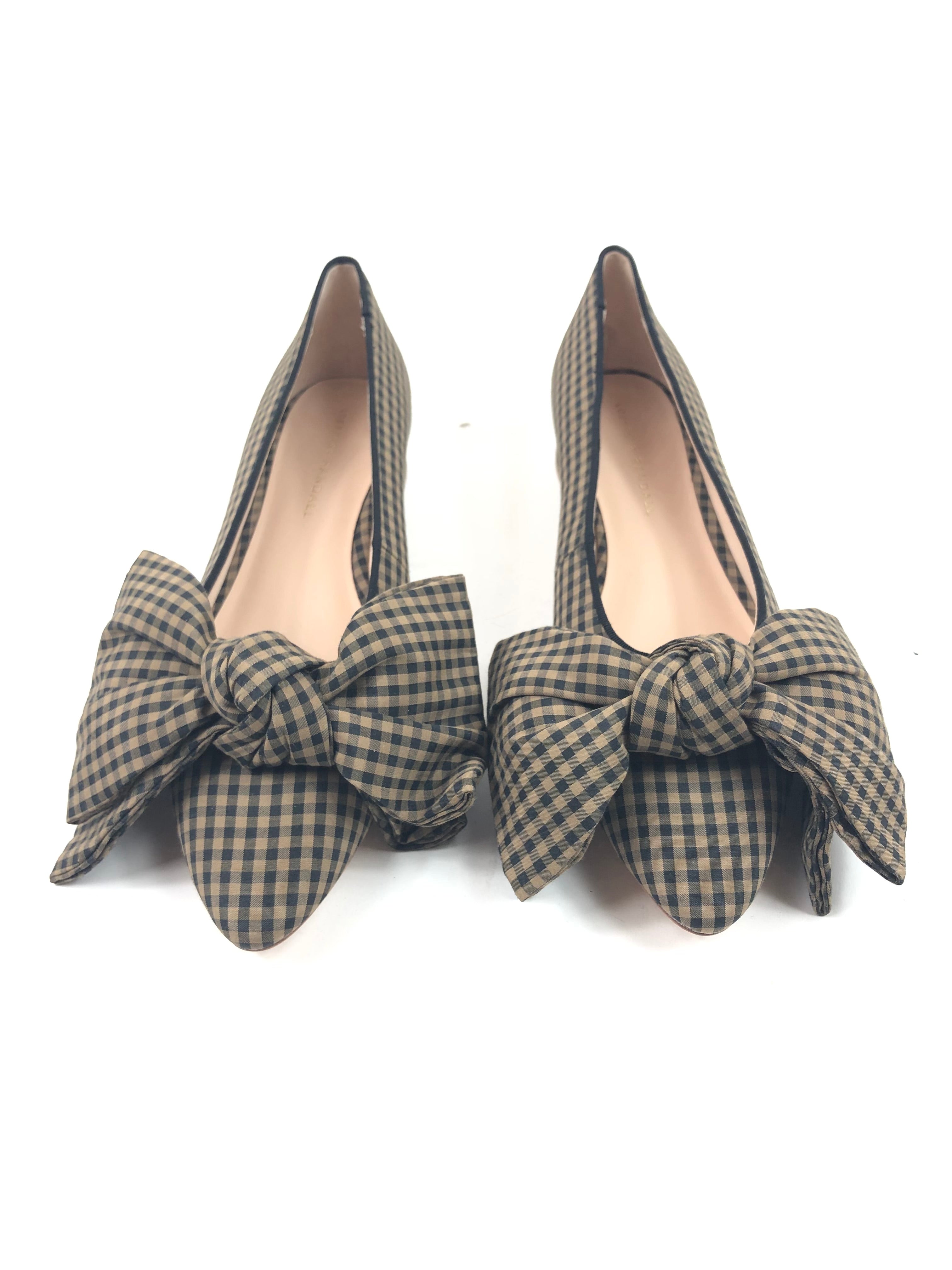 Brown and Black Check NOA Bow Pointed Toe Flats / LOEFFLER RANDALL - Size 38