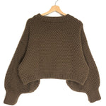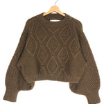 Brown Cable Hand Knit Wool Crop Sweater / I LOVE MR MITTENS - Size XS/S