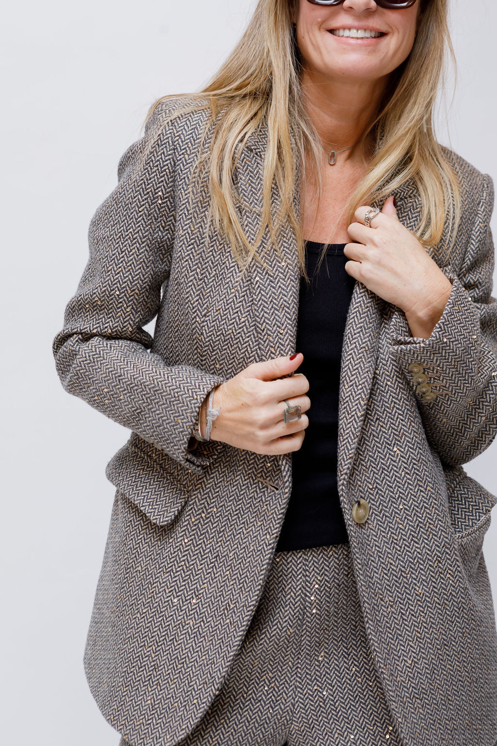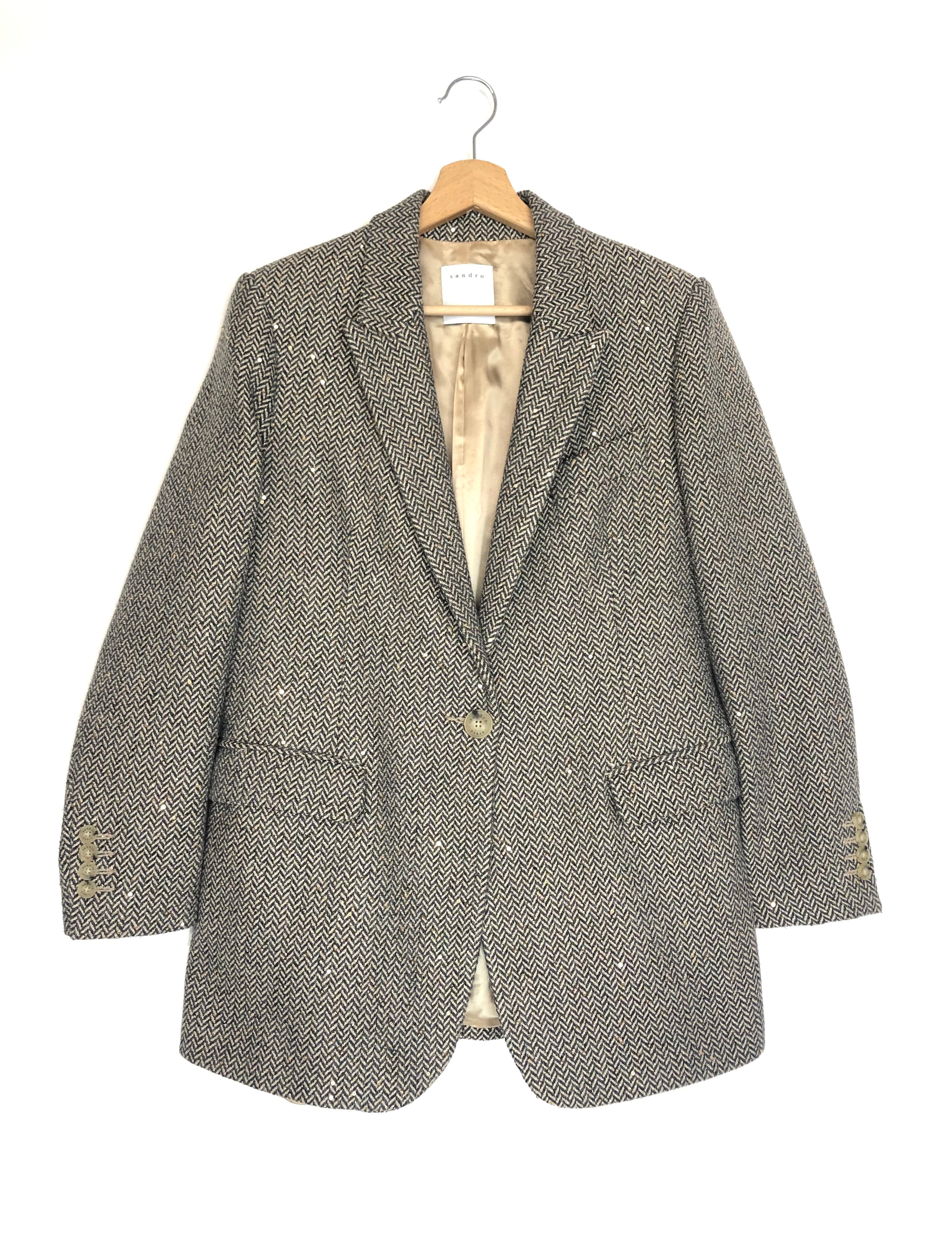 Brown Herringbone Golden Sequin Suit Jacket / SANDRO - Size 36