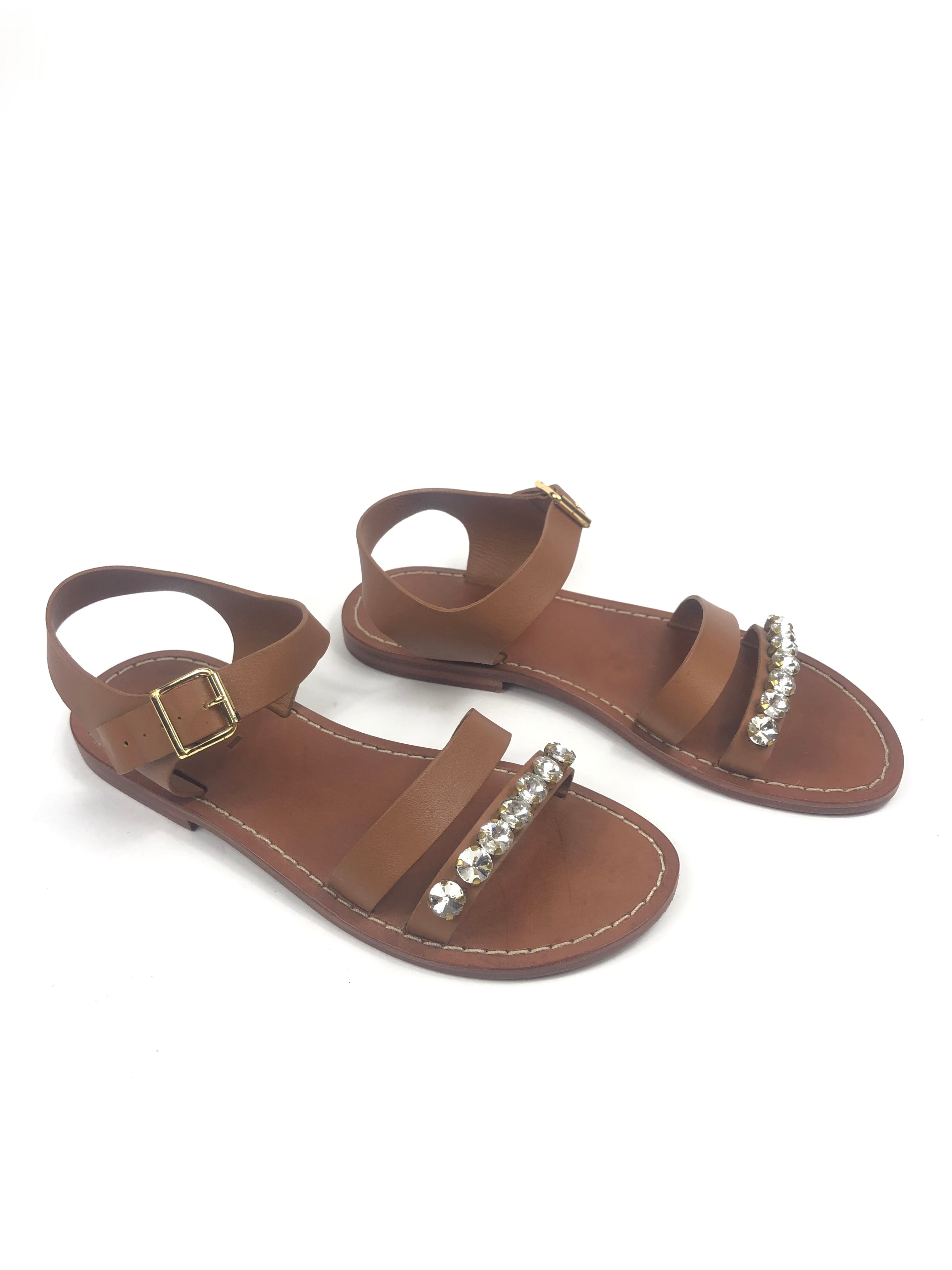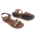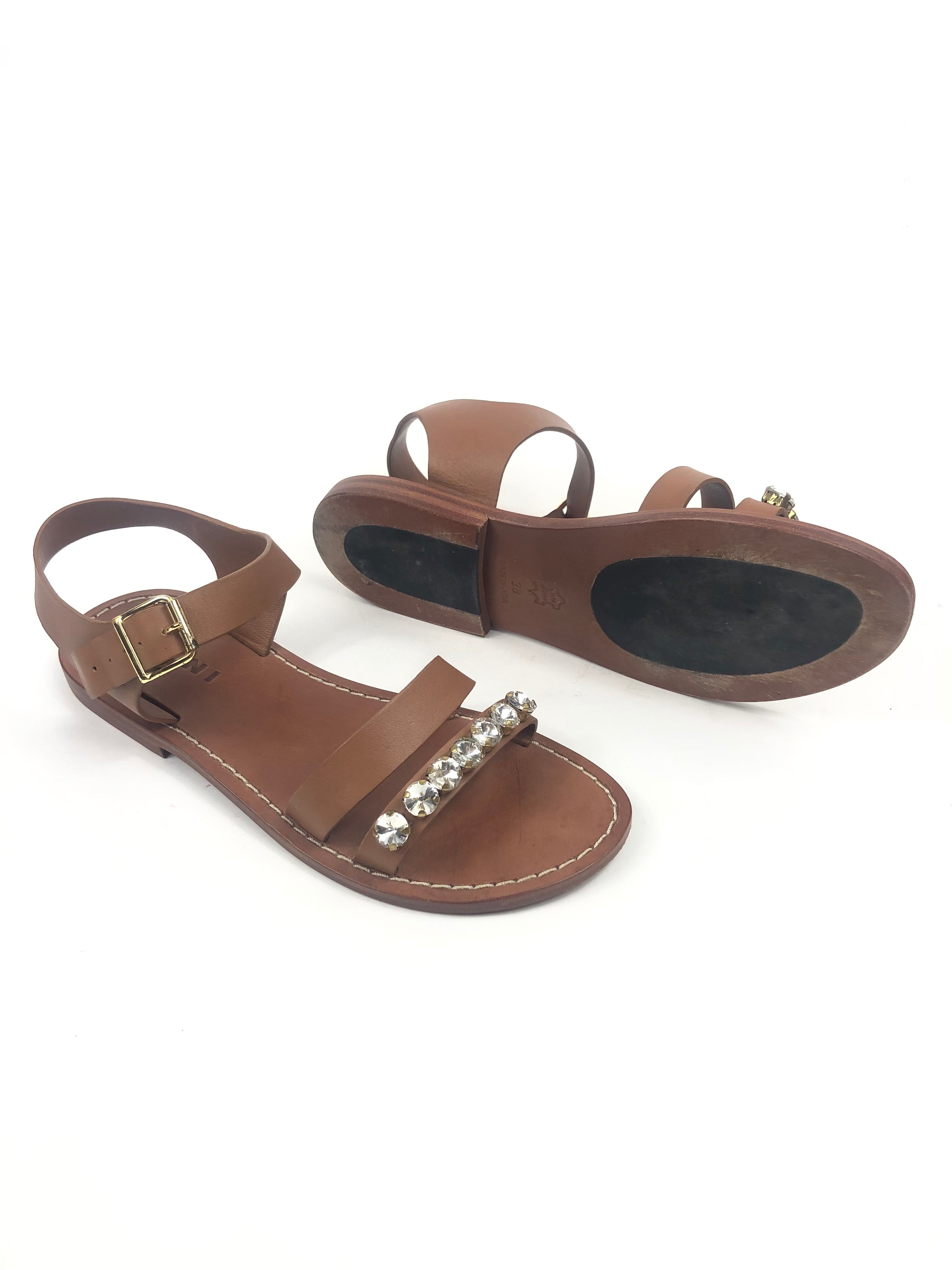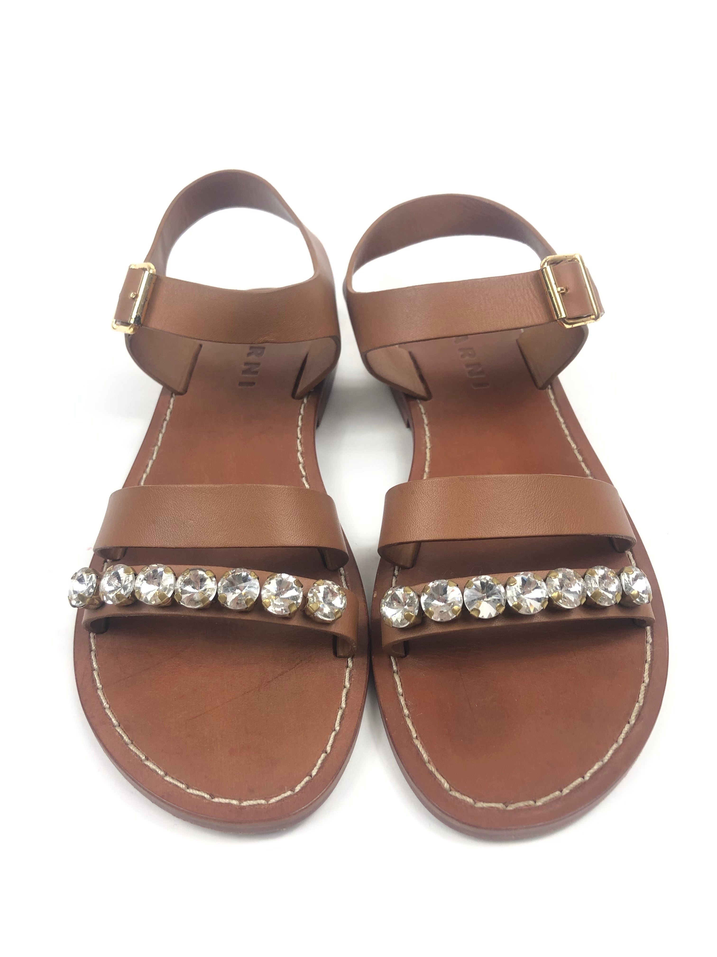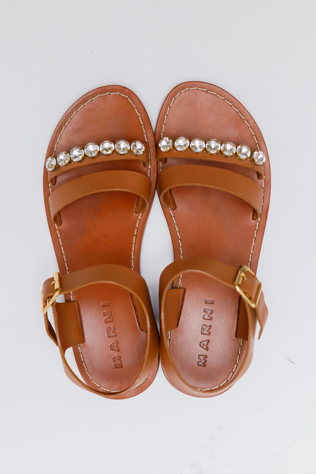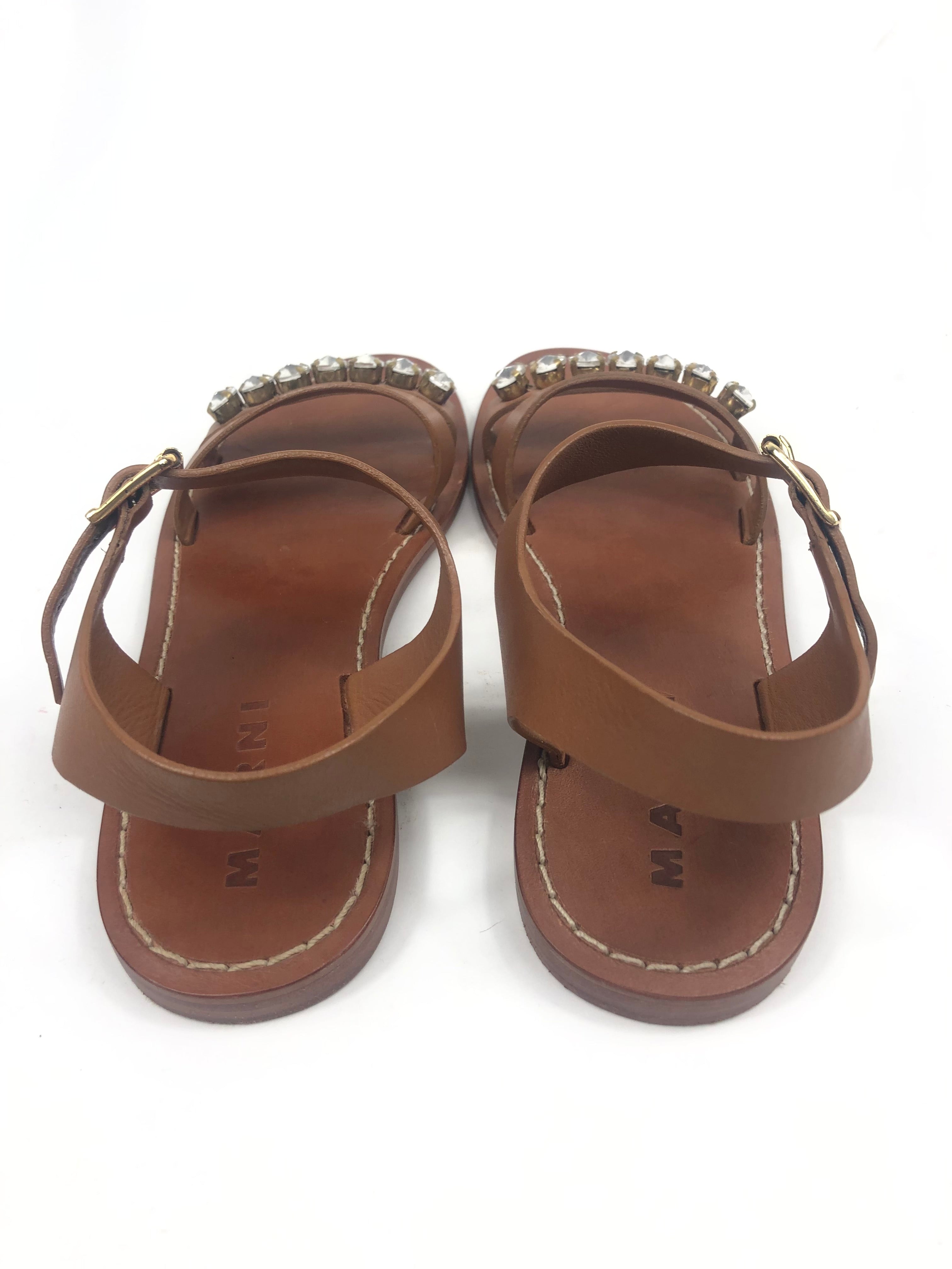 Brown Leather Crystal-embellished Ankle Strap Sandals / MARNI - Size 38
