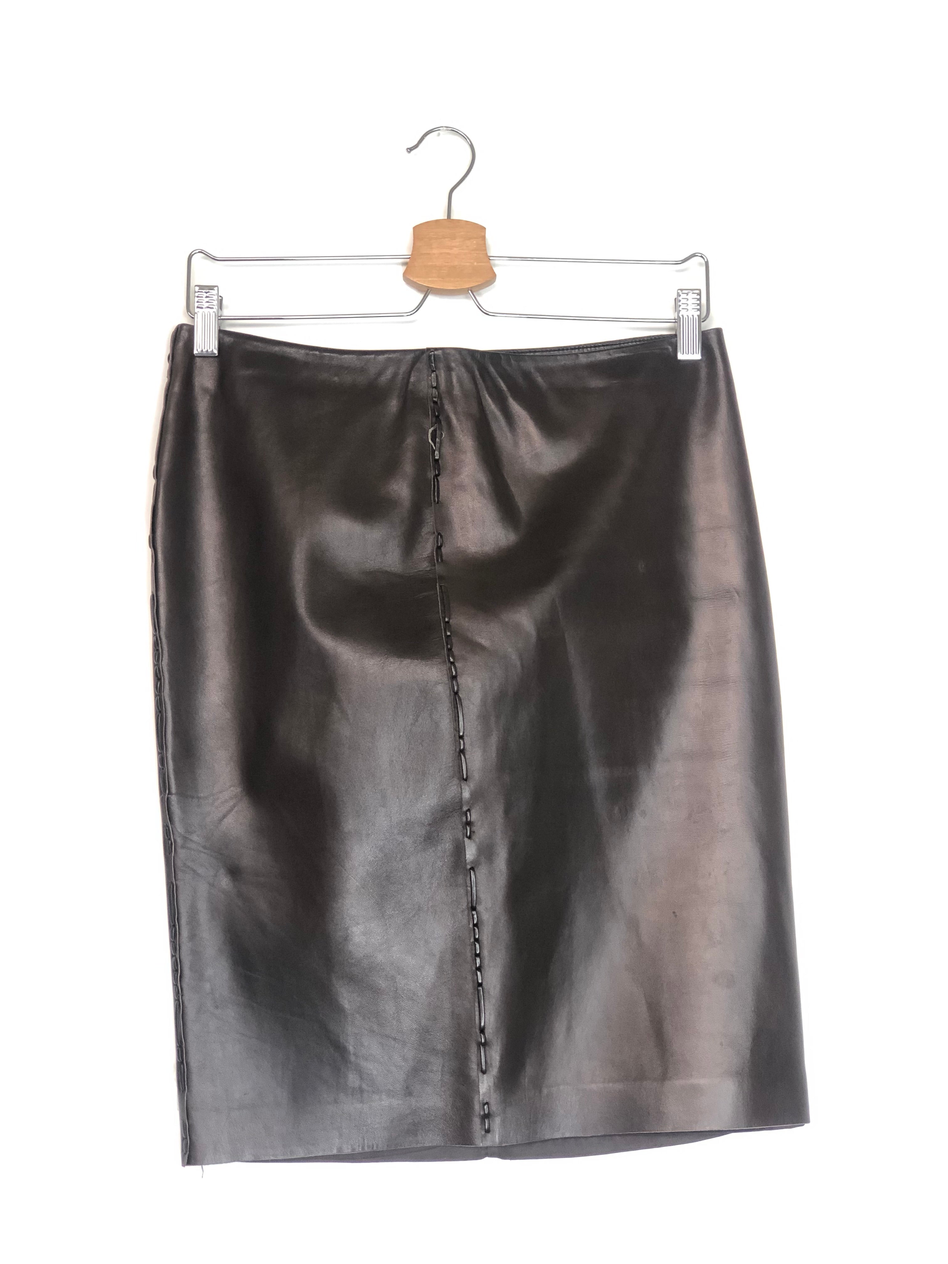 Brown Leather Mid-length Skirt / GUCCI - Size 40