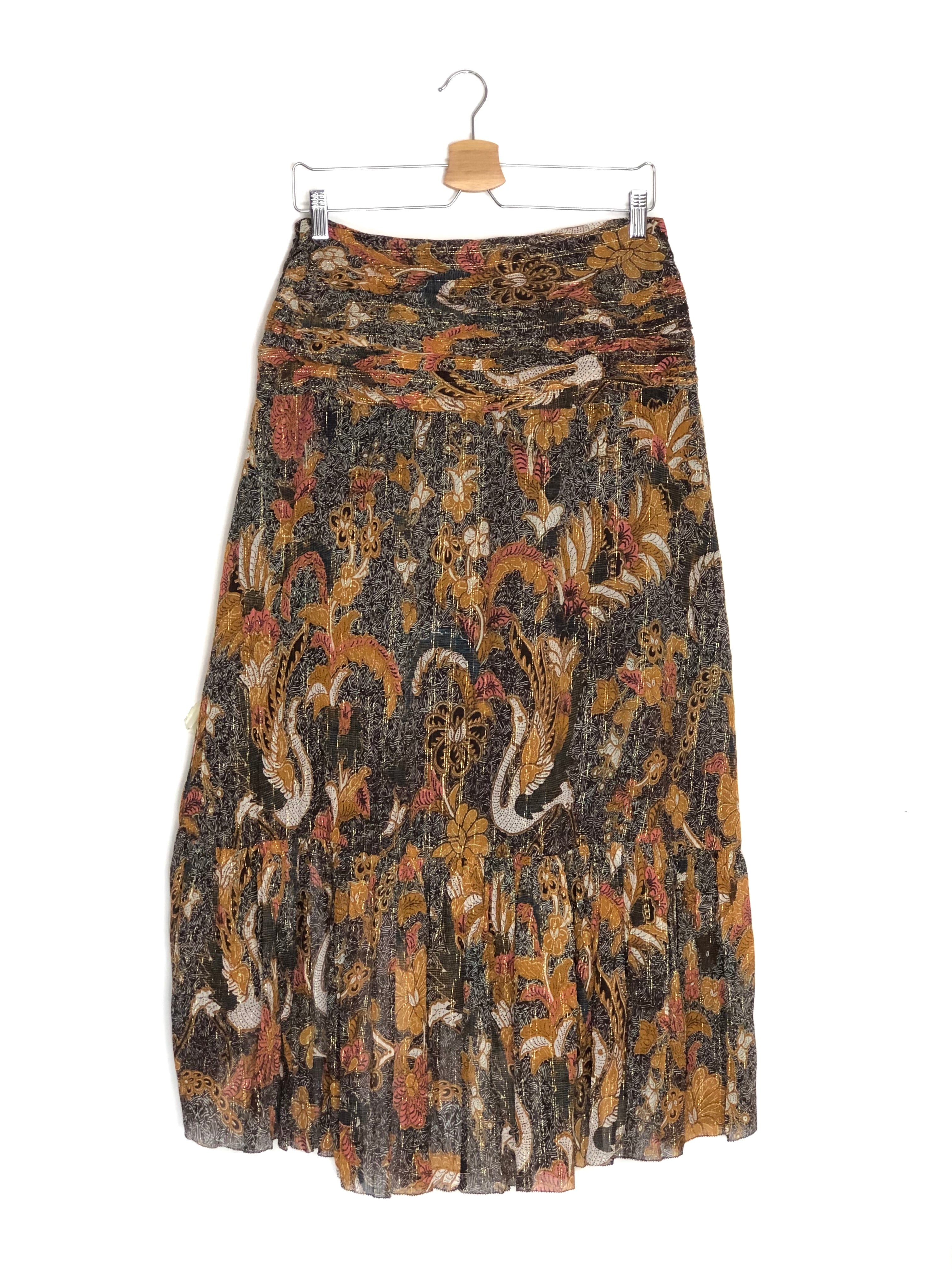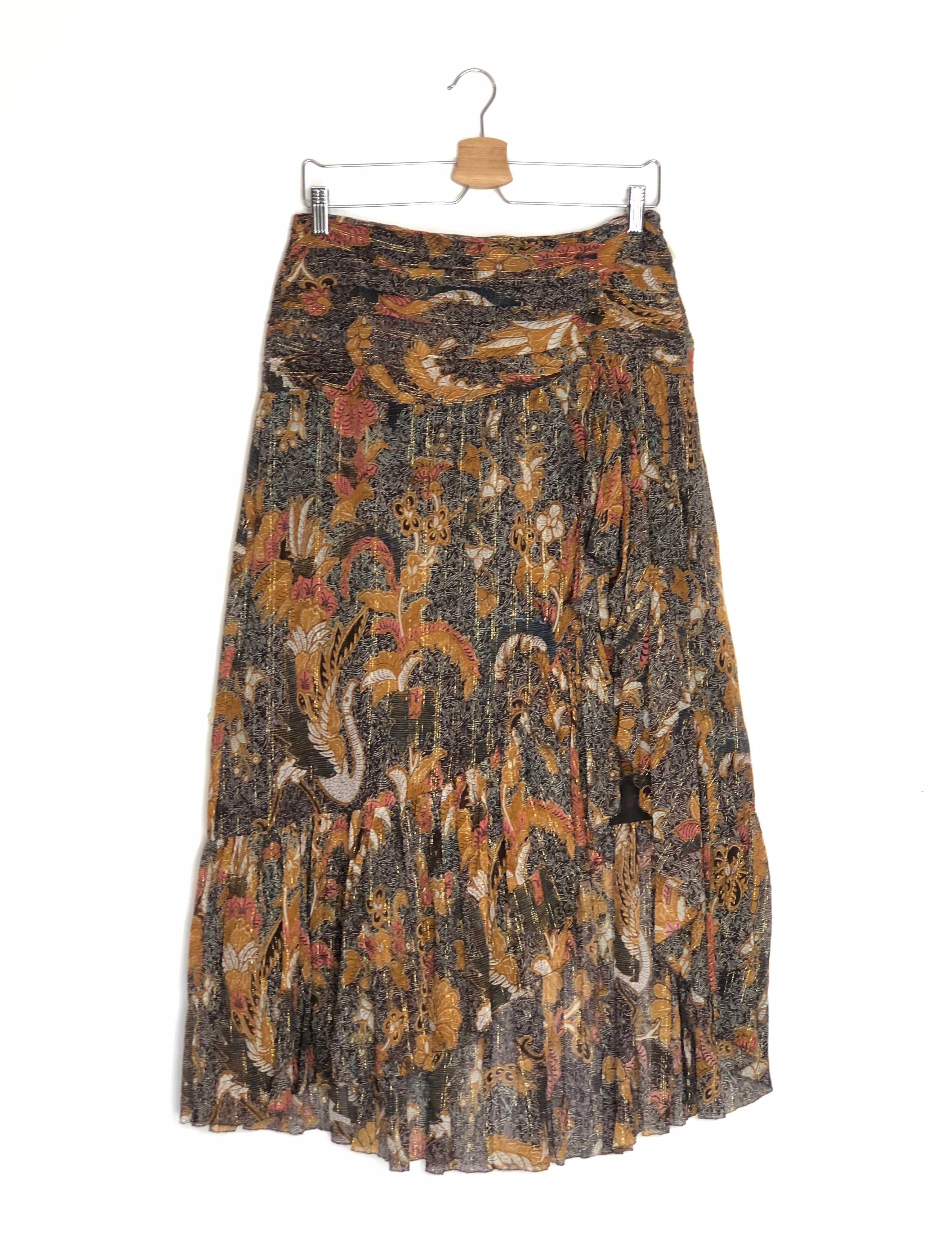 Brown Metallic Floral Pattern Side-slit Maxi Skirt / ULLA JOHNSON - Size US 8