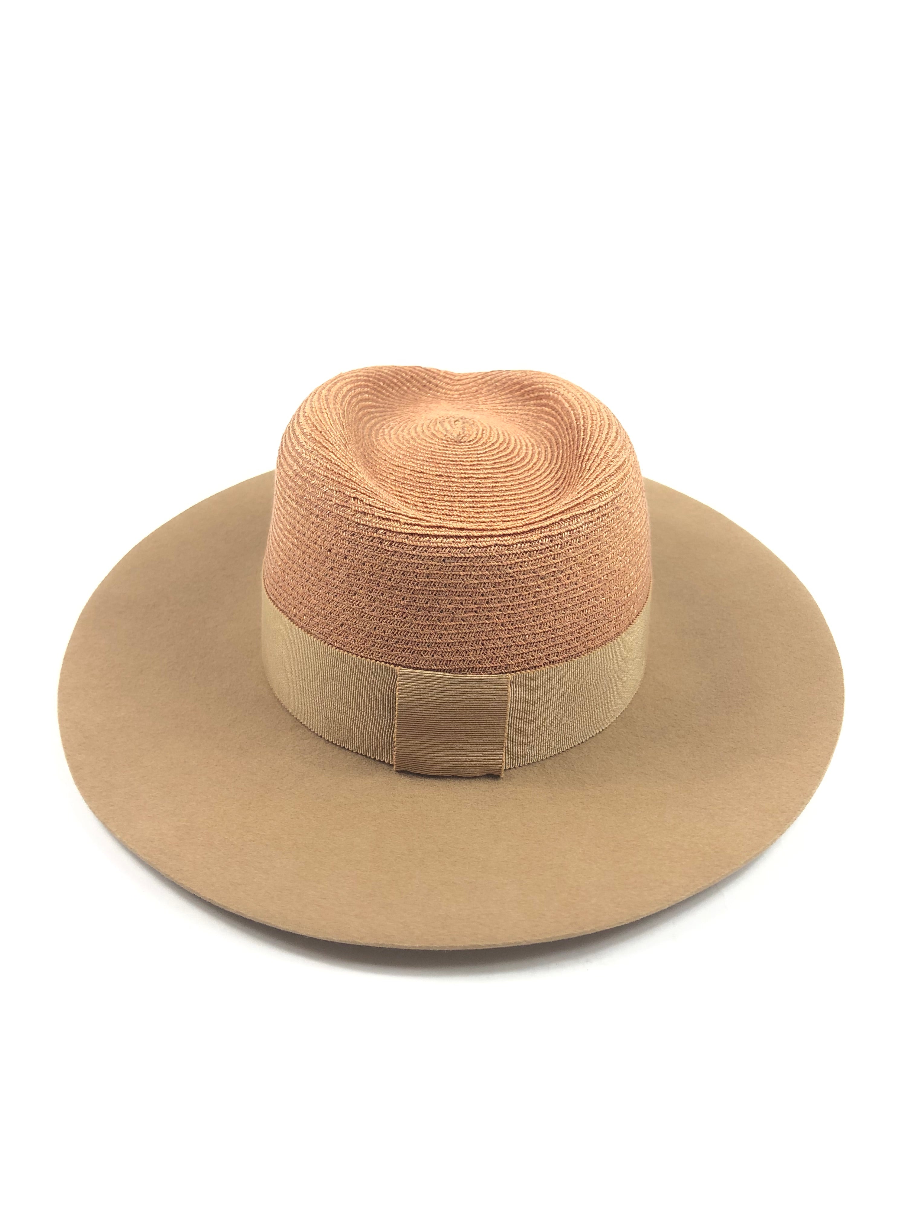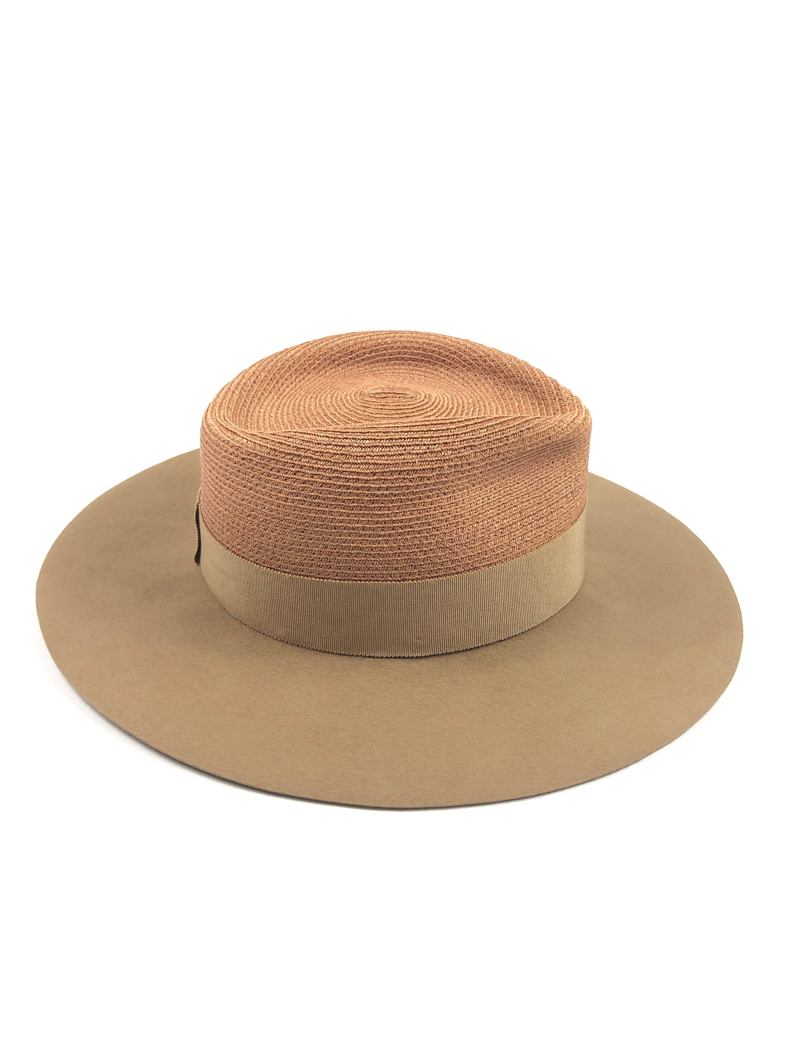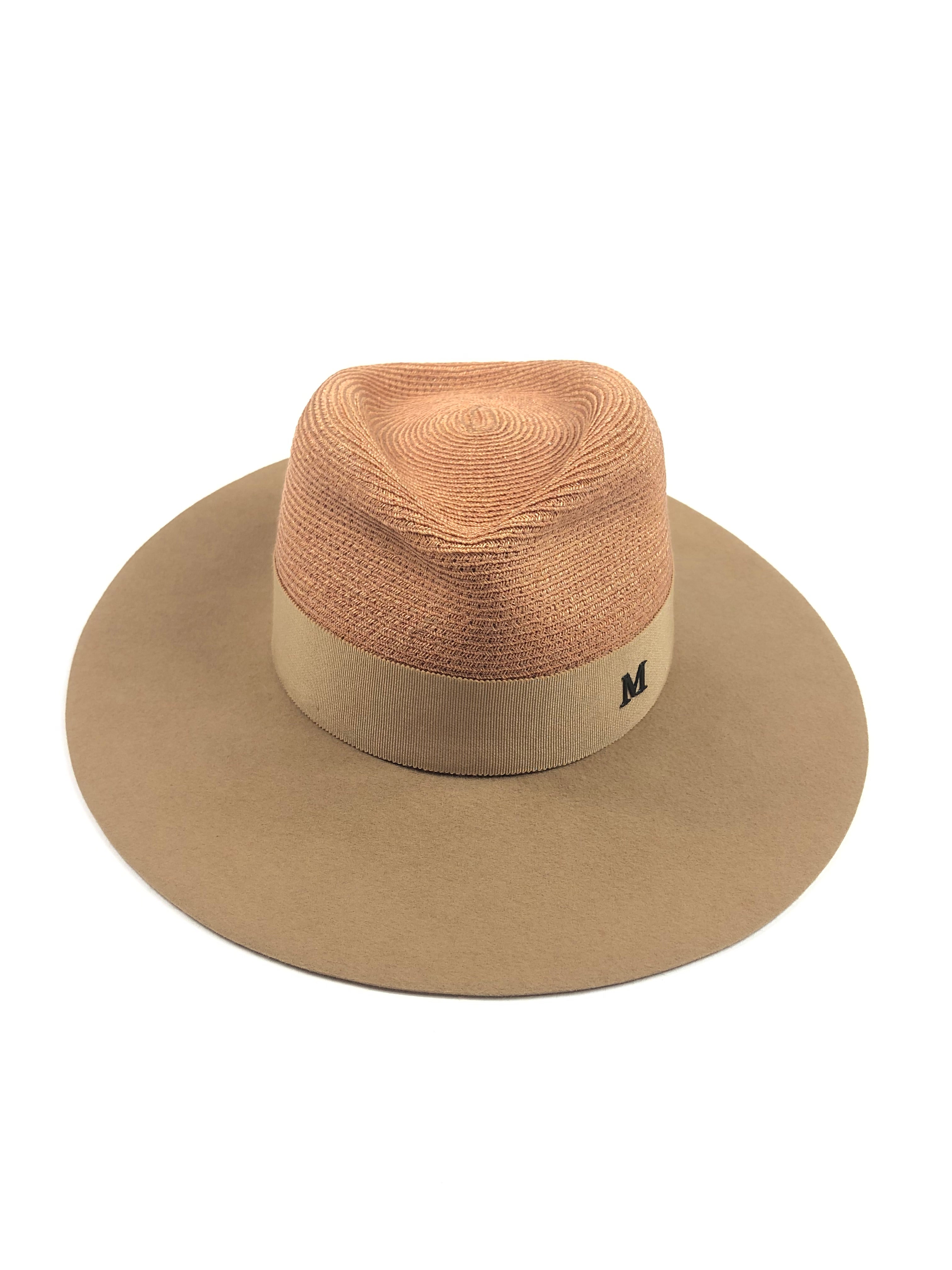 Brown Raffia and Felt Fedora Hat / MAISON MICHEL - Size M