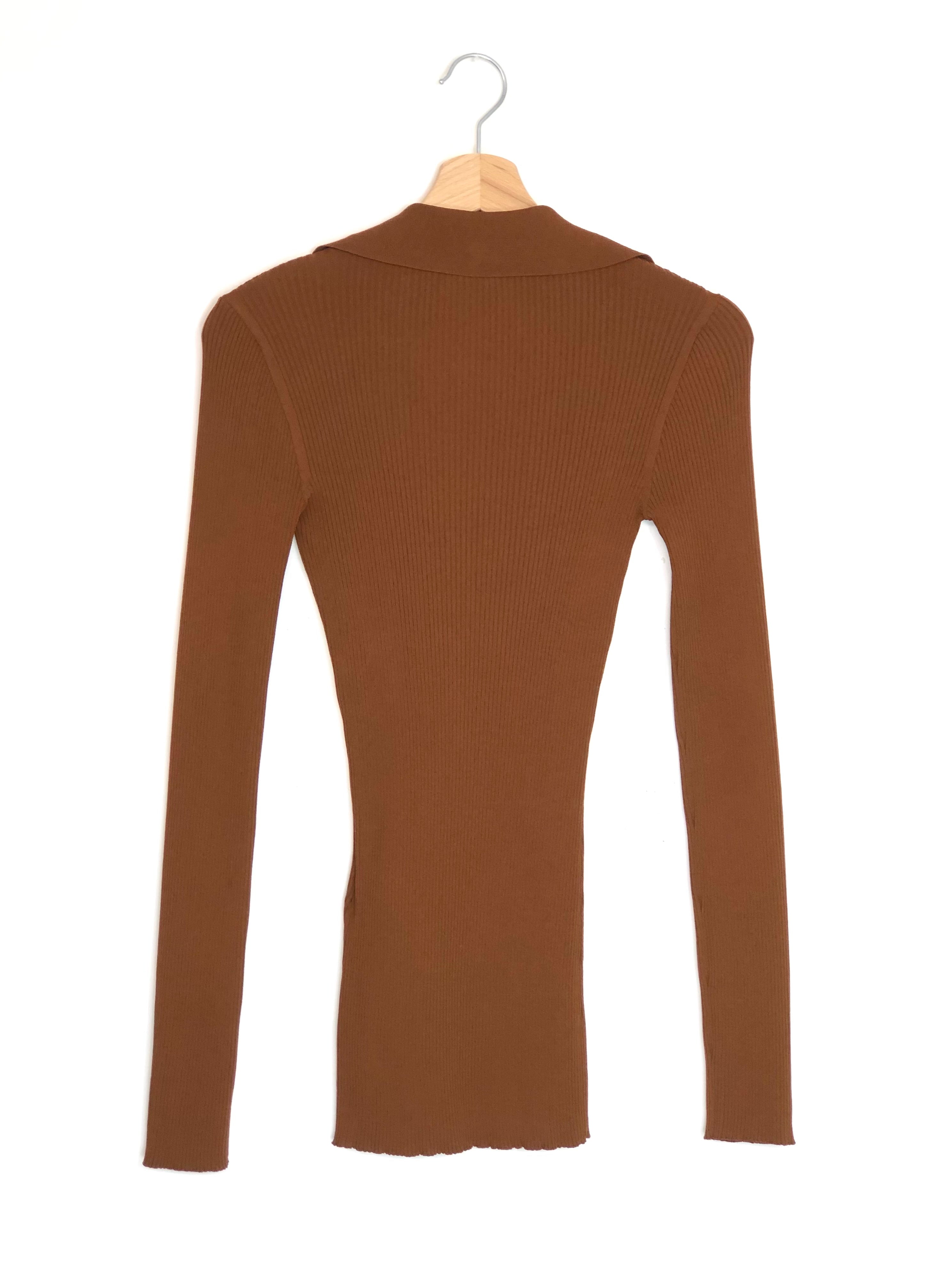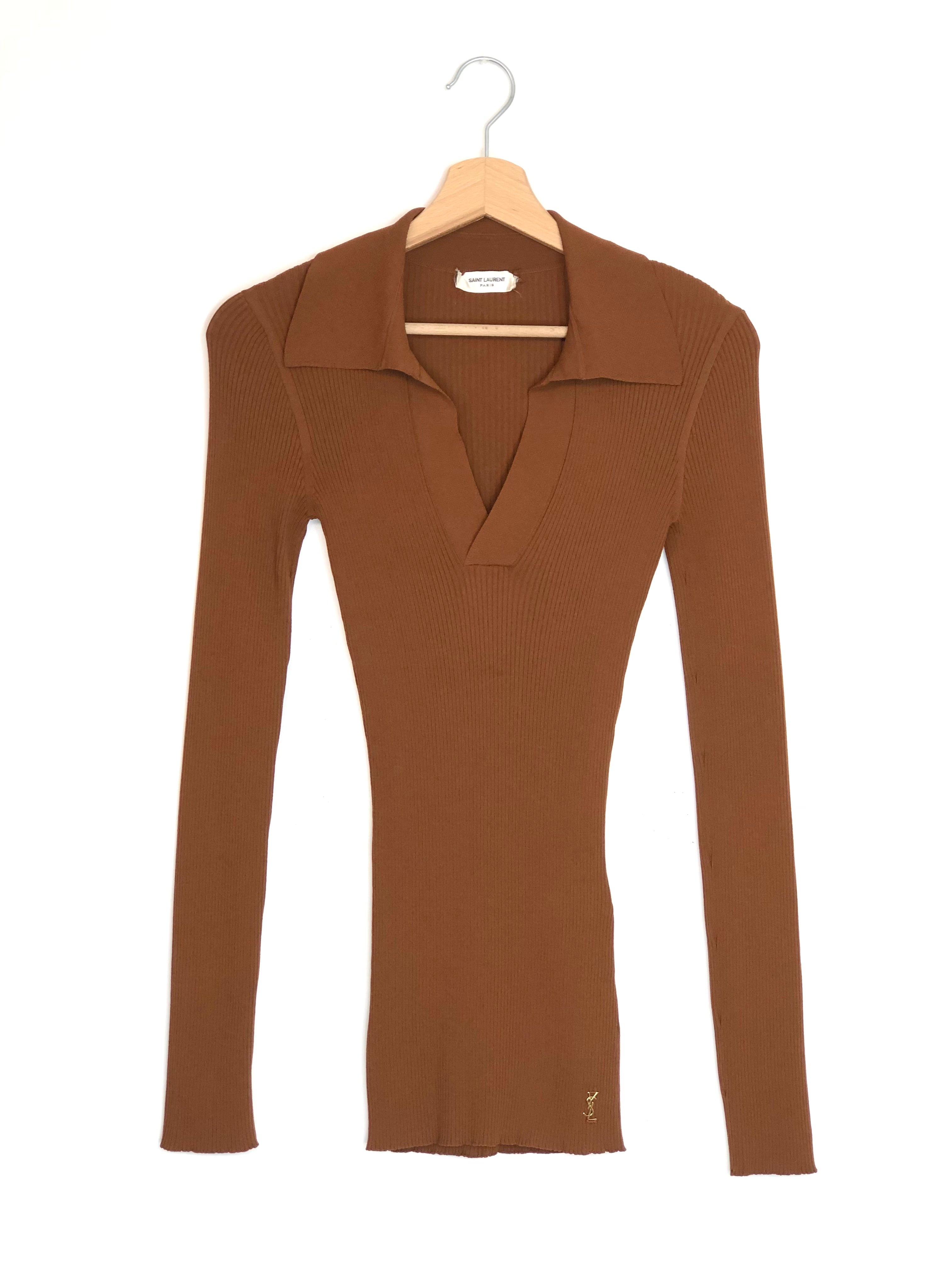 Brown V-neck Ribbed-knit Embellished Top / SAINT LAURENT - Size M