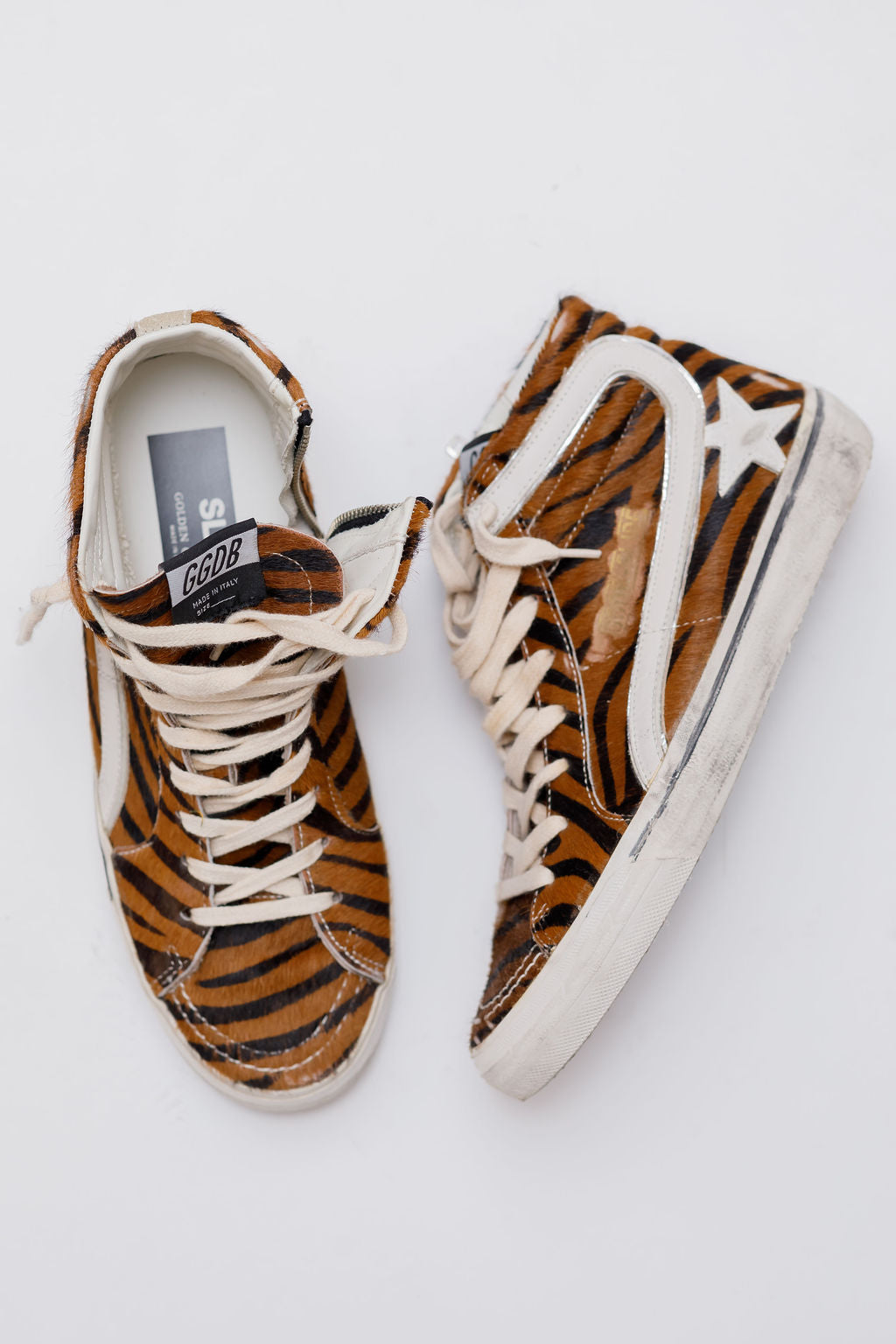 Brown Zebra-print SLIDE High-top Sneakers / GOLDEN GOOSE - Size 39