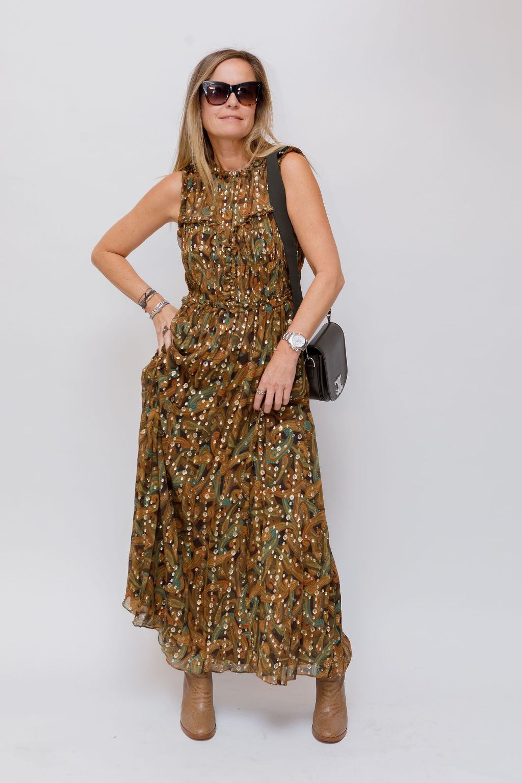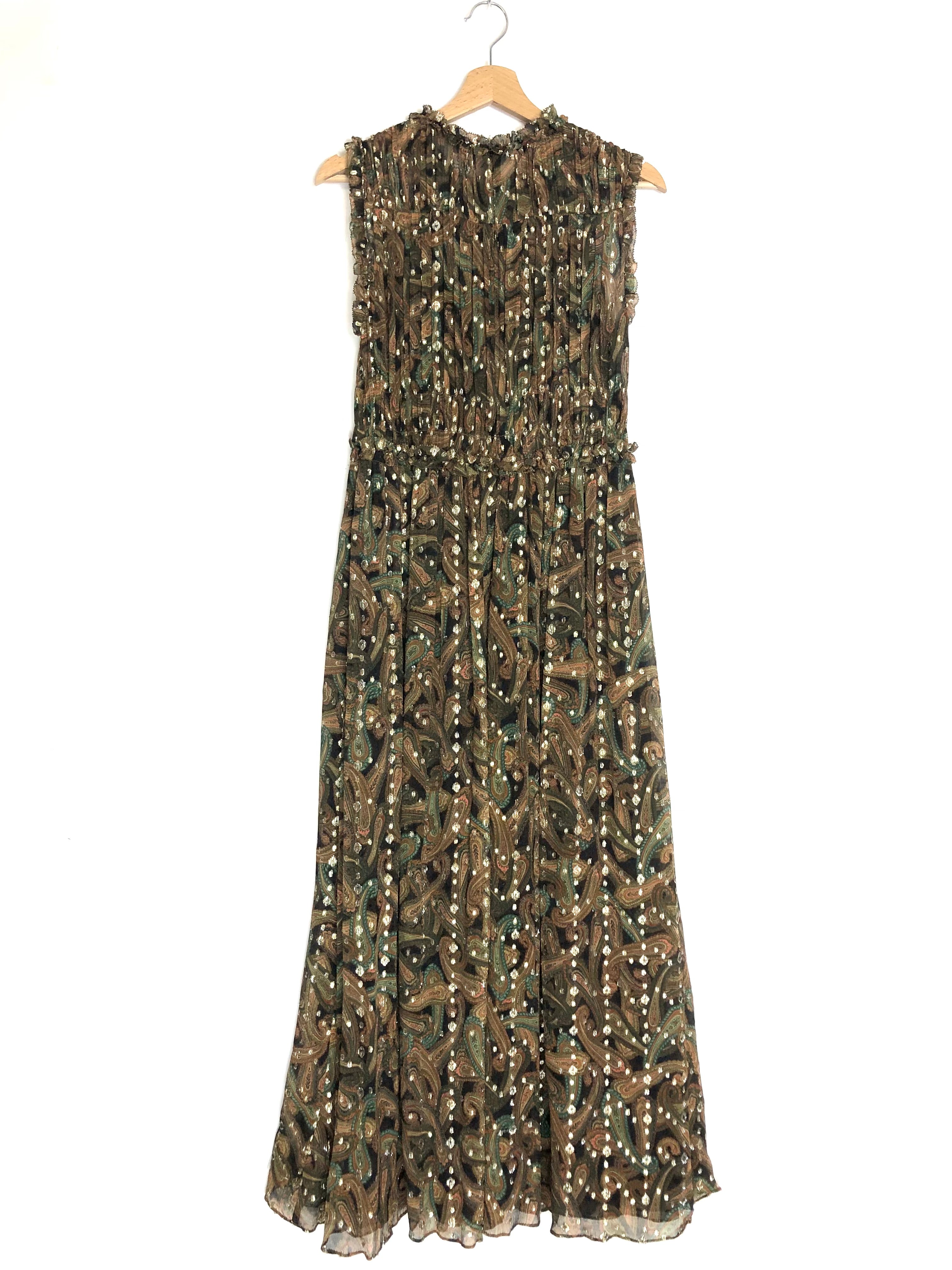 Brown/Khaki KASIA Paisley Silk-blend Sleeveless Midi Dress / ULLA JOHNSON - Size US 4