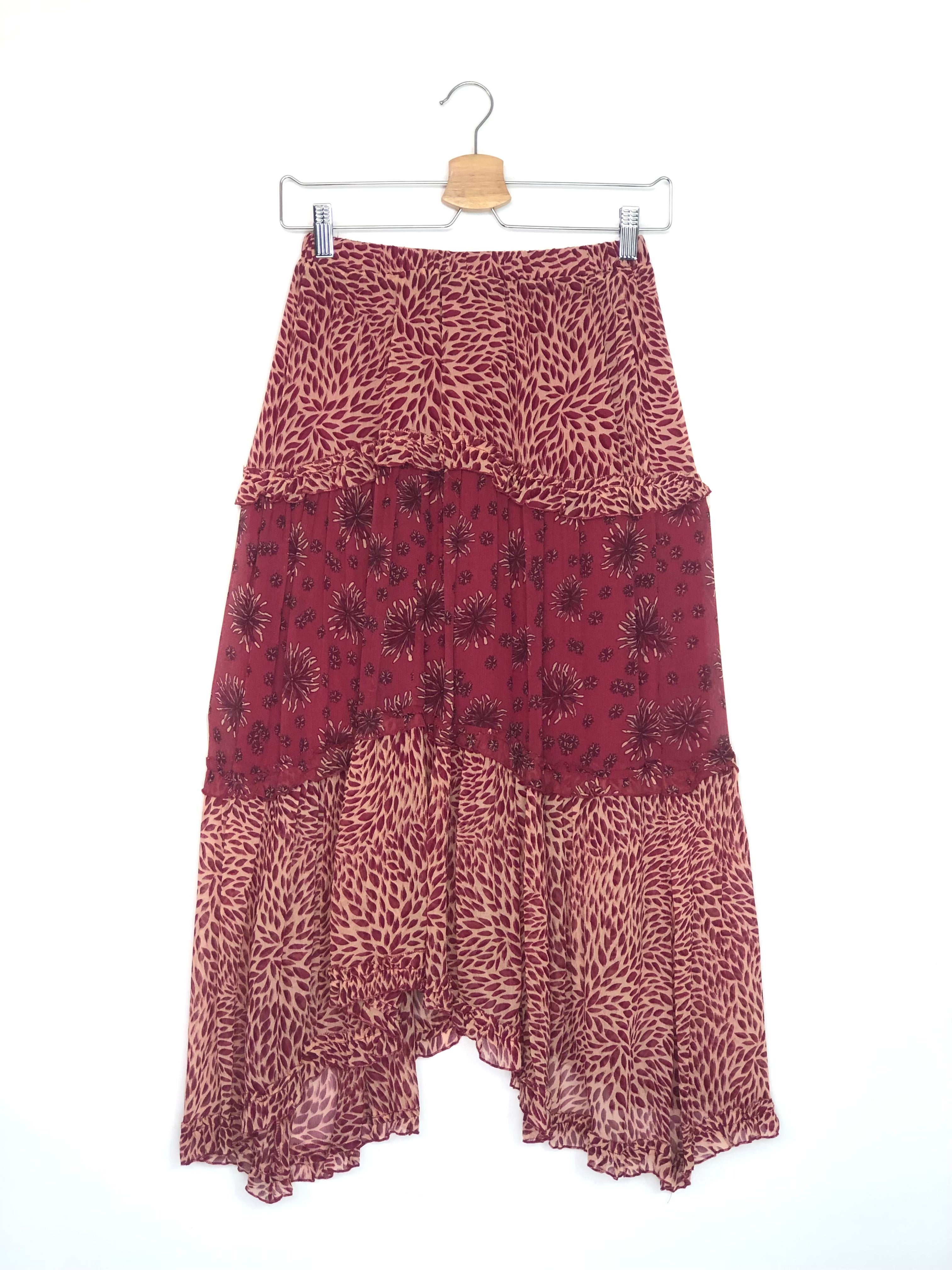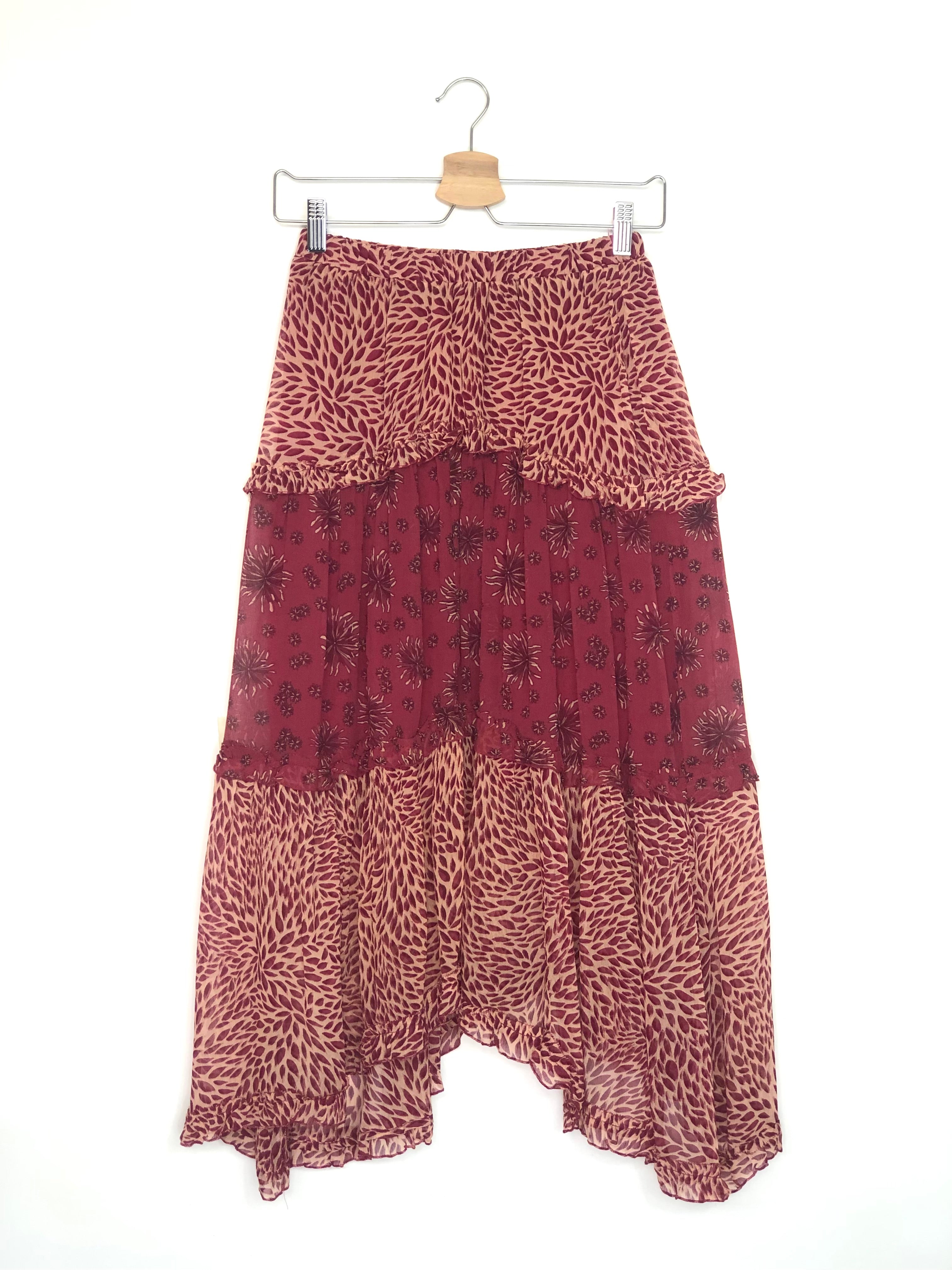 Burgundy GAPI Asymmetric Printed Midi Skirt / BA&SH - Size 0