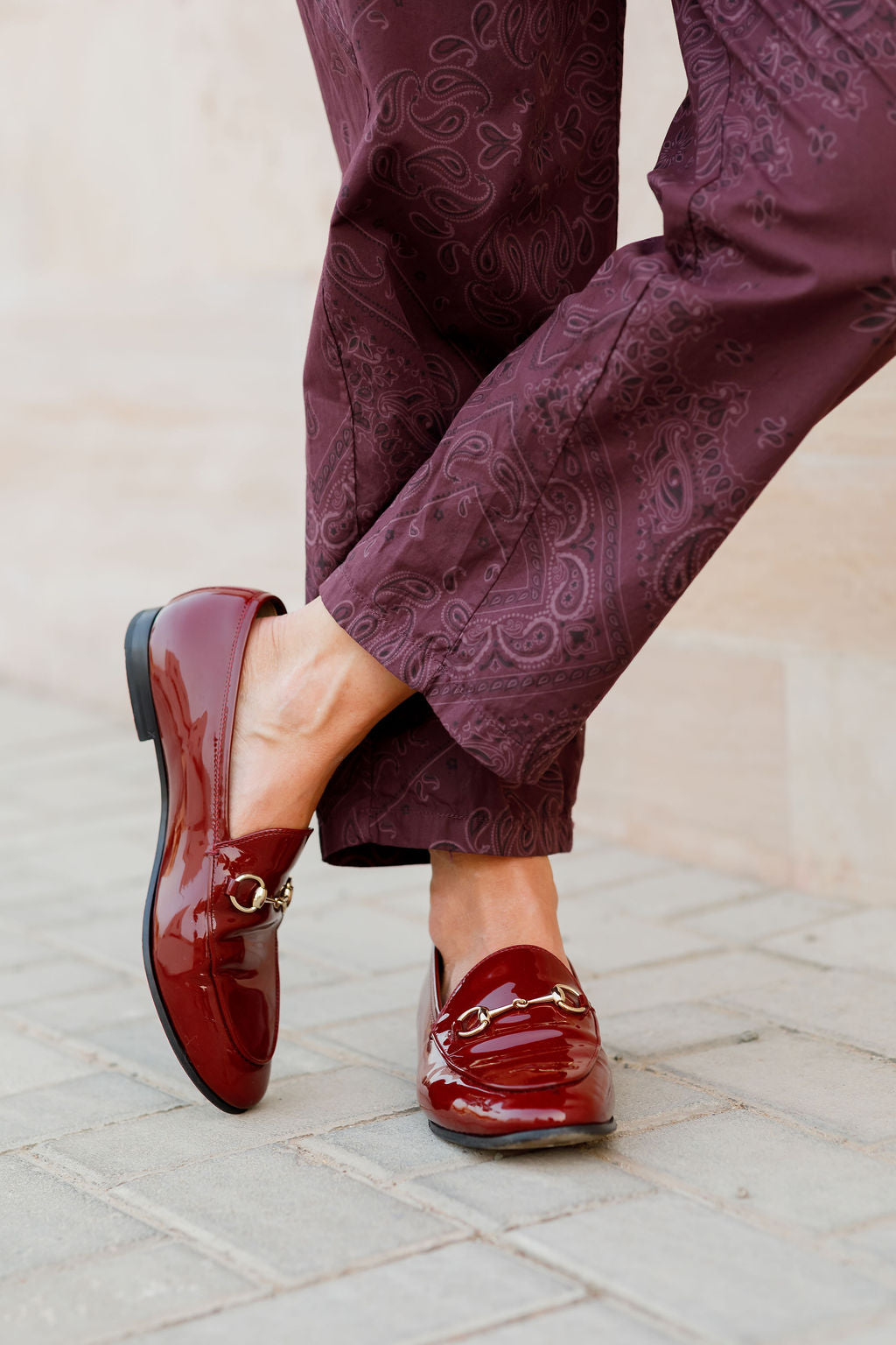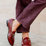 Burgundy JORDAAN Horsebit-detailed Patent-leather Loafers / GUCCI - Size 39