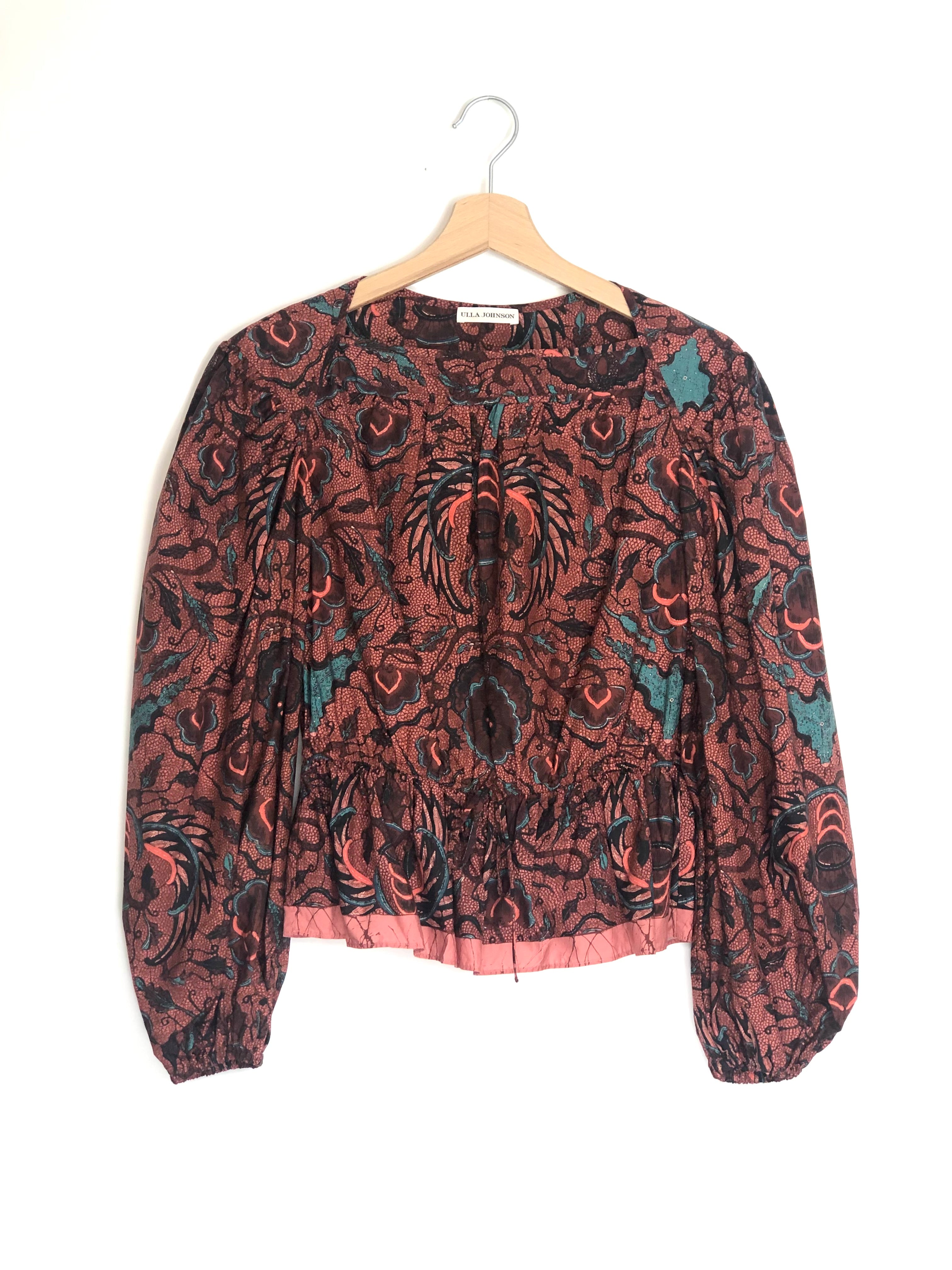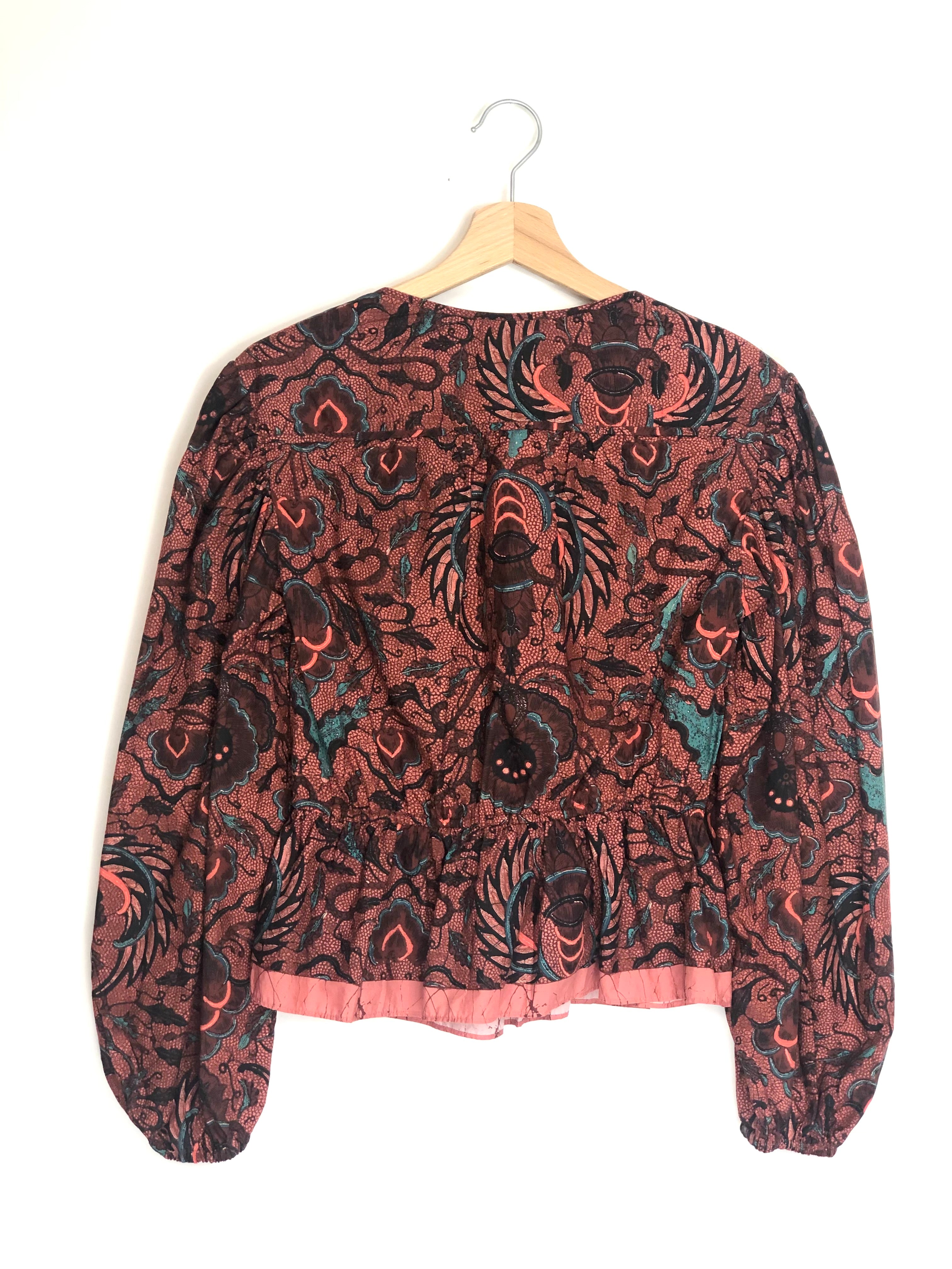 Burgundy MIREYA Batik Poplin Long Sleeves Blouse / ULLA JOHNSON - Size US 4