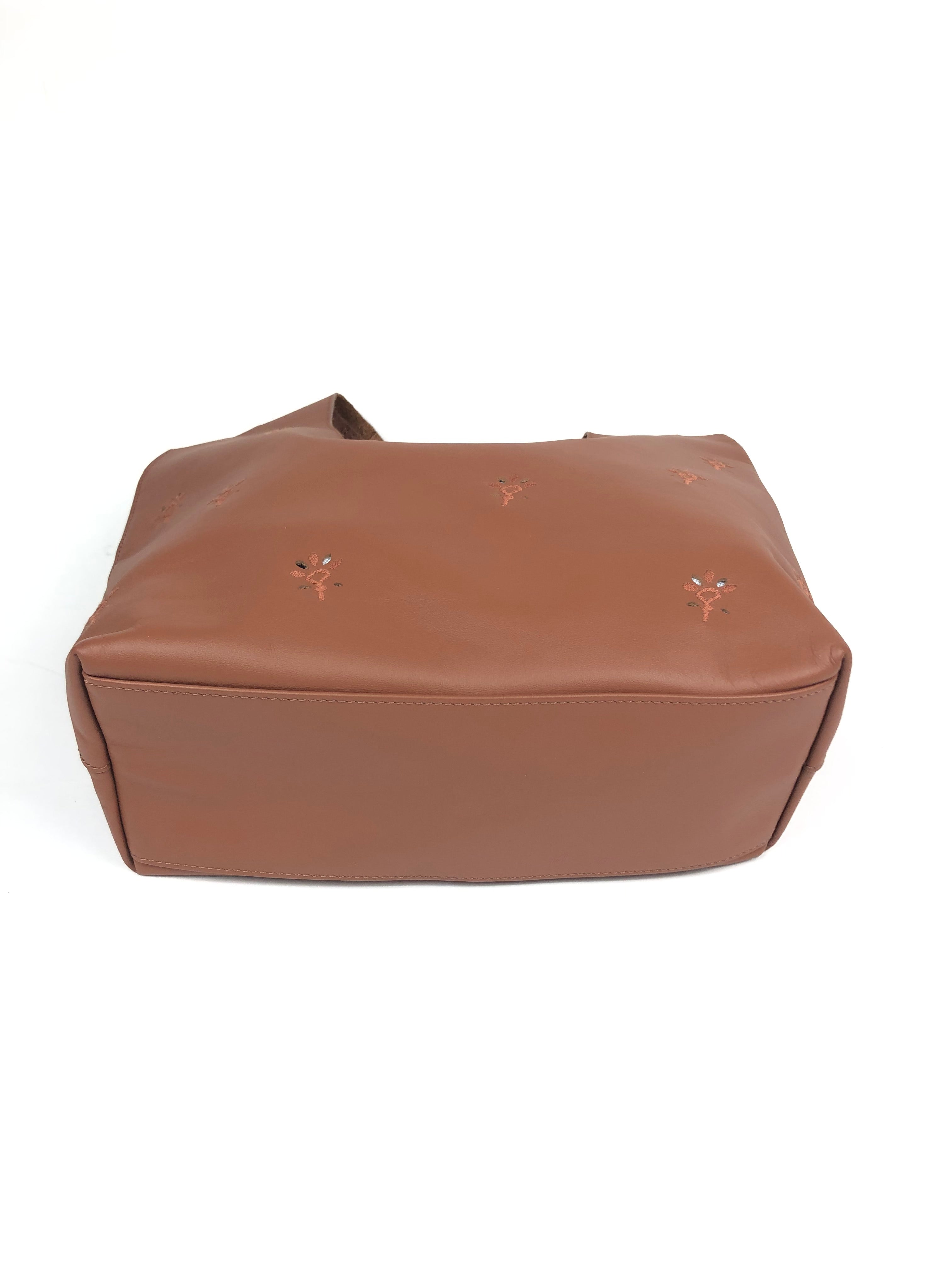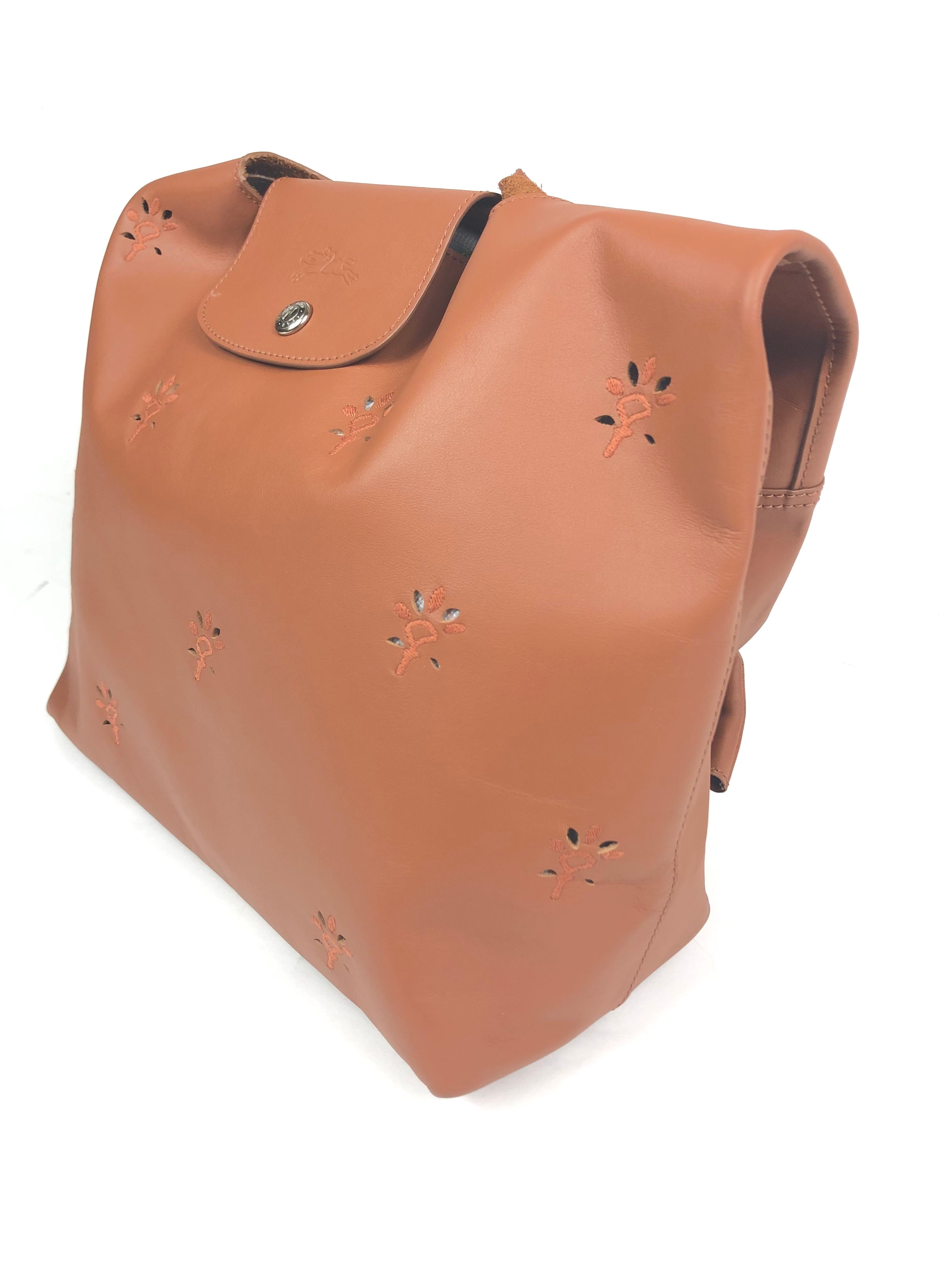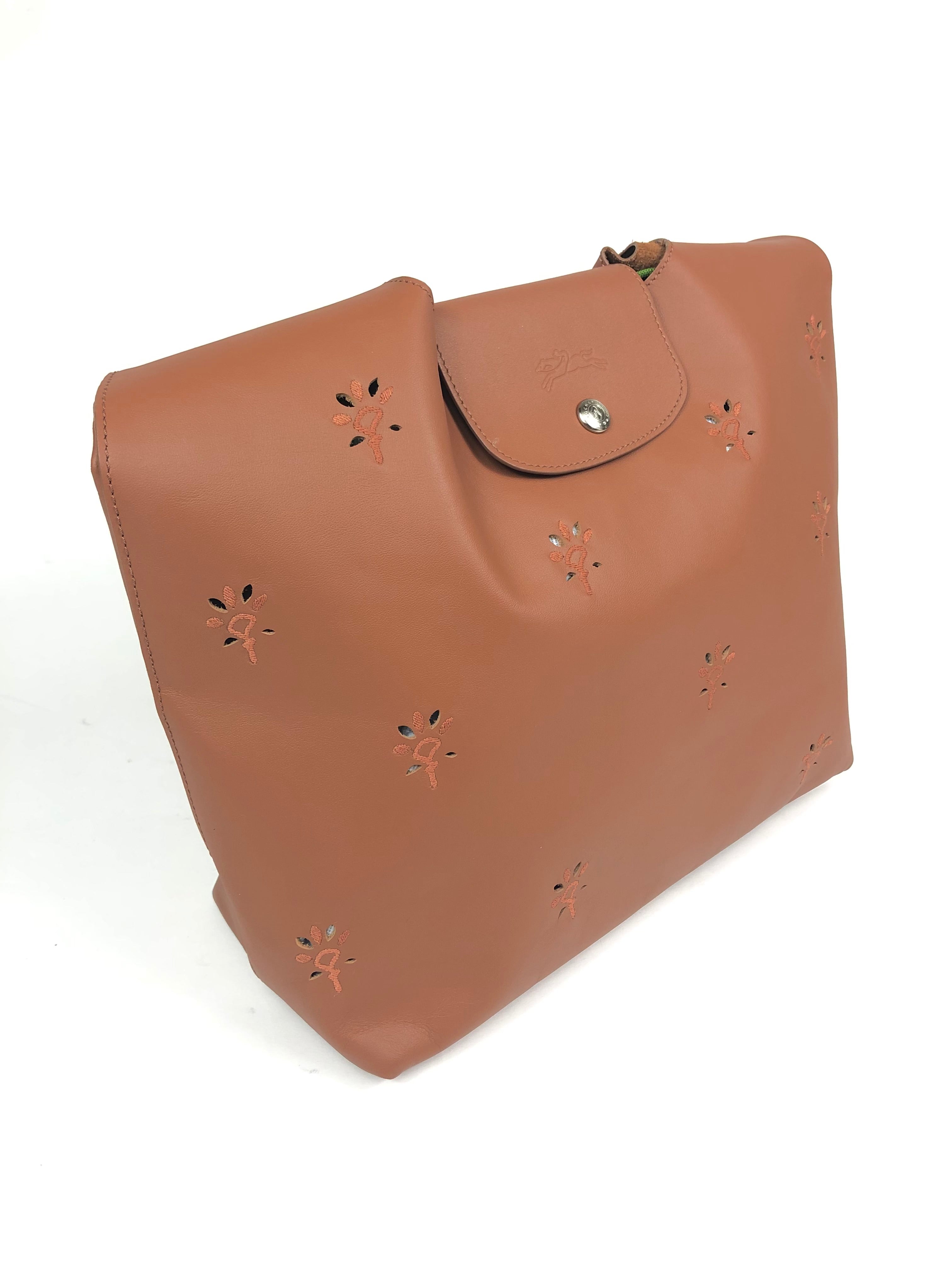 Cognac LE PLIAGE EXTRA Broderie Anglaise Leather Shoulder Bag / LONGCHAMP