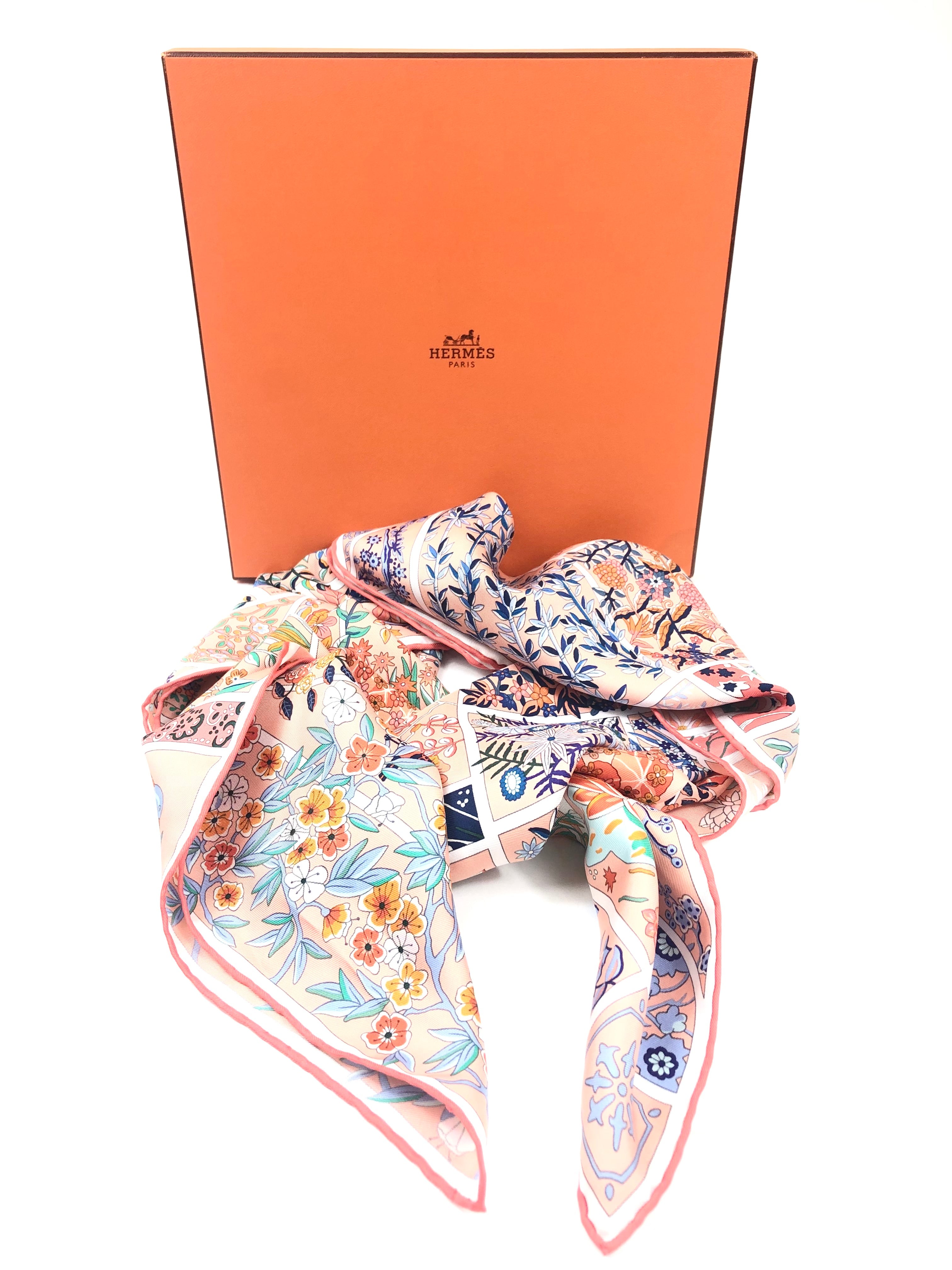 Scarf in silk twill with hand rolled edges (100% silk) This essential Hermès accessory complements any outfit. It can be worn many ways - around your neck, as a top, at the waist or as a headscarf!