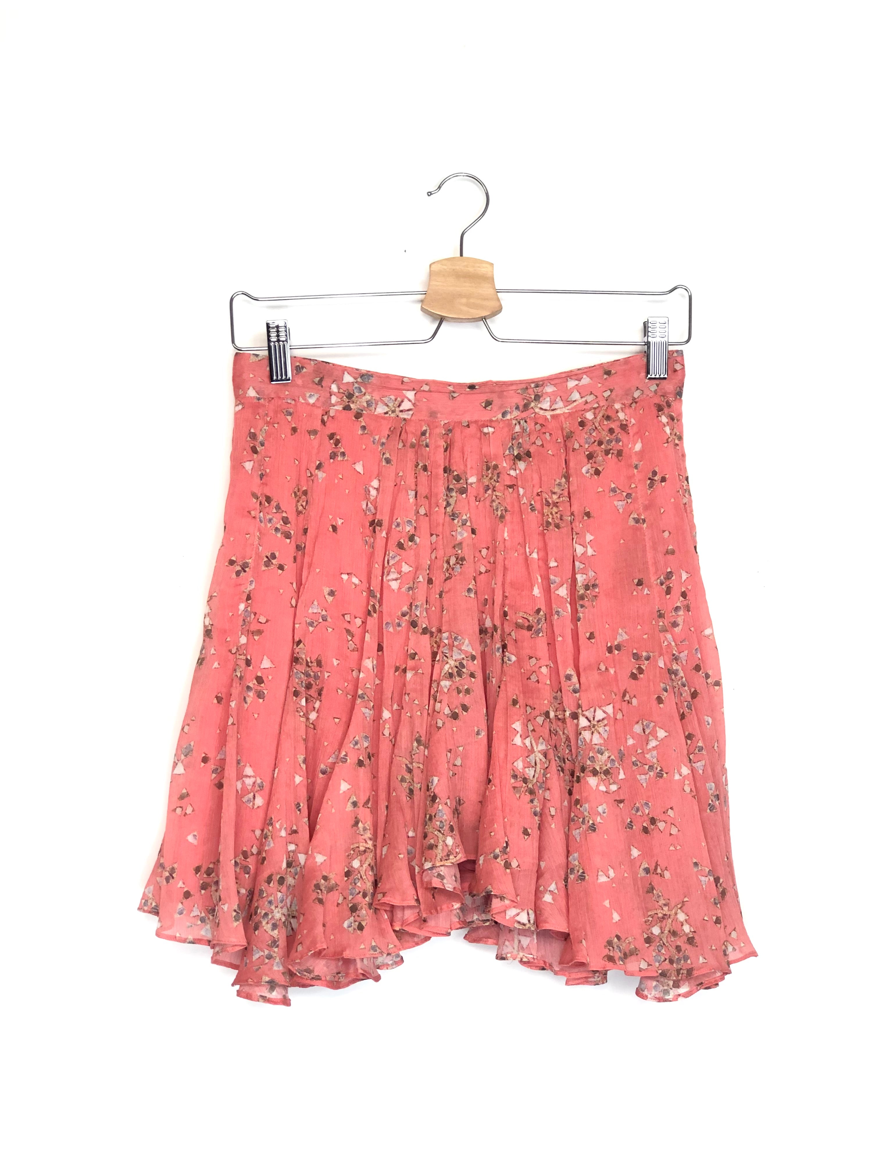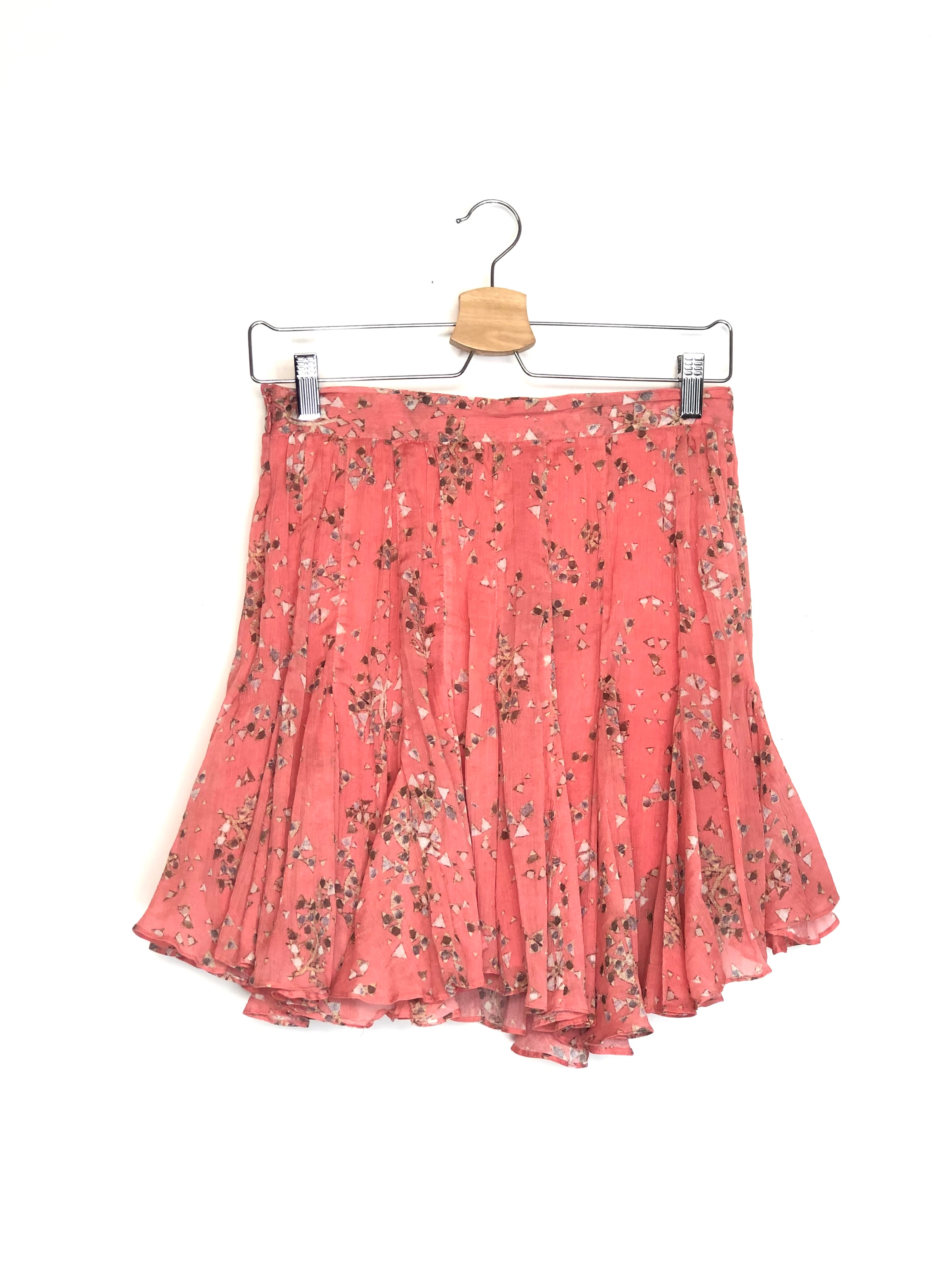 Coral Pink ANAEL Floral Cotton and Silk Chiffon Mini Skirt / ISABEL MARANT - Size 38