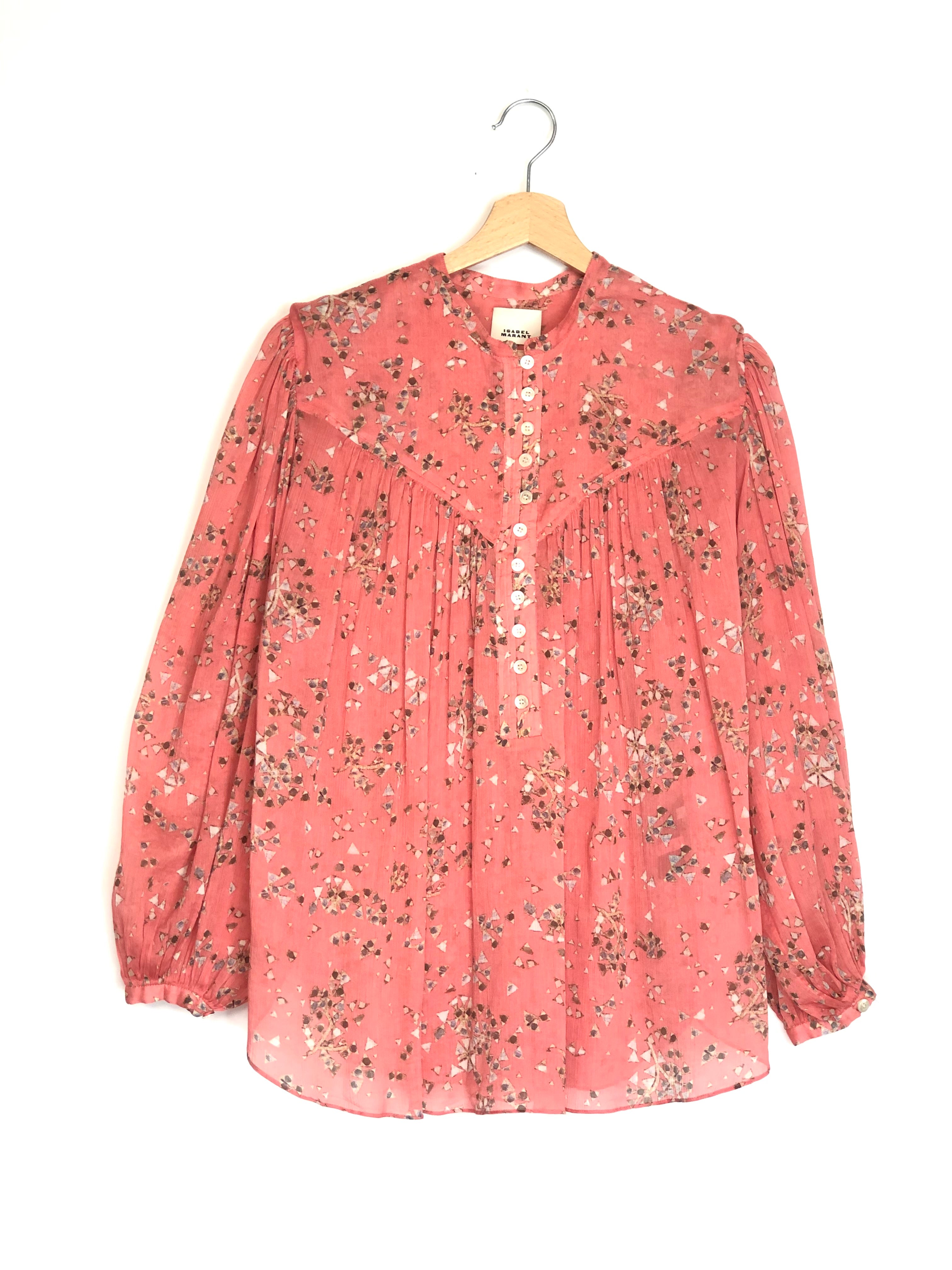 Coral Pink KILEDIA Printed Cotton and Silk-blend Crepe Long Sleeves Blouse / ISABEL MARANT - Size 34