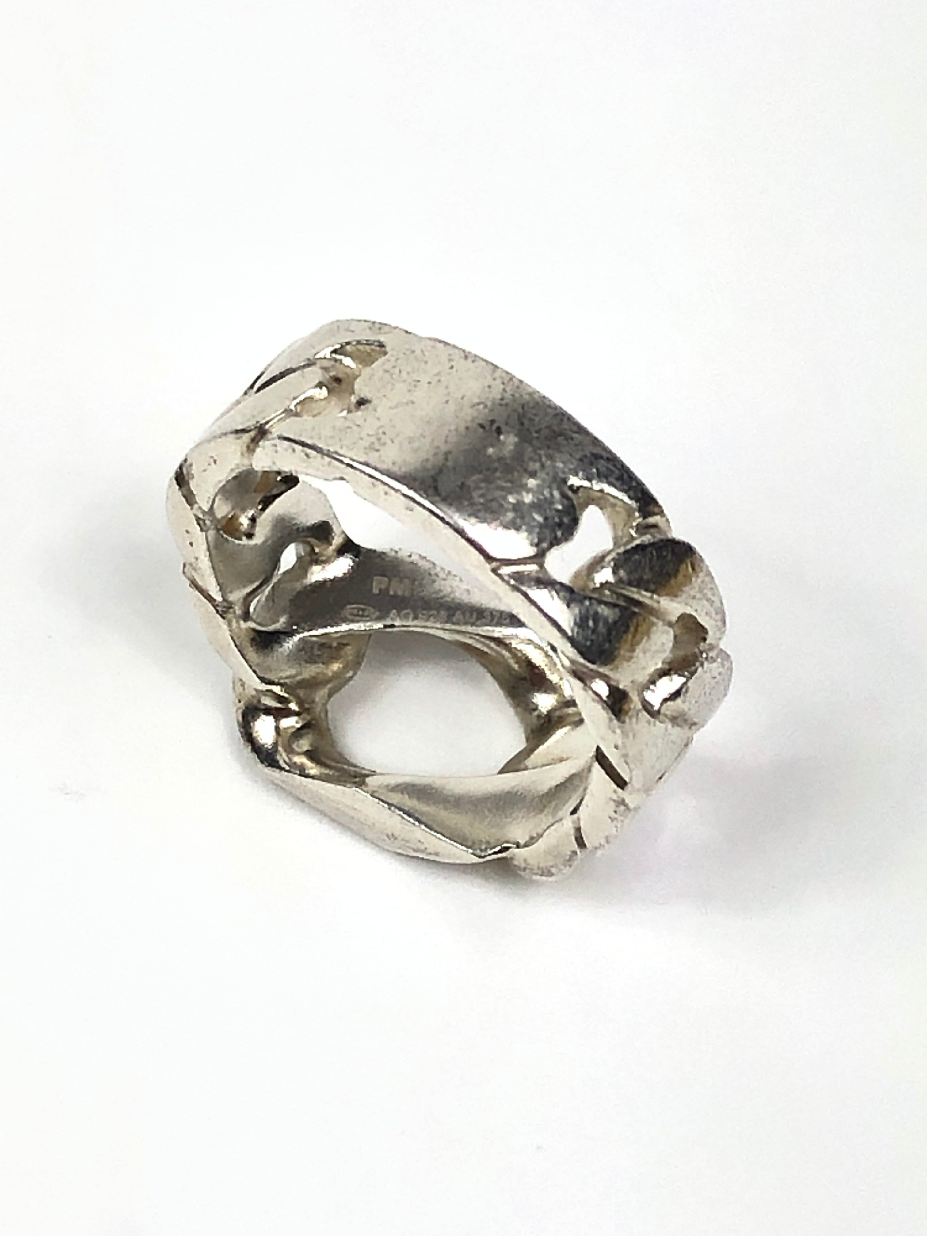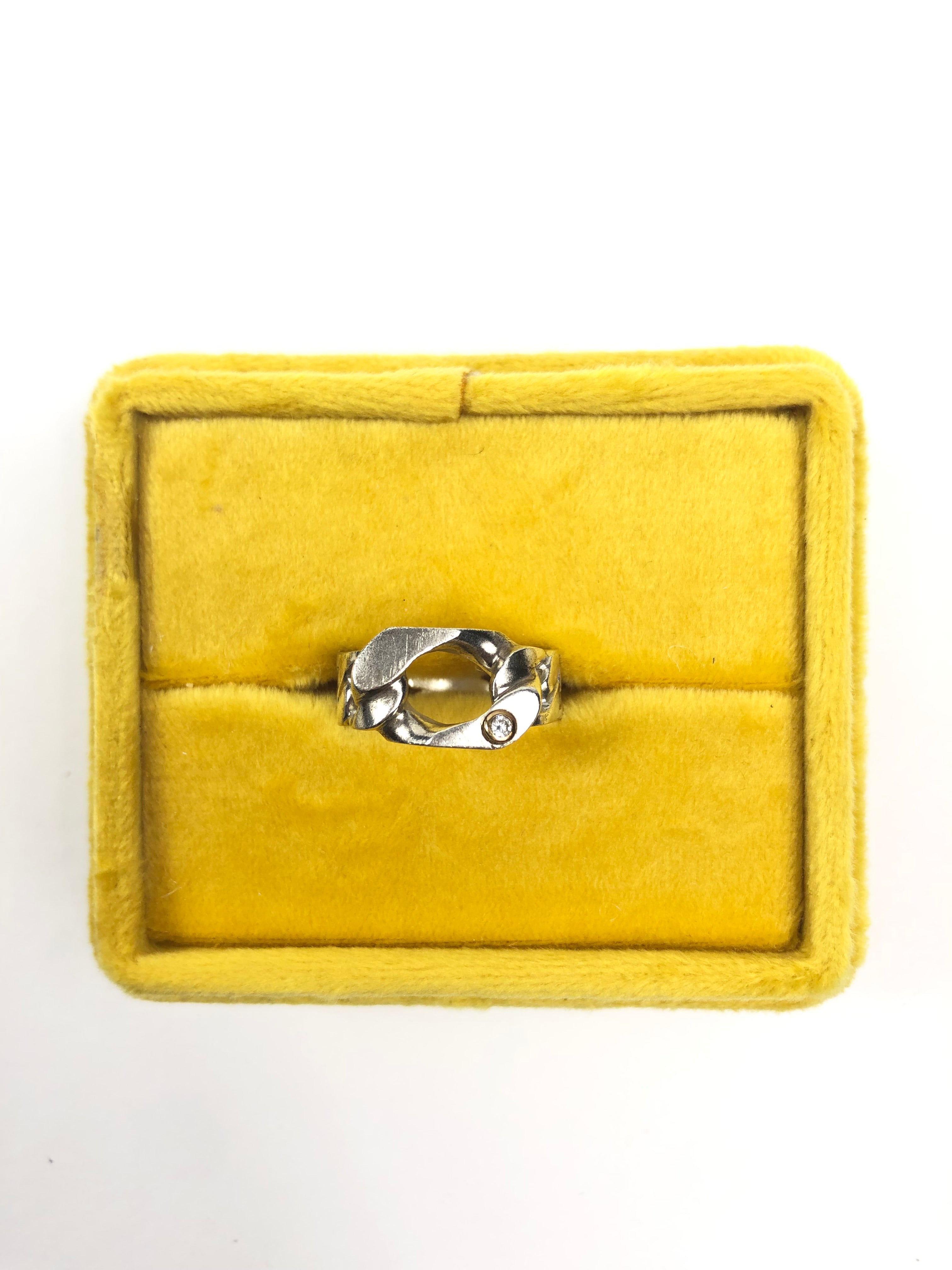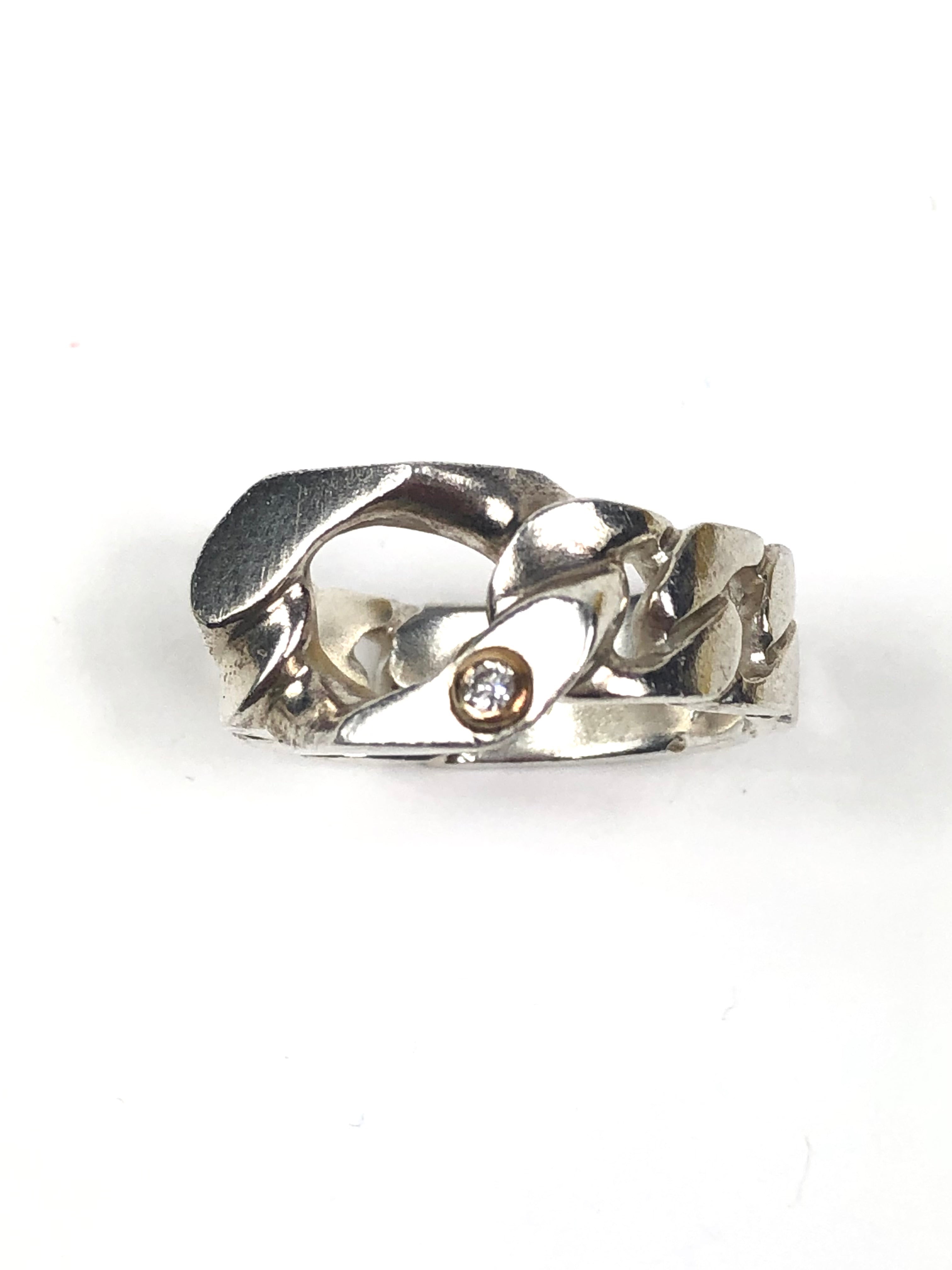 Curb Chain Style MARCEL Silver Ring with Diamond / PASCALE MONVOISIN