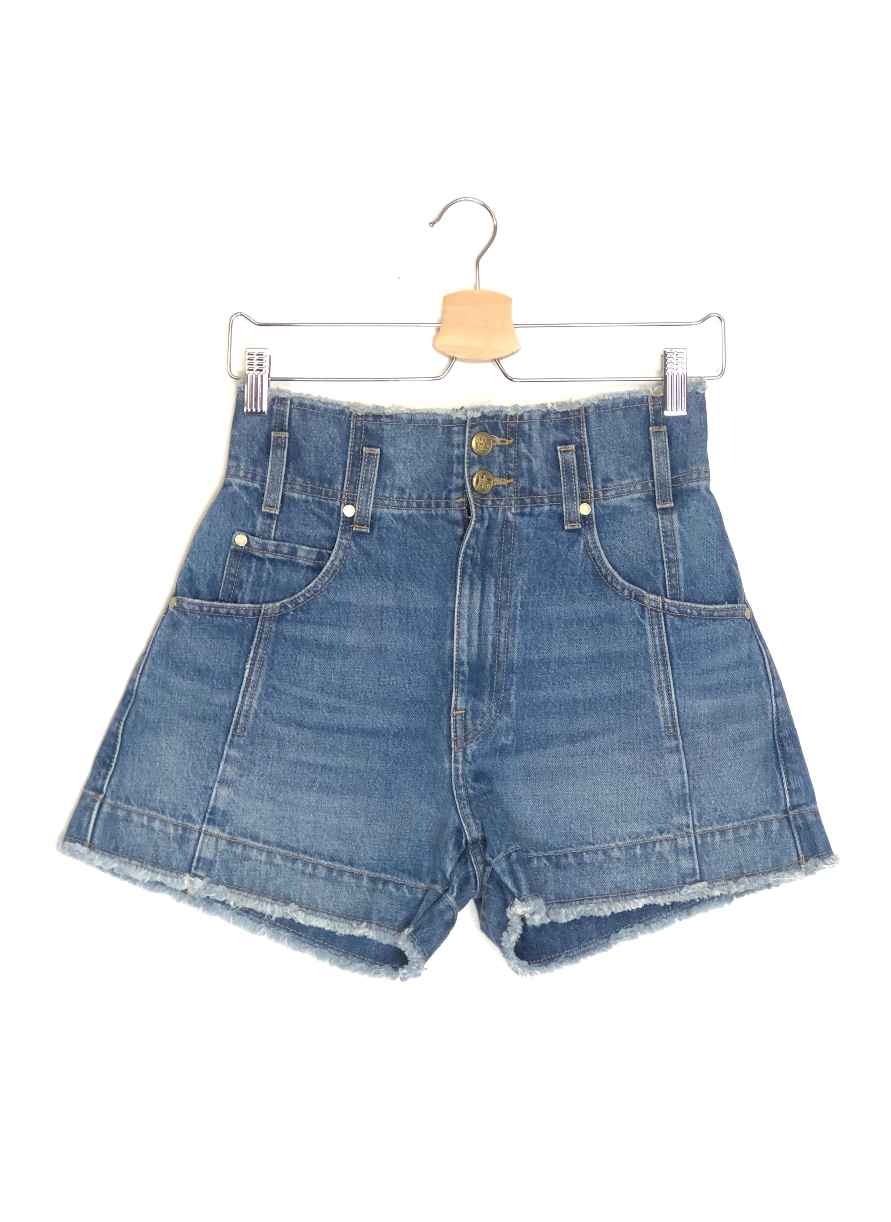 Danube Medium Indigo Wash CHARLOTTE High Waist Shorts / ULLA JOHNSON - Size 25