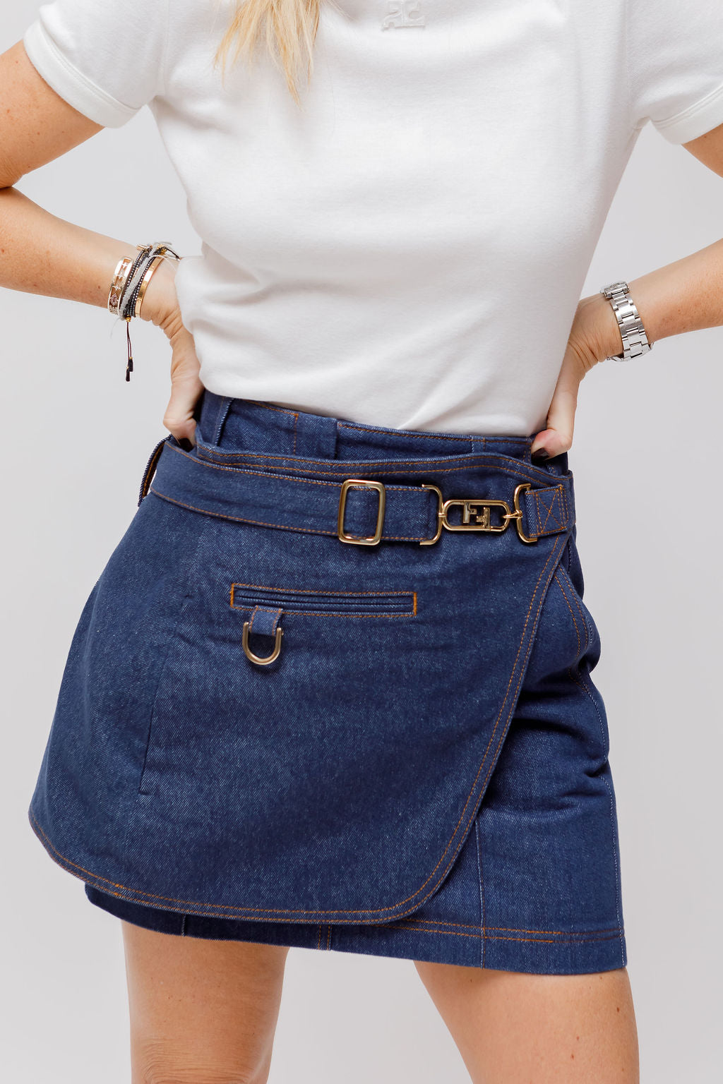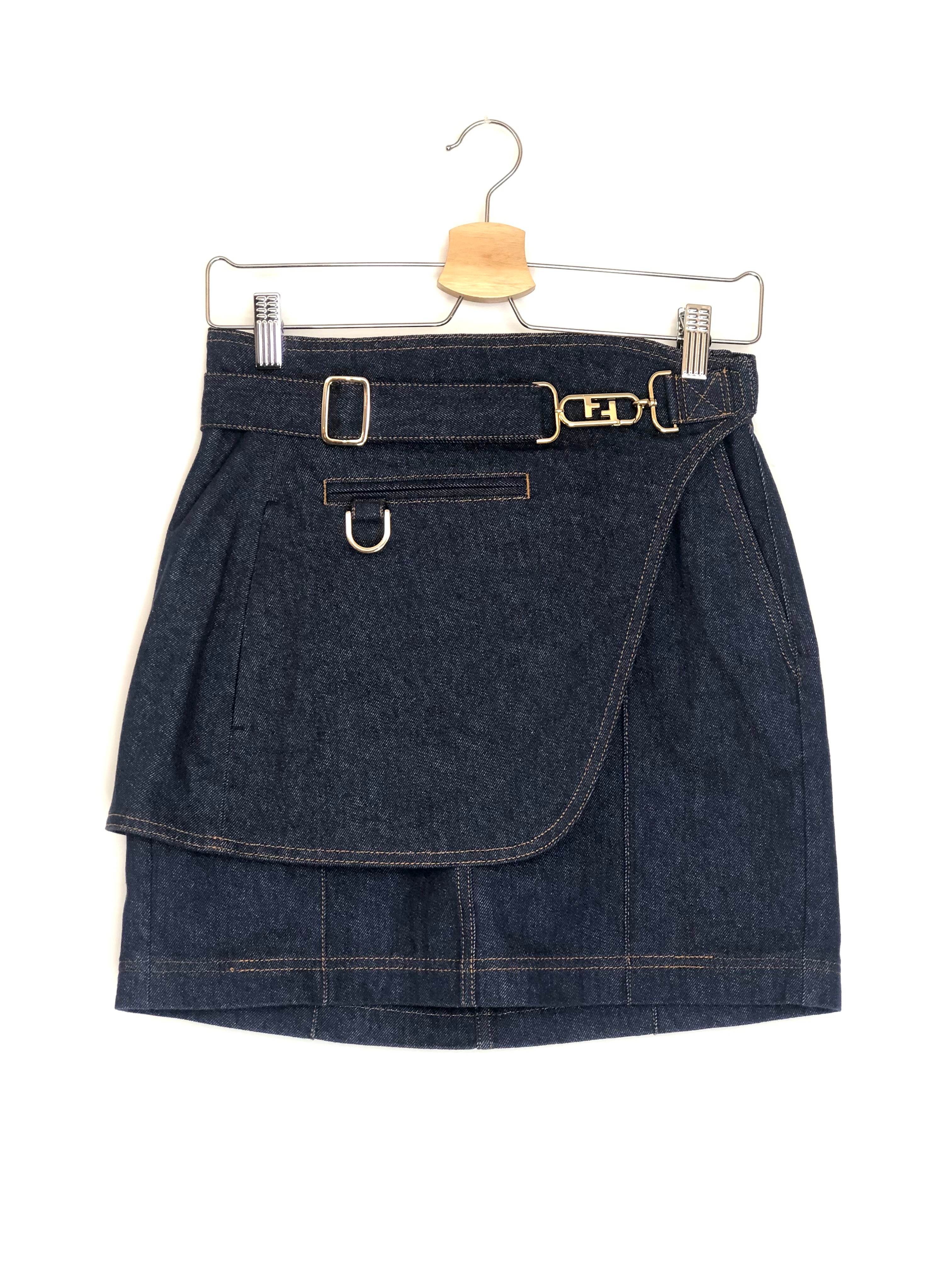 Dark Blue Denim Mini Skirt with Denim Belt / FENDI - Size 36