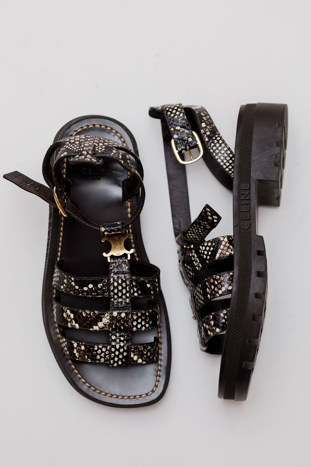 Dark Brown CLEA TRIOMPHE Python Stamped Goatskin Sandals / CELINE - Size 36