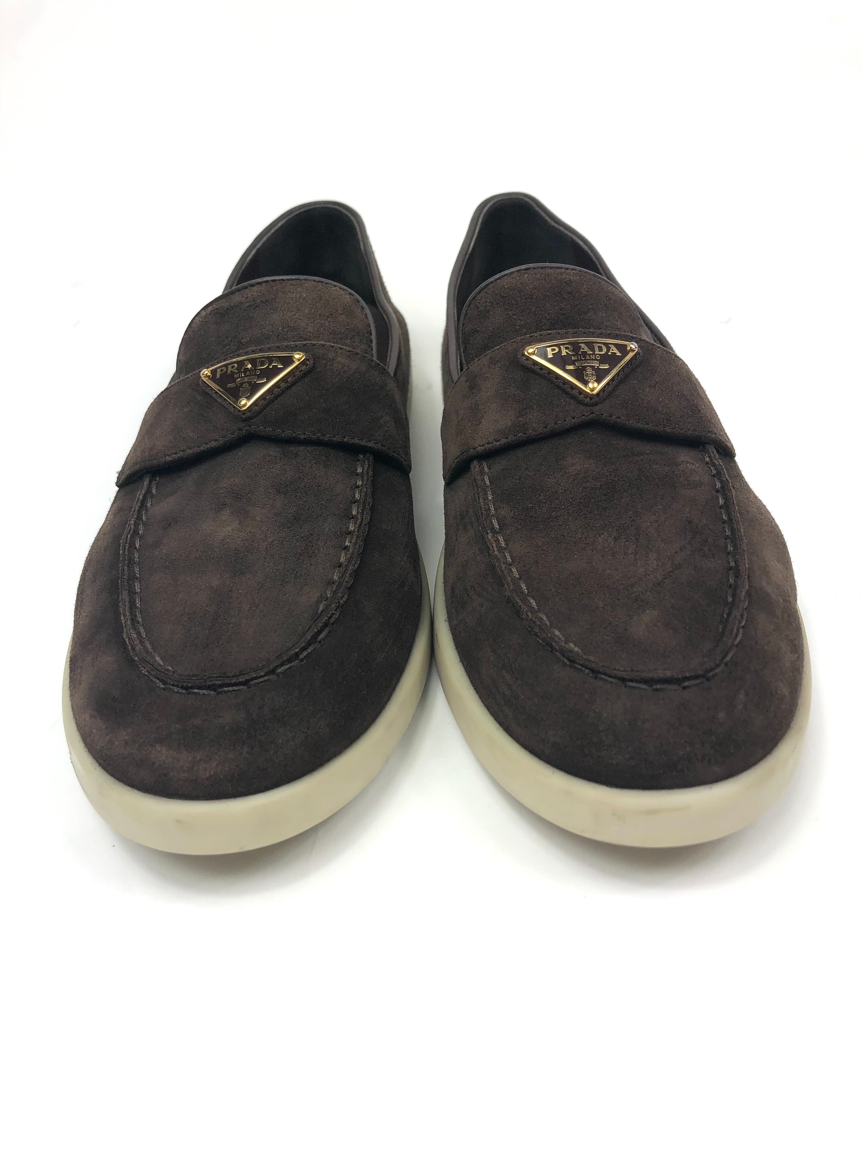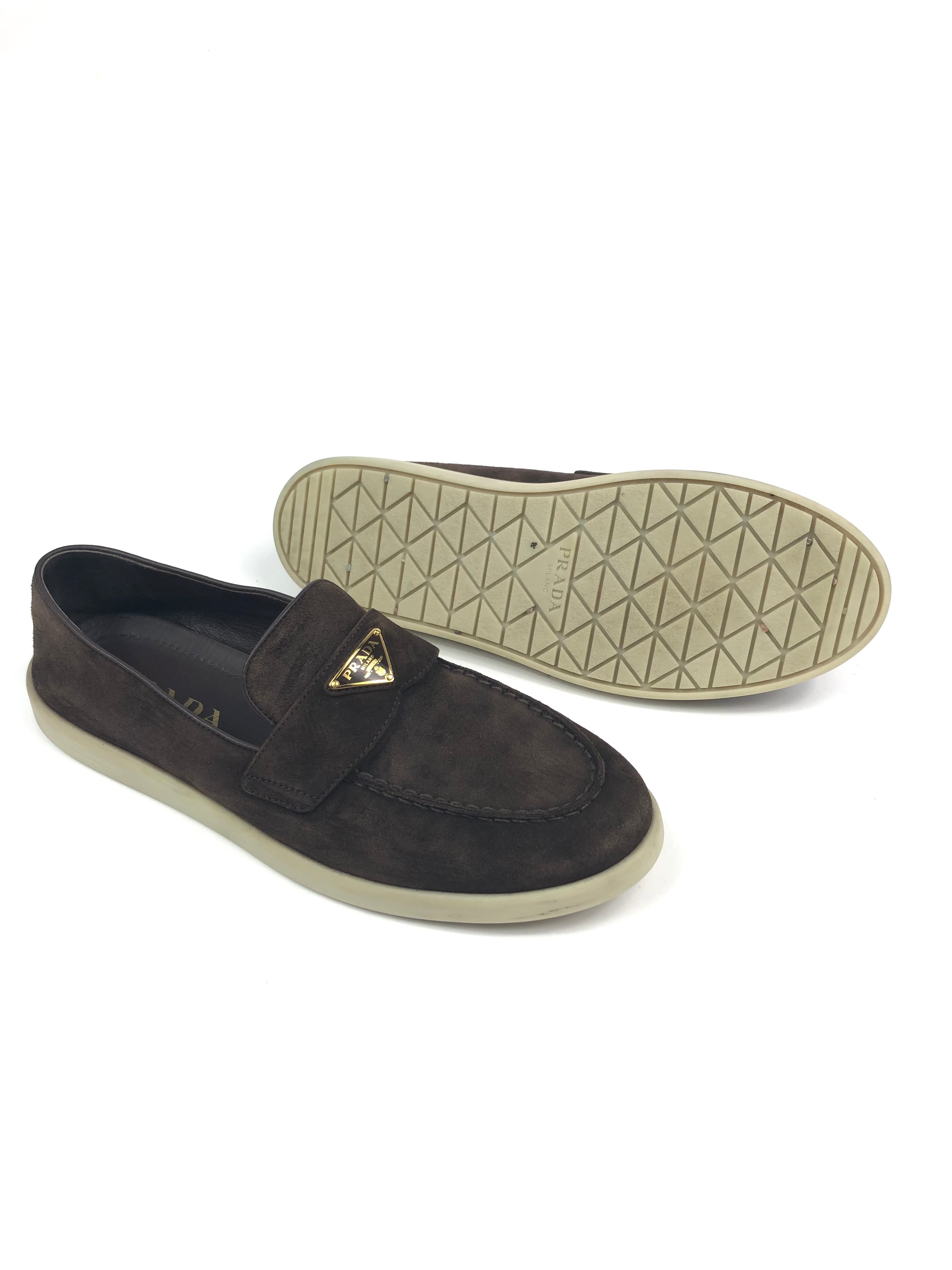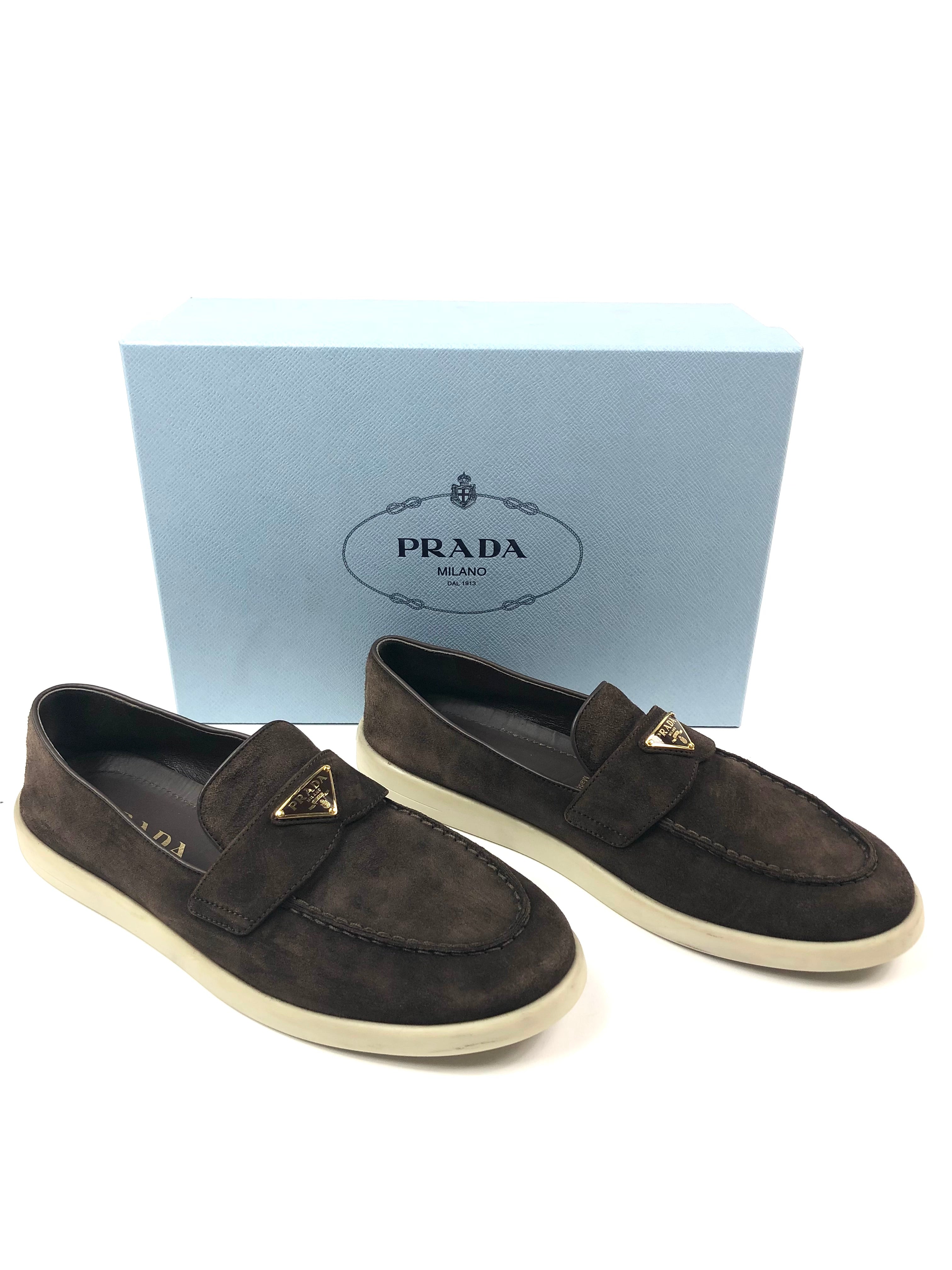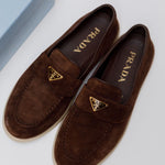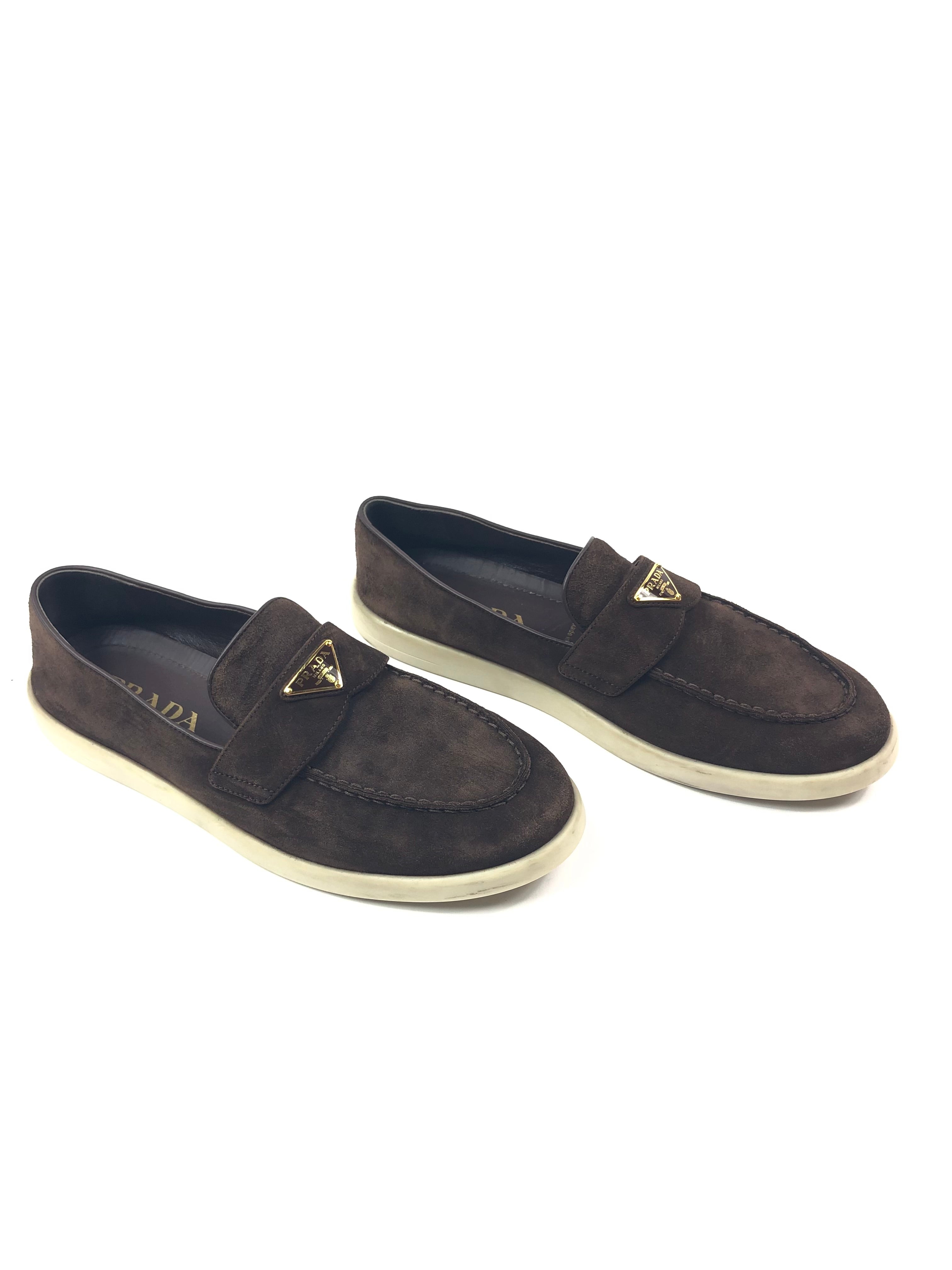 Dark Brown SAINT TROPEZ Suede Loafers / PRADA - Size 39