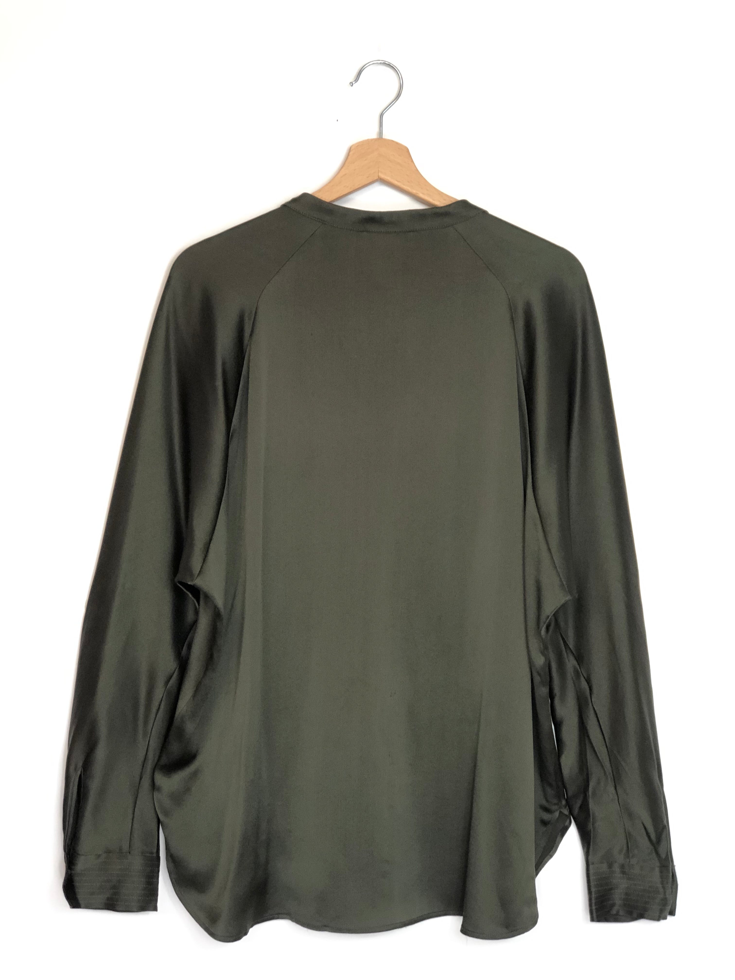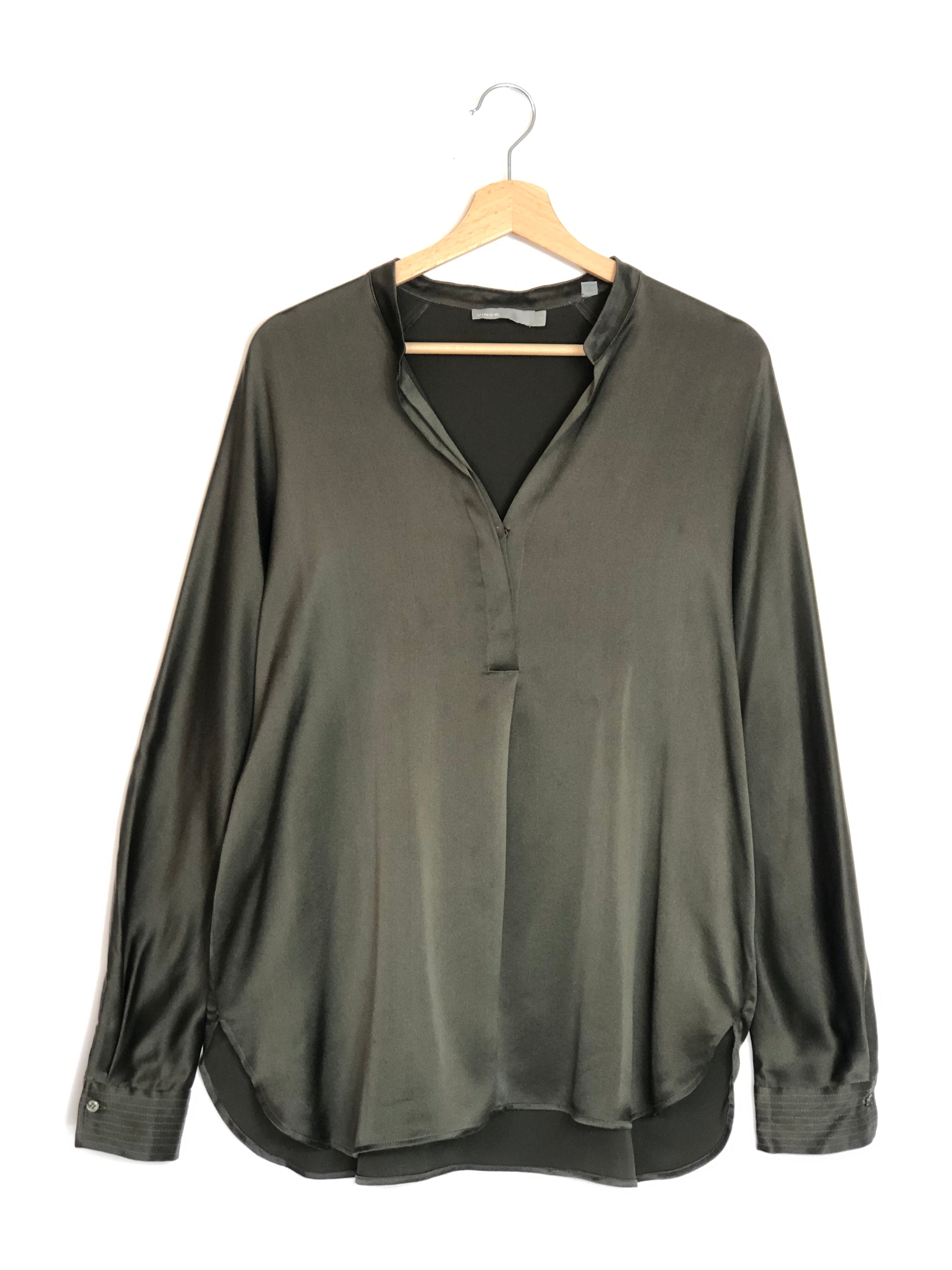 Dark Khaki Long Sleeves Silk Blouse / VINCE - Size S