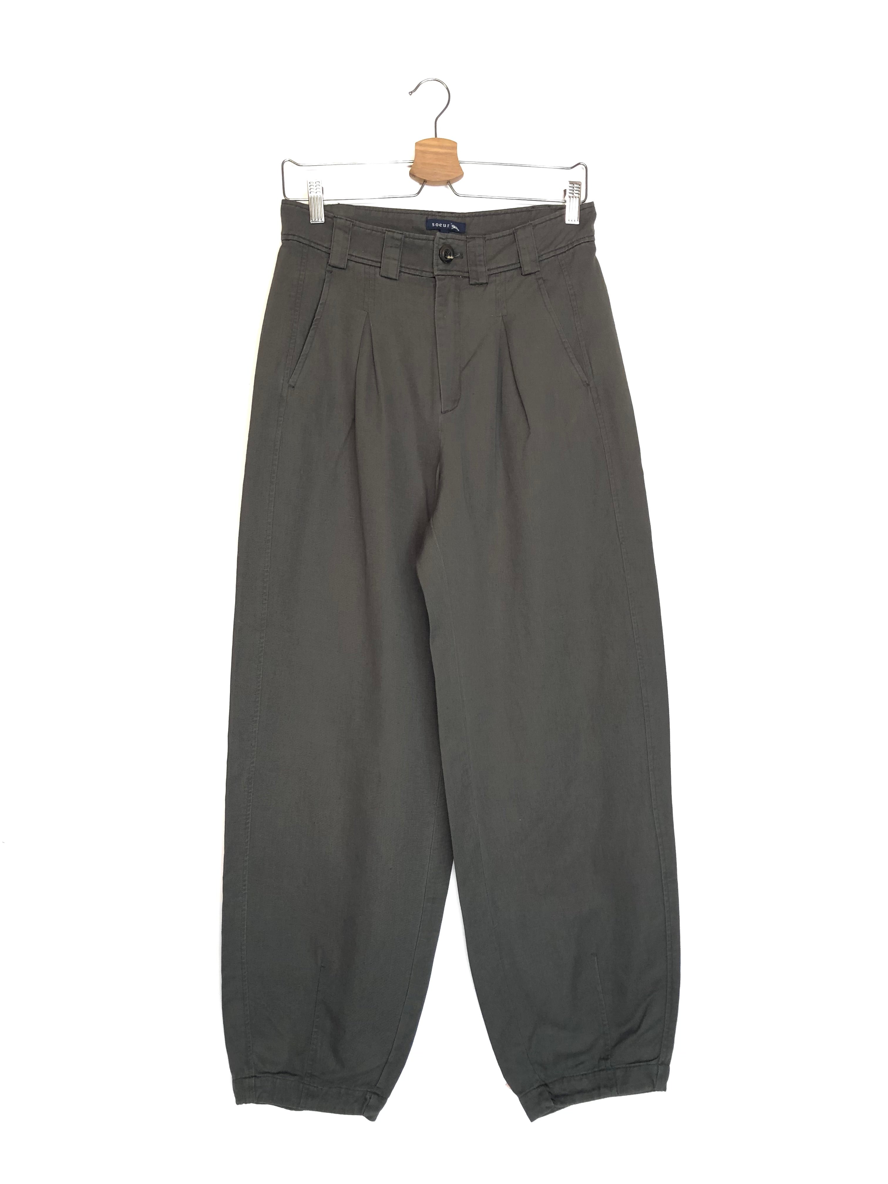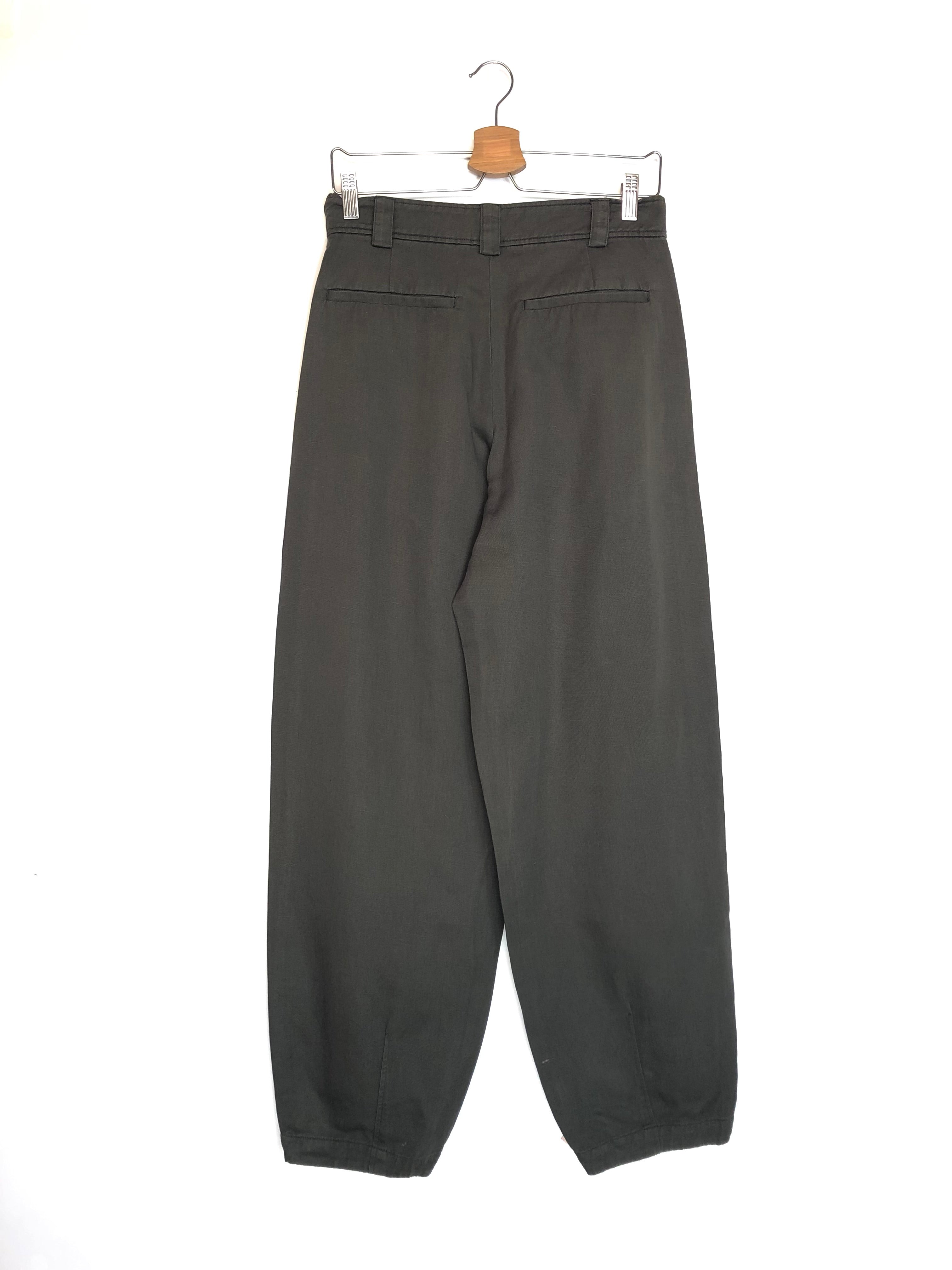 Dark Khaki TIMON Pleated Organic Cotton Trousers / SOEUR - Size 34