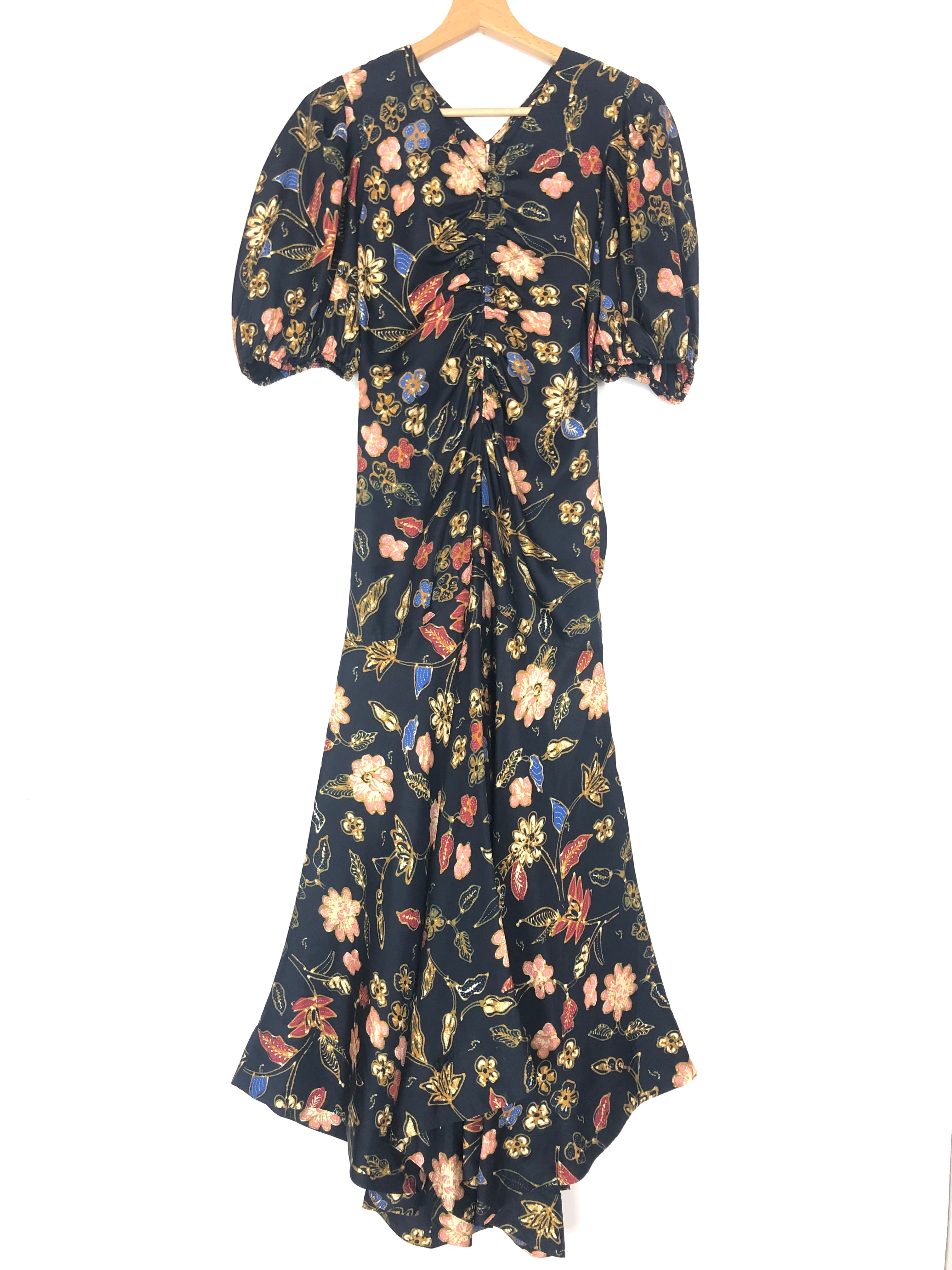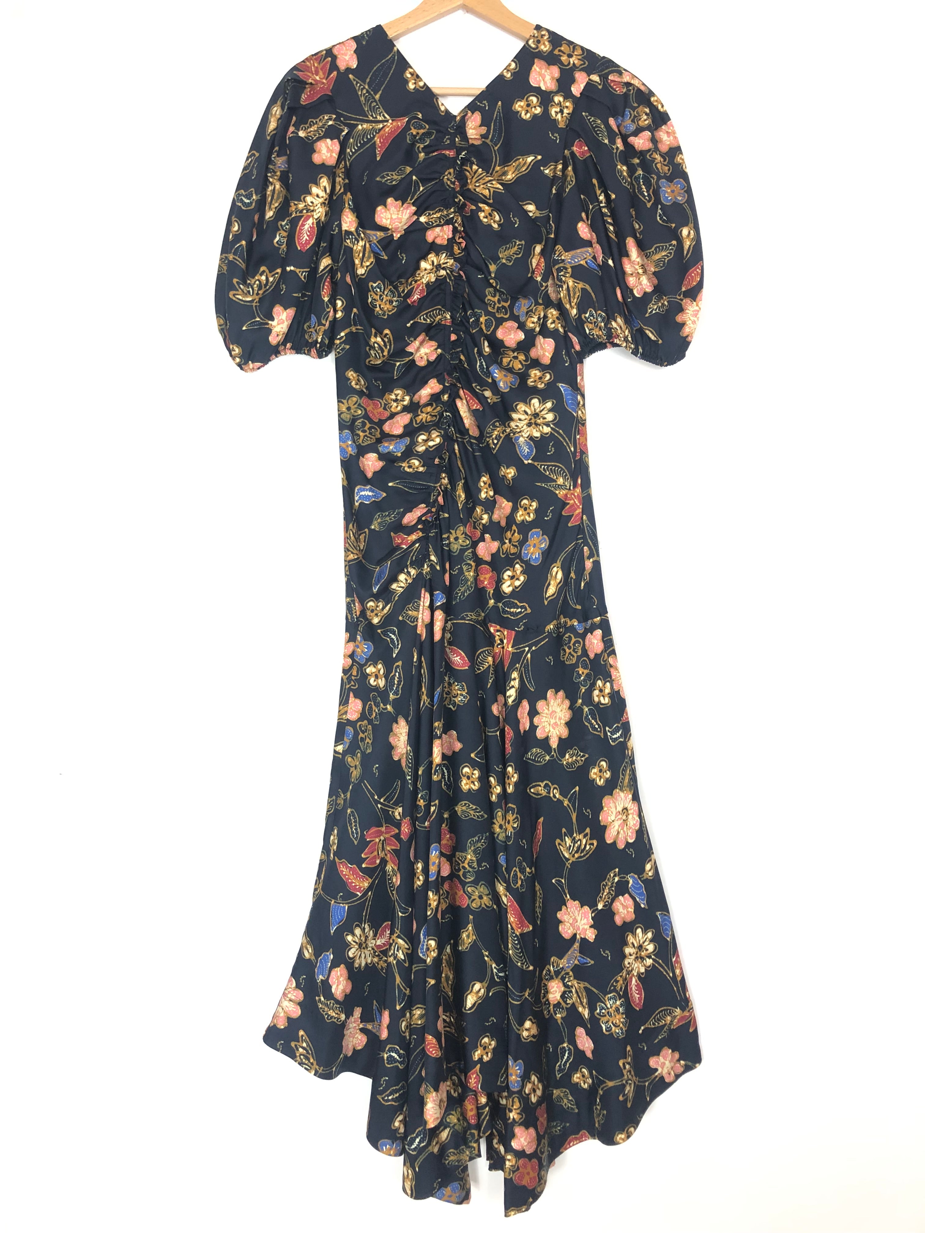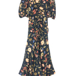 Dark Navy HELEEN Floral Printed Silk Puff-sleeve Maxi Dress / ULLA JOHNSON - Size US 6