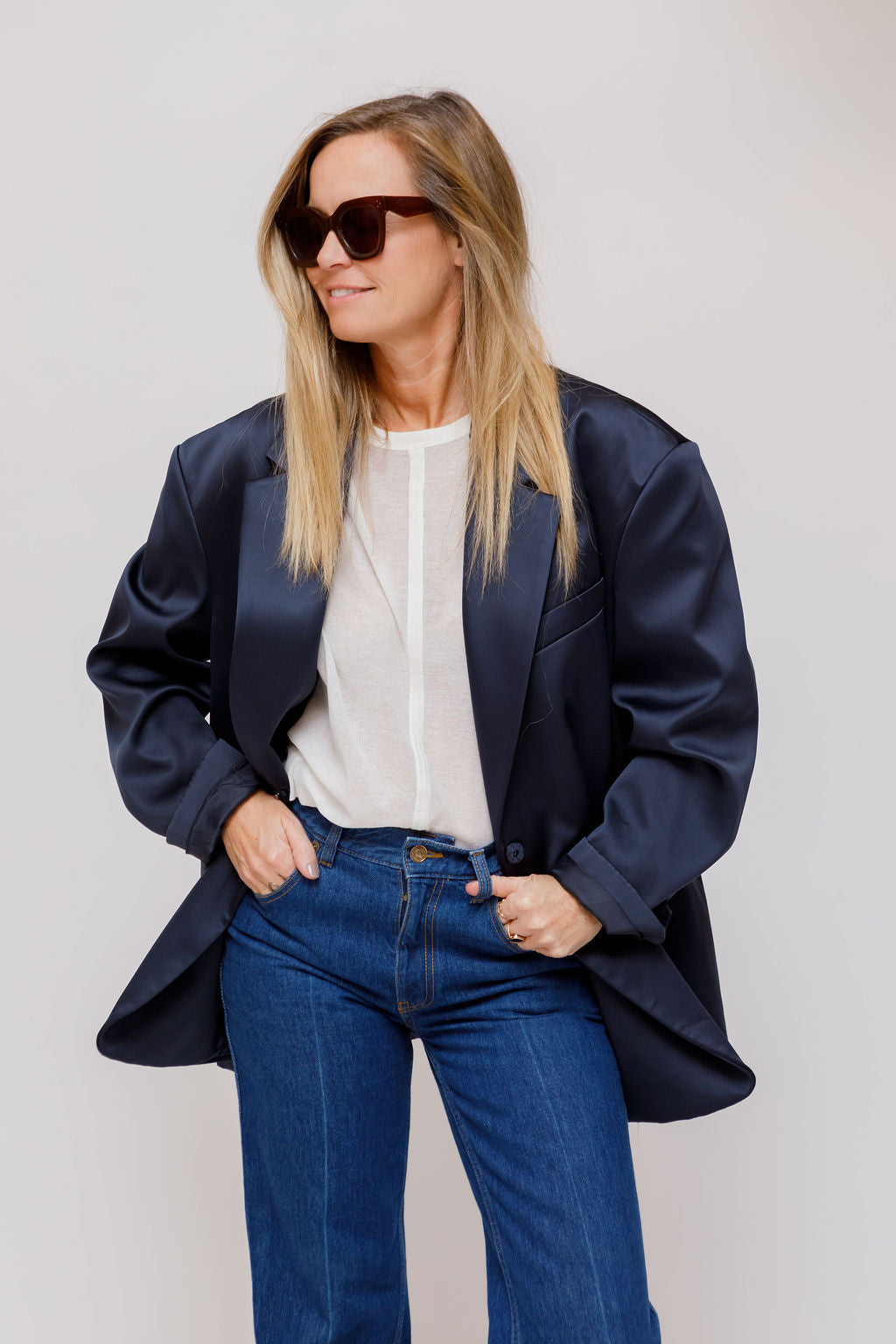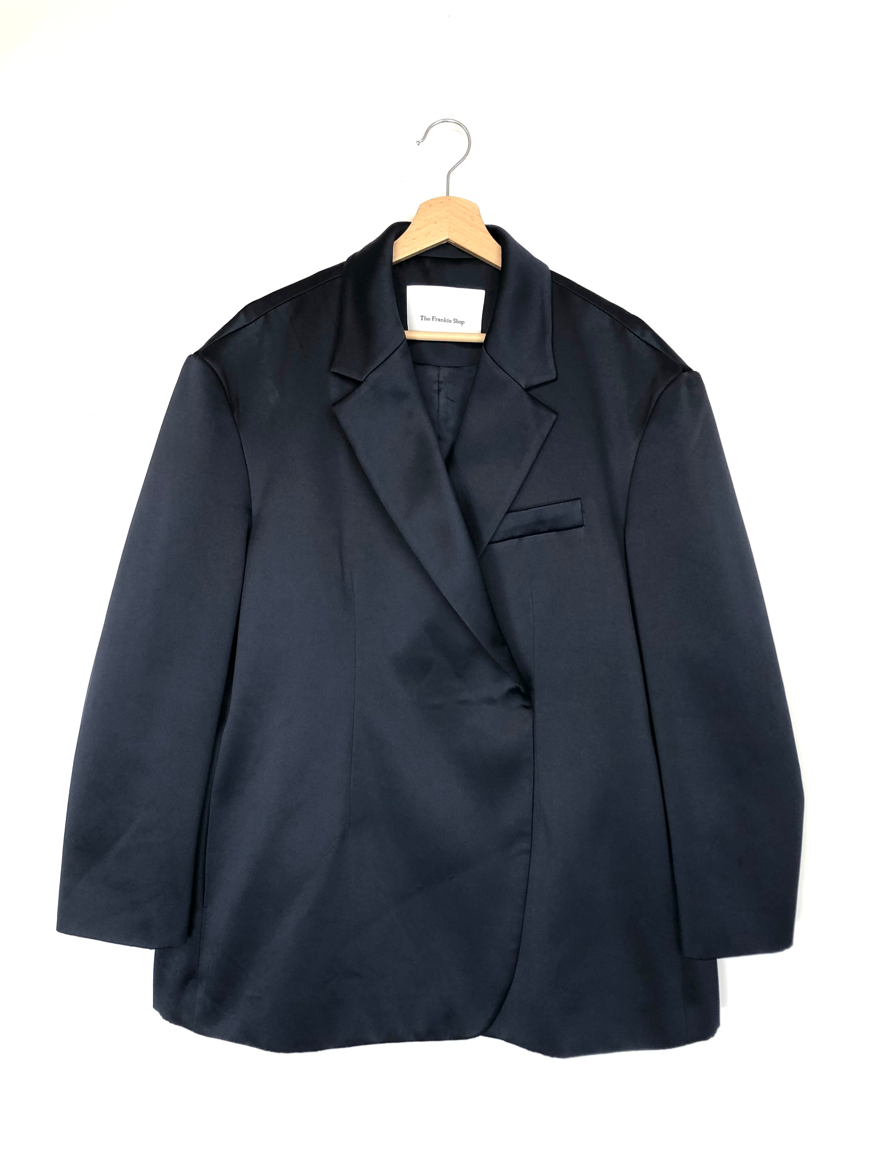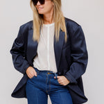 Dark Navy Oversized Satinated Blazer Jacket / THE FRANKIE SHOP - Size XS/S