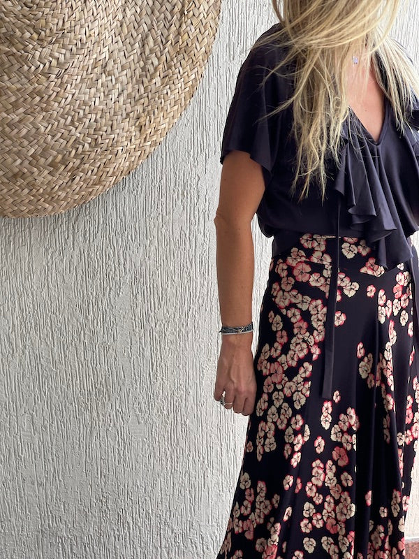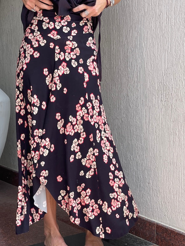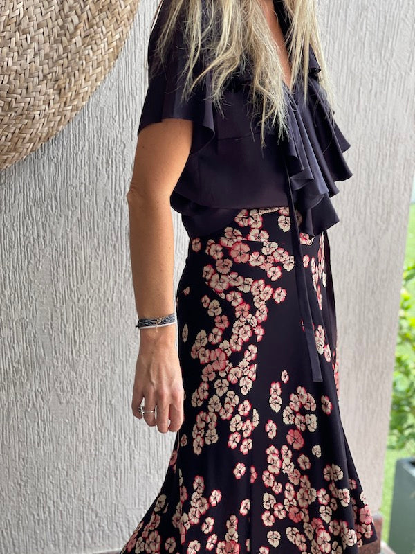 Dark Purple Long Floral Jersey Skirt - model DRACEN / ISABEL MARANT - Size 34